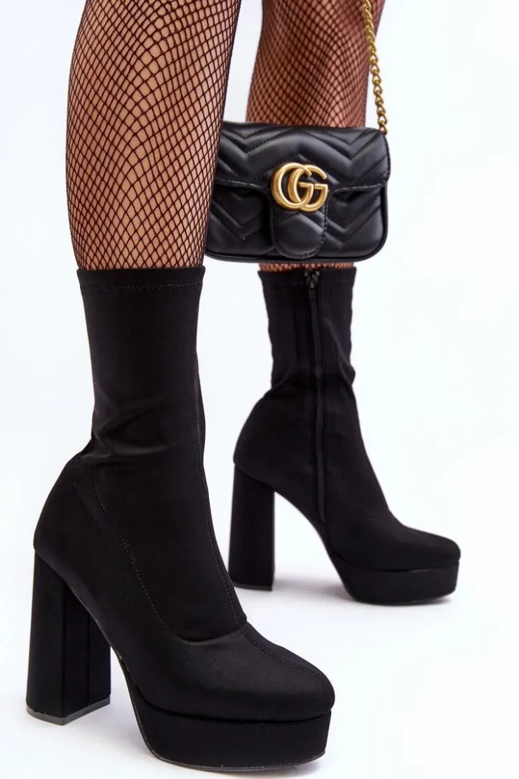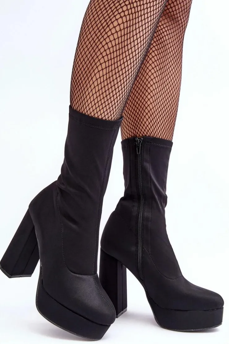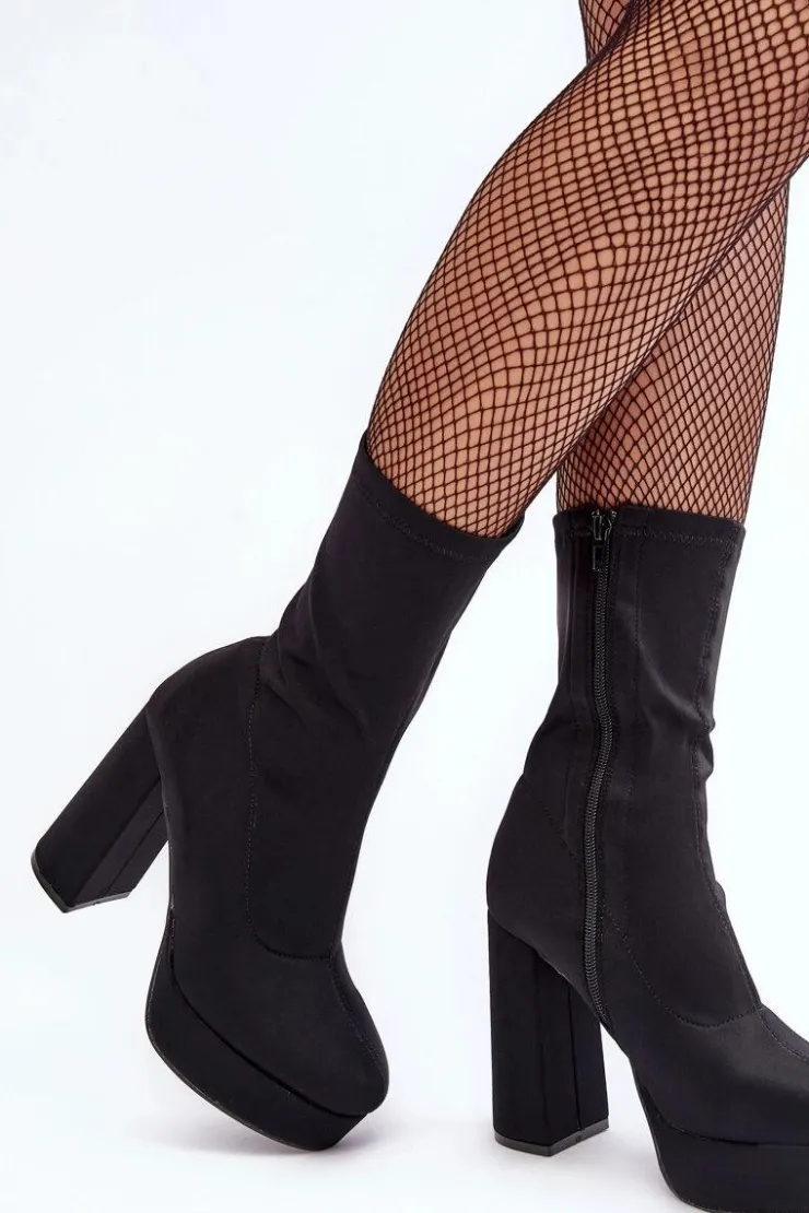 Modne botki damskie zostały wykonane z materiału tekstylnego. Osadzone na obcasie w postaci słupka oraz platformie. Fason z wyższą cholewką. Zapinanie na suwak z boku. Zapiętek jest usztywniony. Miękka eko skórzana wkładka zapewni komfort podczas użytkowania. Model ten będzie świetnie prezentować się zarówno z sukienkami, eleganckimi spodniami, jak i spódniczkami. Przy wyborze rozmiaru prosimy sugerować się tabelą rozmiarów.