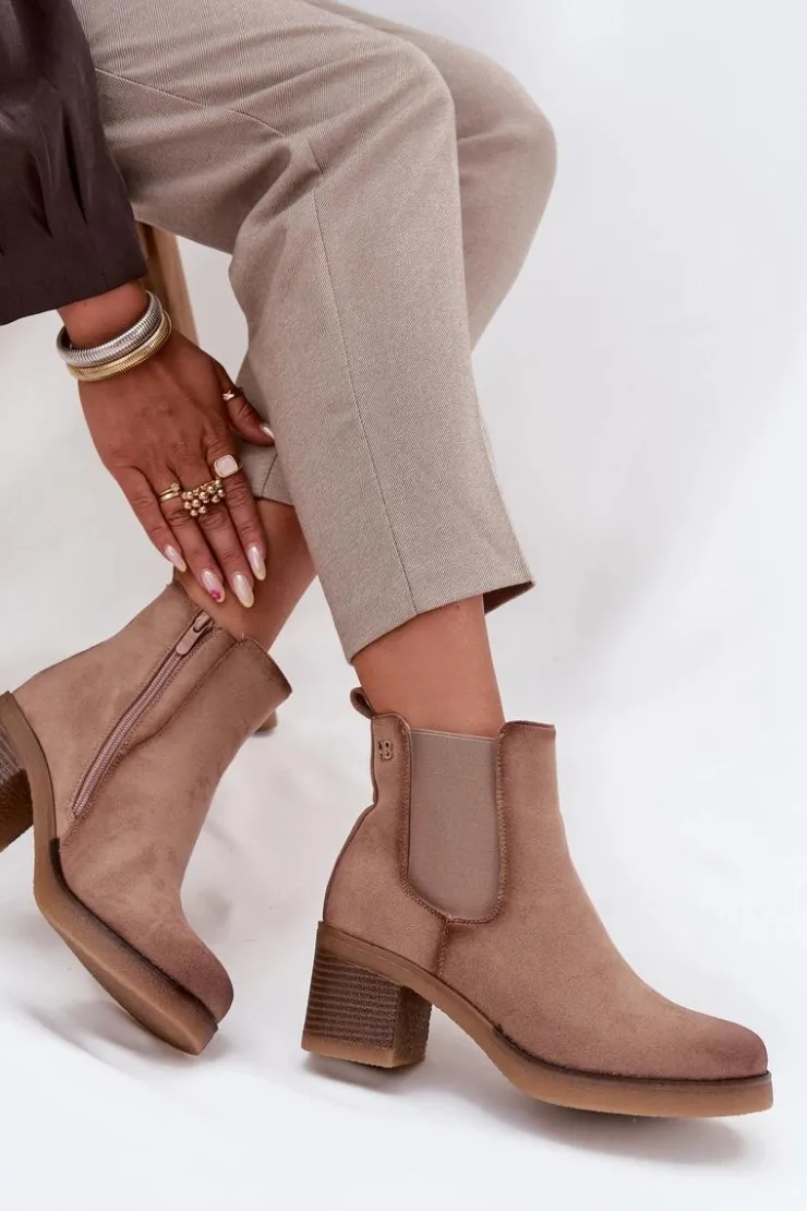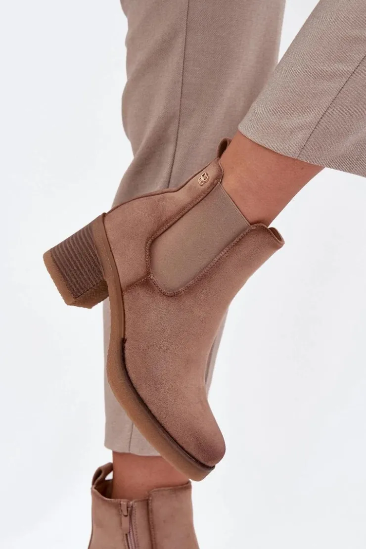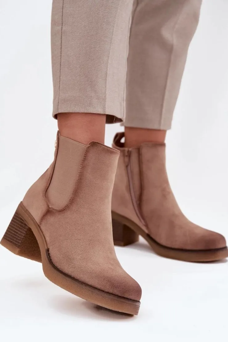 Botki damskie wykonane z eko zamszu. Osadzone na obcasie w formie słupka, który zapewnia stabilność i komfort przez cały dzień. Ocieplane, gwarantują ciepło w chłodniejsze dni, a zamek błyskawiczny ułatwia zakładanie. Z boku cholewki znajduje się subtelny, złoty detal, który dodaje im eleganckiego akcentu. Idealne do codziennych stylizacji, które wymagają zarówno wygody, jak i modnego wyglądu. Przy wyborze rozmiaru prosimy sugerować się tabelą rozmiarów.