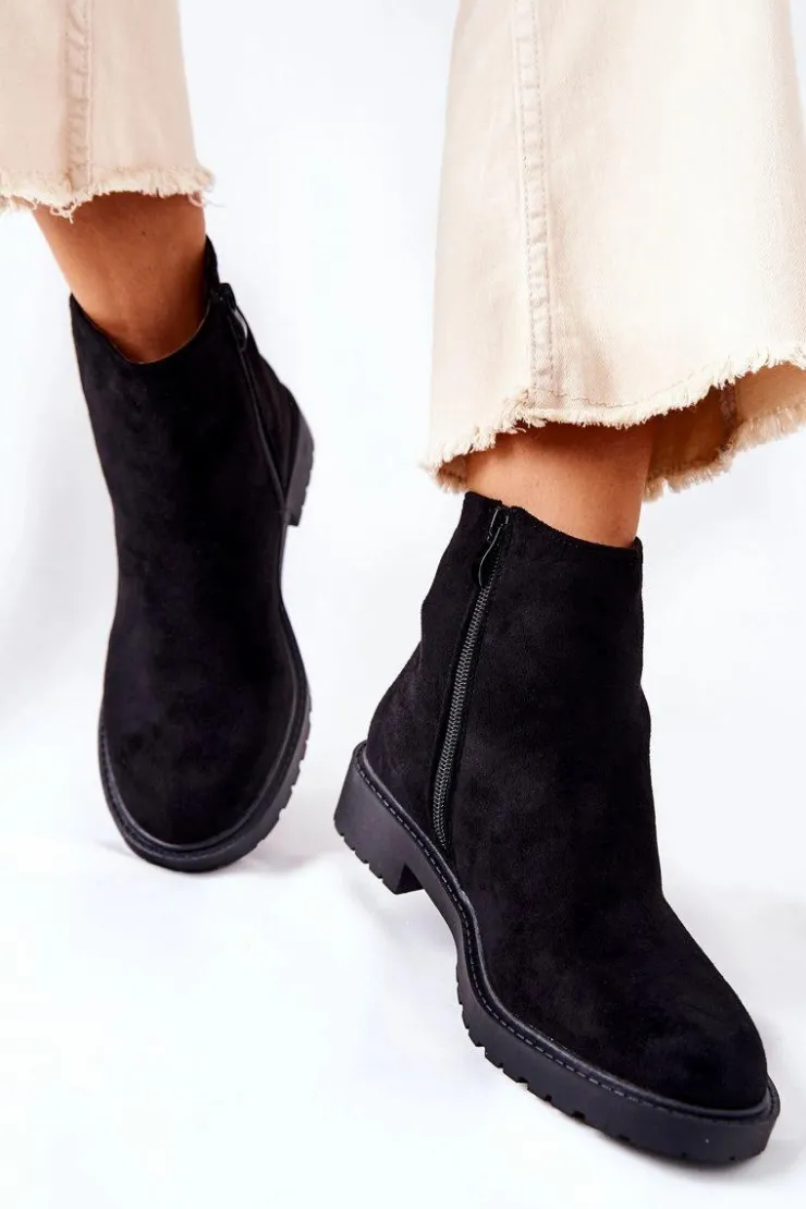 Model botków, który pasuje do każdej stylizacji dzięki swojemu klasycznemu fasonowi. Wykonane z przyjemnego w dotyku eko zamszu. Zapinane na suwak. W środku w całości ocieplane kocem obuwniczym. Klasyczne botki powinny znaleźć się w garderobie każdej kobiety, dlatego nie czekaj! Kup je już dziś! Przy wyborze rozmiaru prosimy sugerować się tabelą rozmiarów.