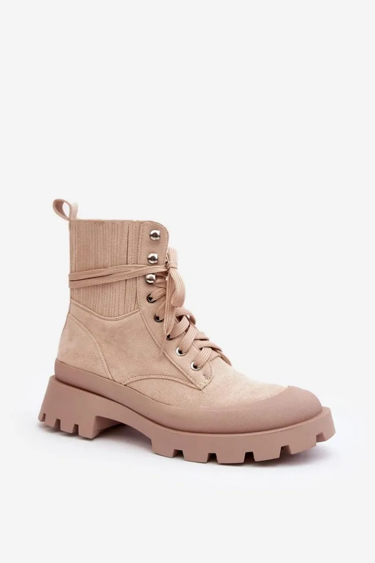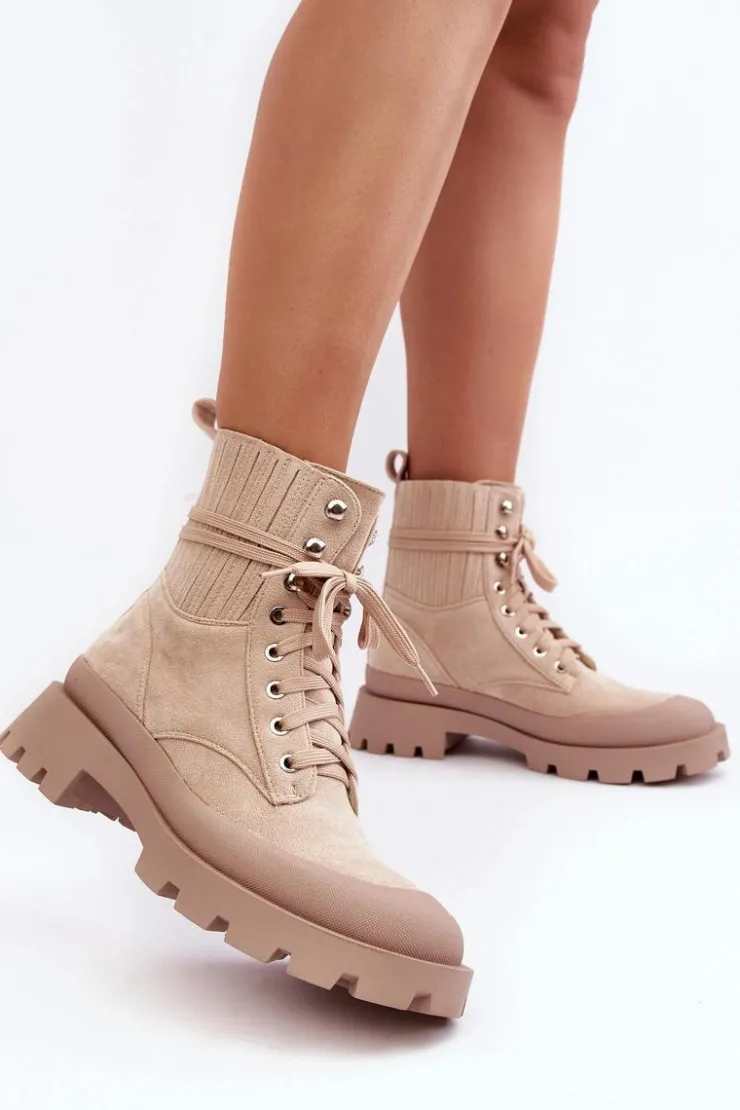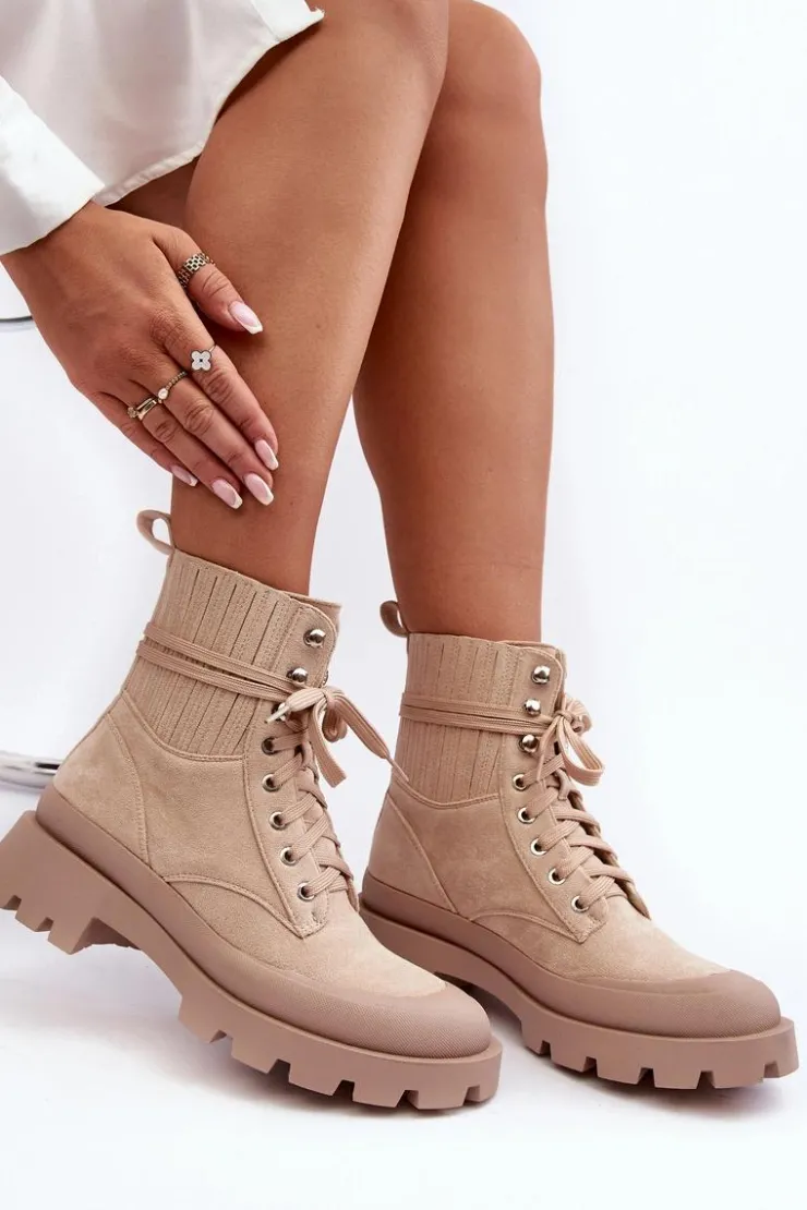 Damskie Boto Botki Trapery Damskie Sznurowane Beżowe Gordts