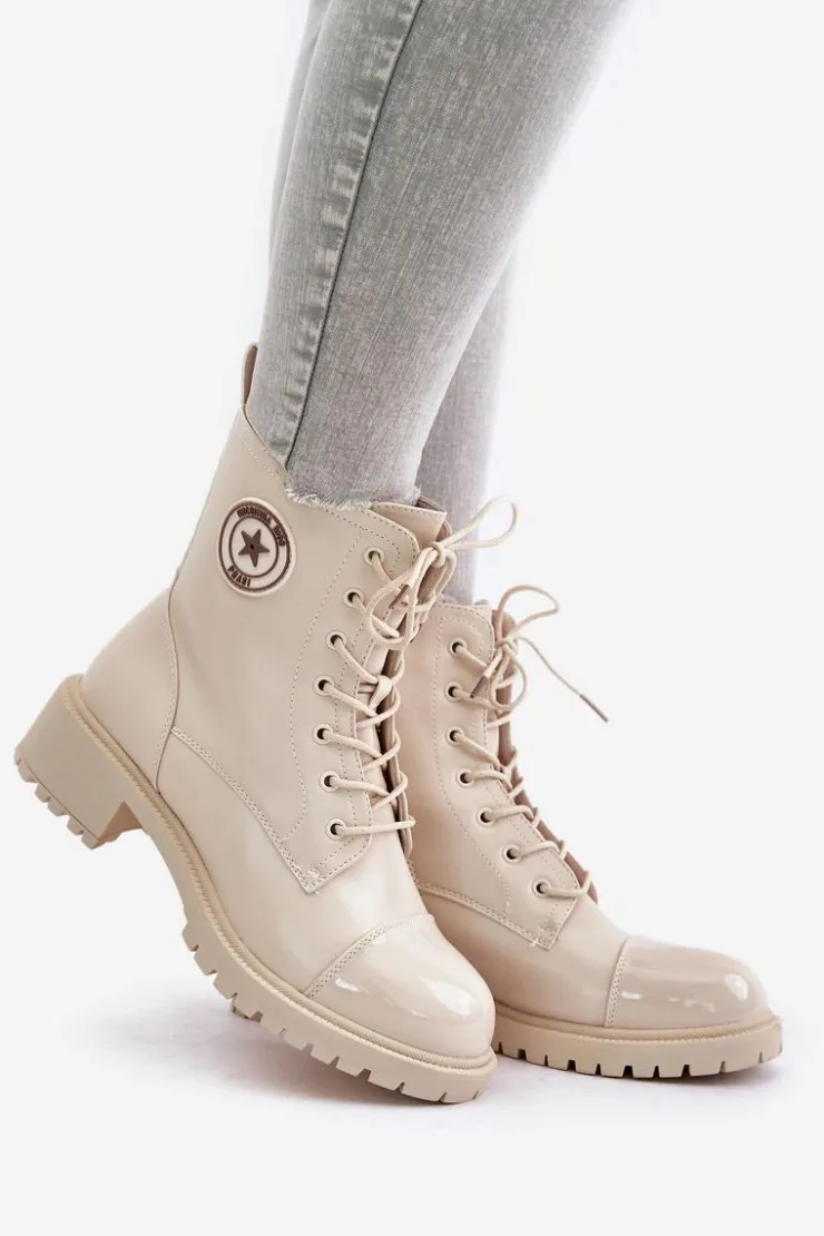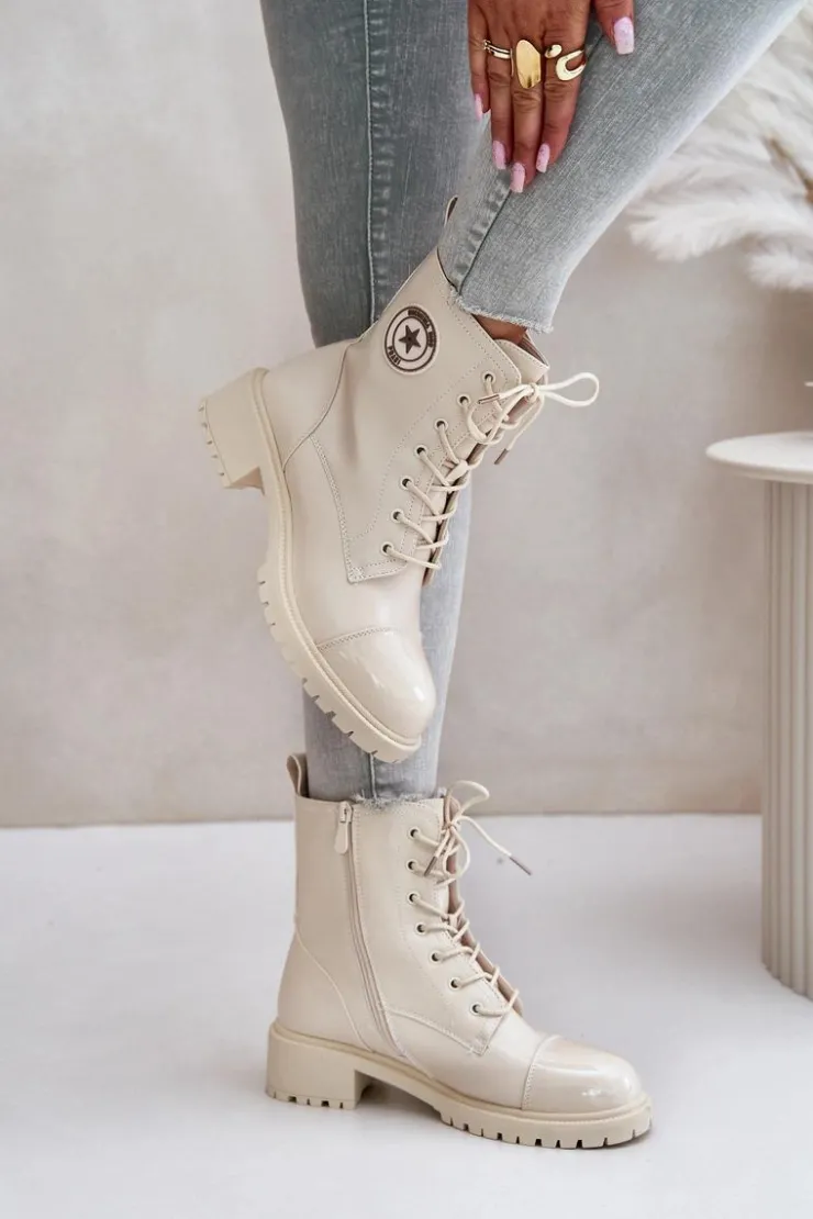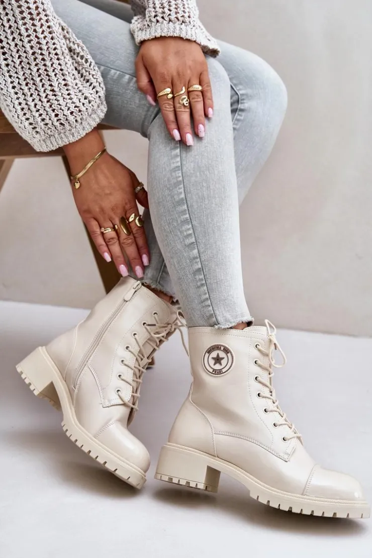 Damskie botki workery wykonane z ekologicznej skóry, ocieplane kocem obuwniczym, idealnie sprawdzą się w chłodniejsze dni. Model zapinany na zamek oraz sznurowany, co zapewnia doskonałe dopasowanie do stopy i wygodę noszenia. Klasyczny design w połączeniu z funkcjonalnością czyni je stylowym wyborem na co dzień. Przy wyborze rozmiaru prosimy sugerować się tabelą rozmiarów.