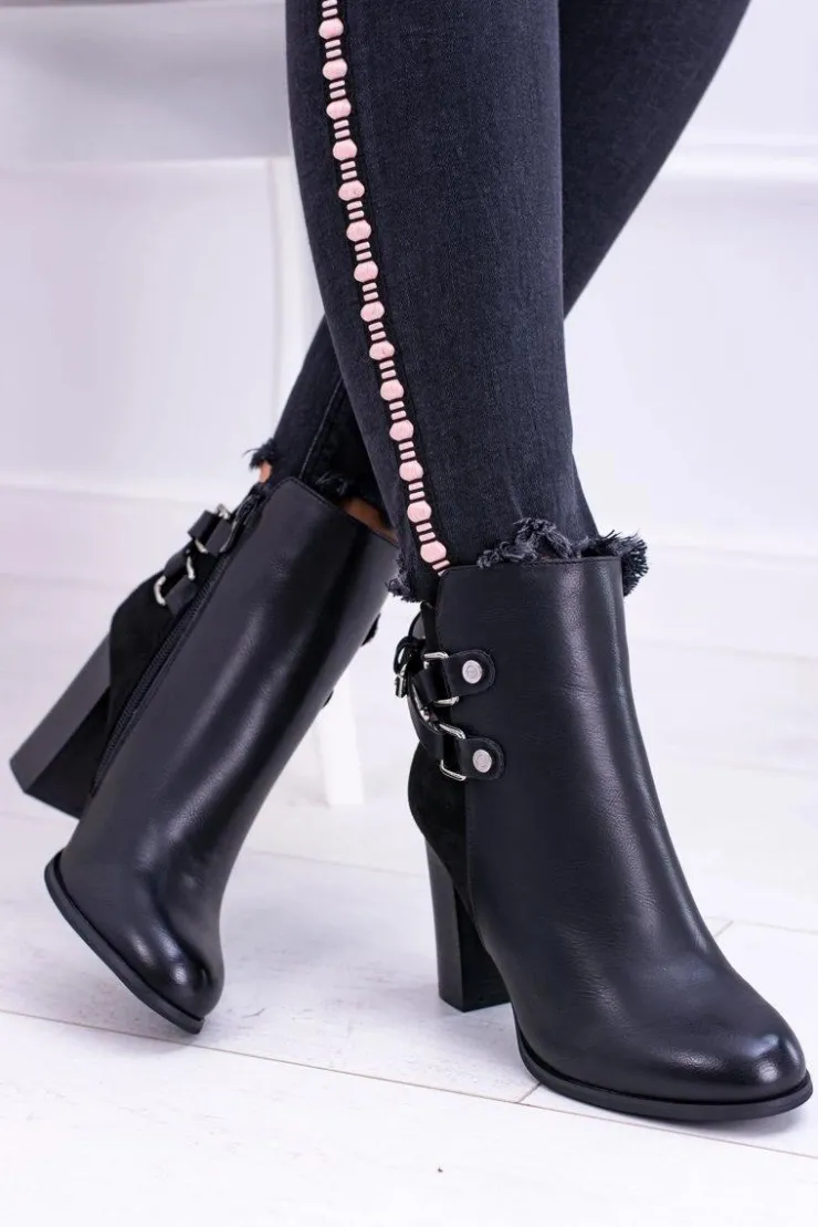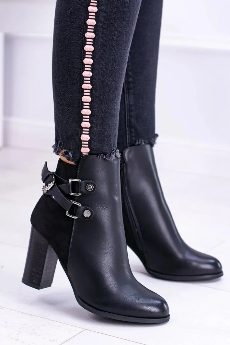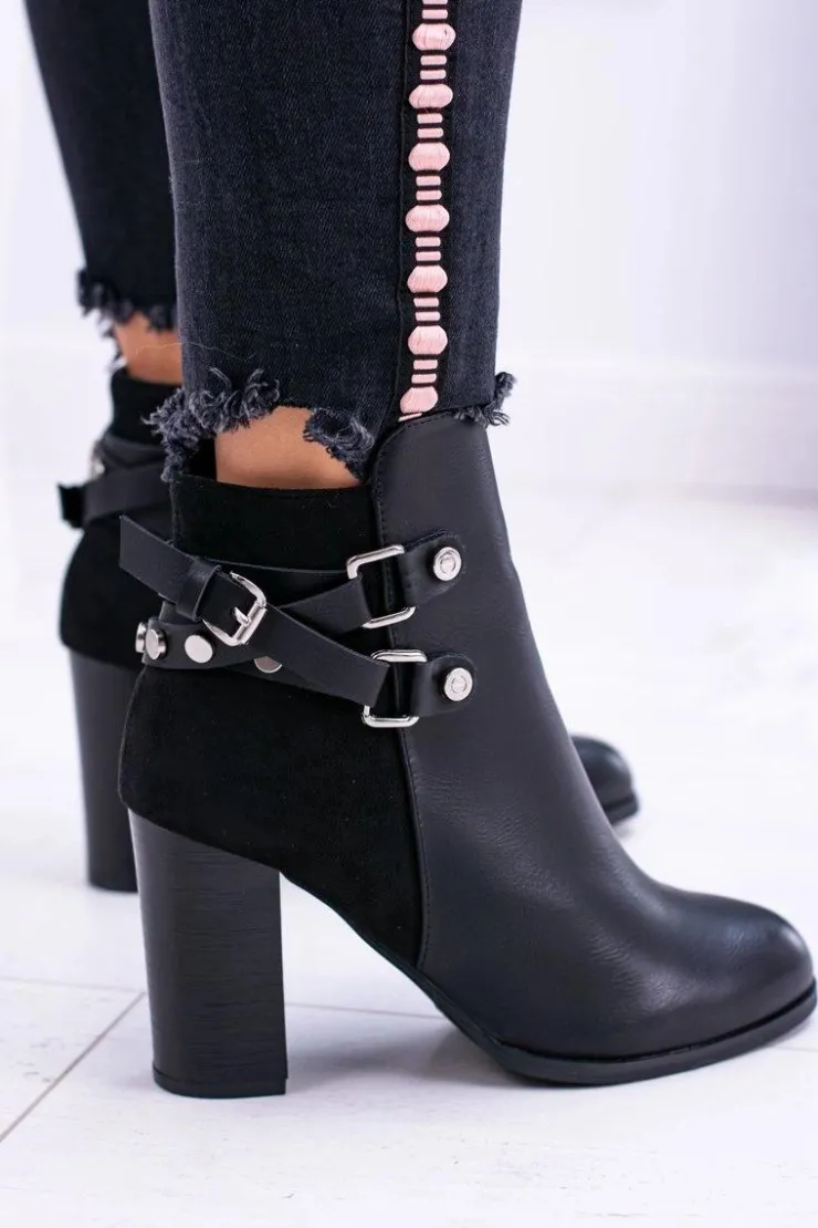 Damskie Boto Czarne Botki Na Słupku Z Paskami Lico Zamsz Nevada