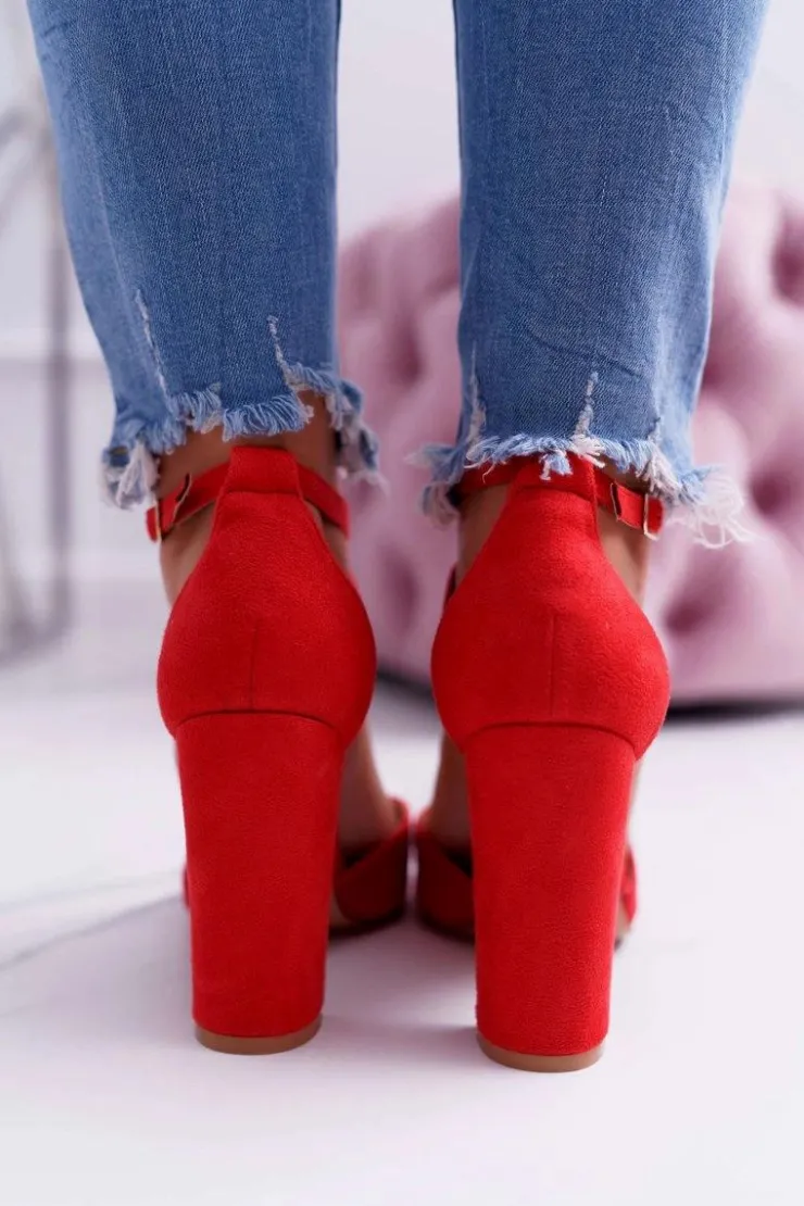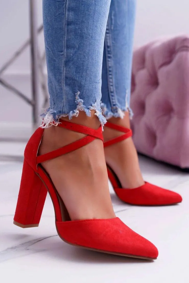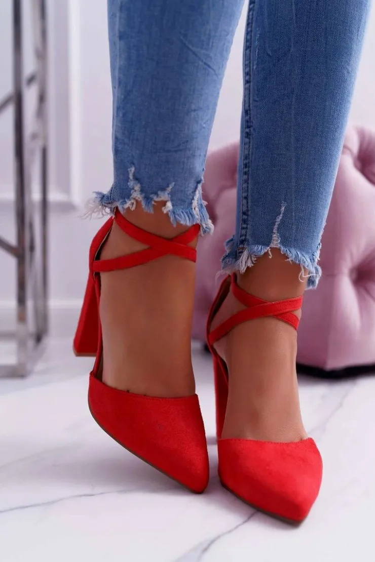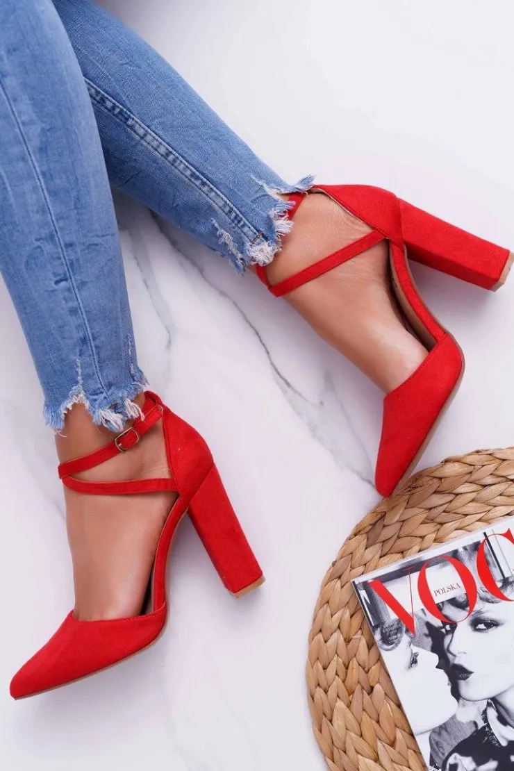 Damskie Boto Czółenka Damskie Na Słupku W Szpic Czerwone High Traffic