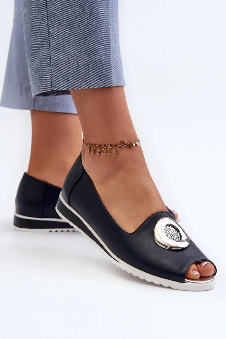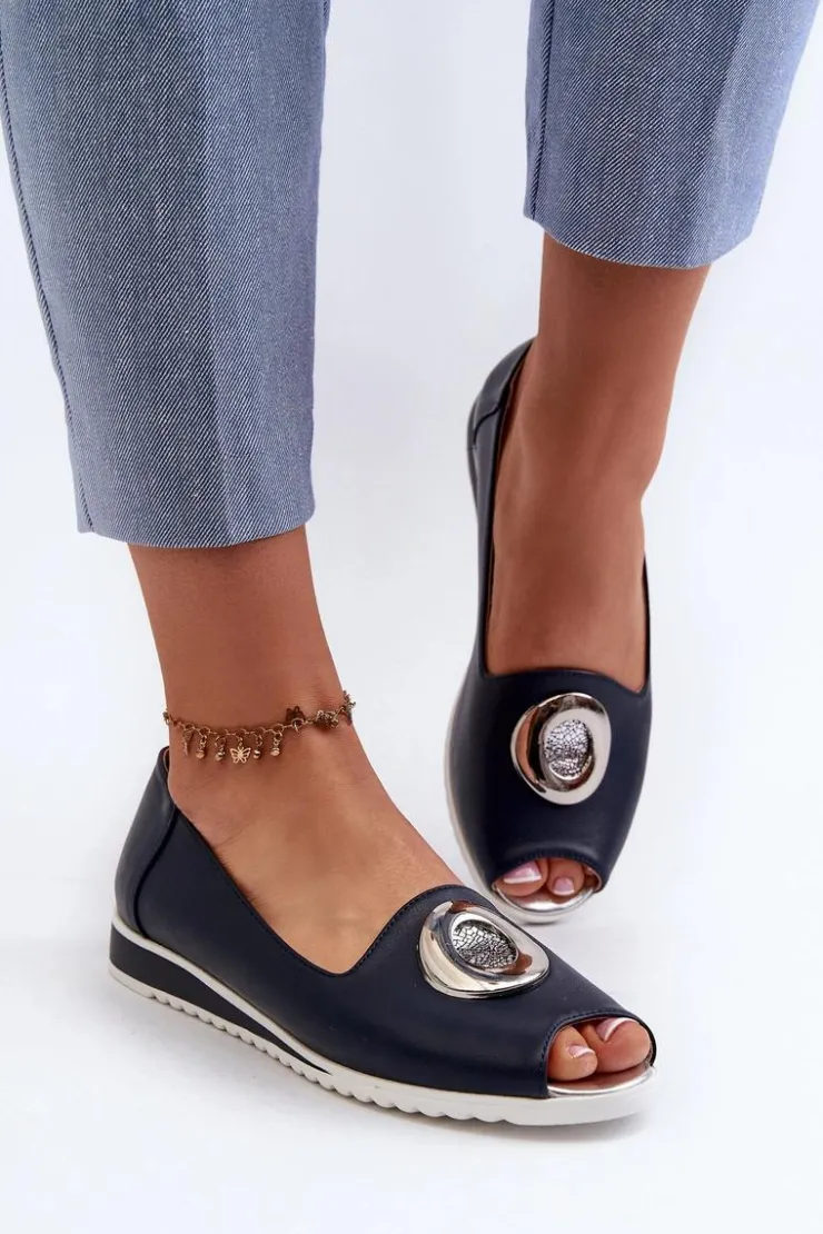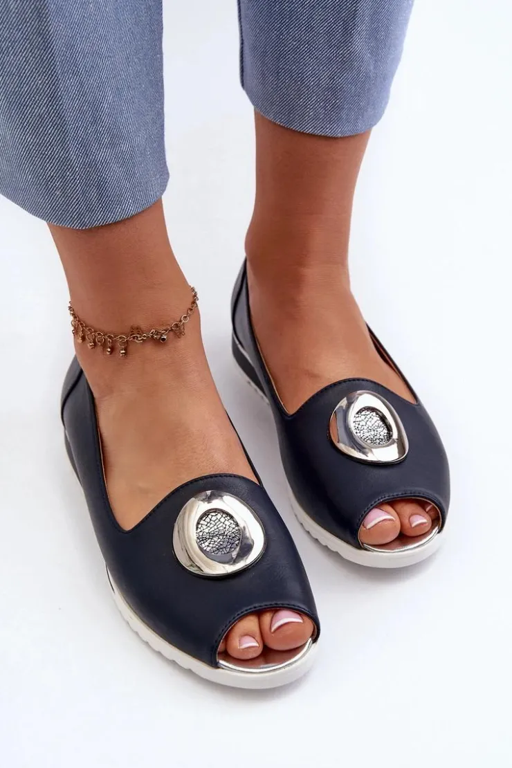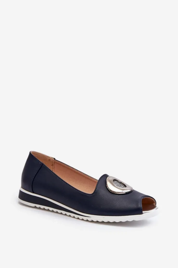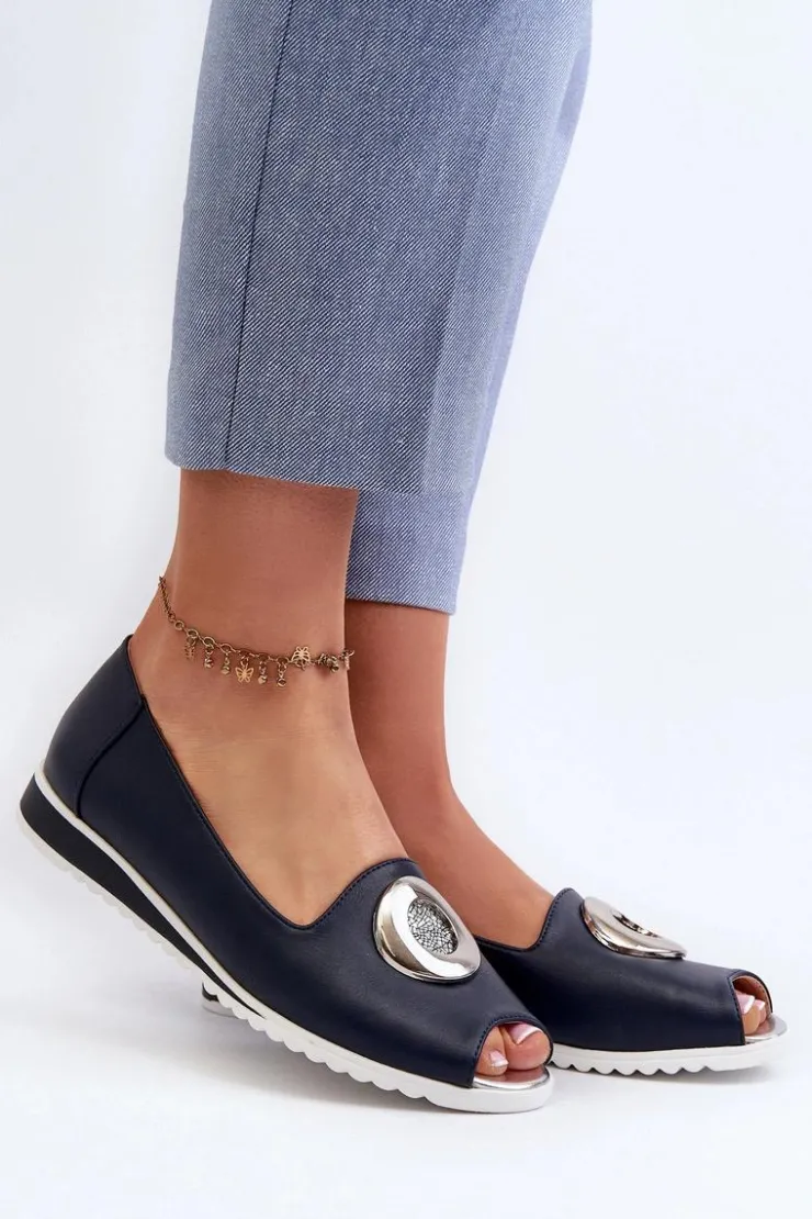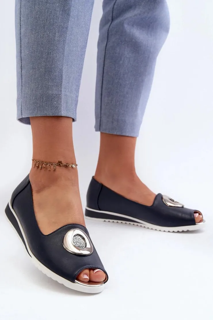 Damskie Boto Czółenka Damskie Z Ozdobą Eko Skórzane Granatowe Biolita