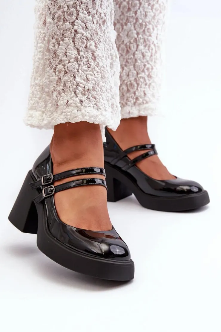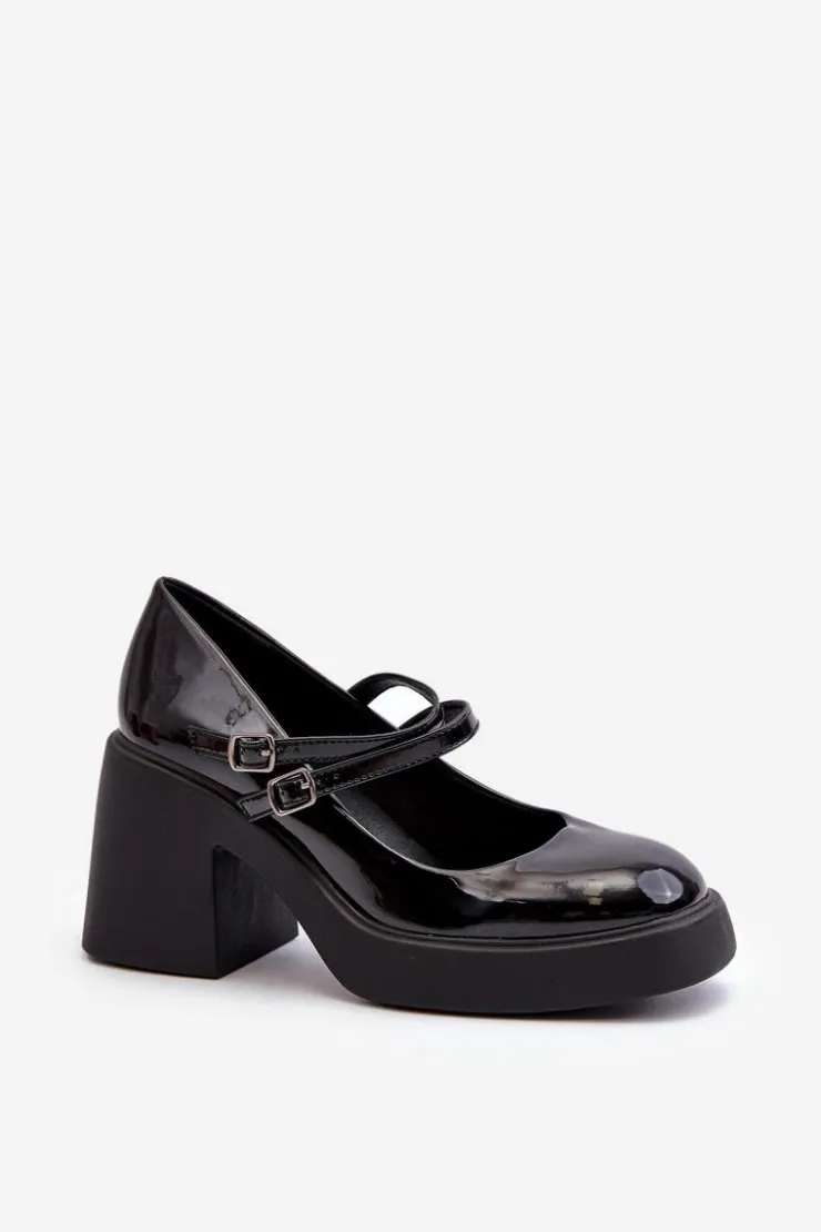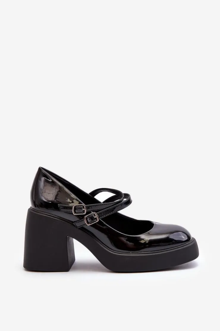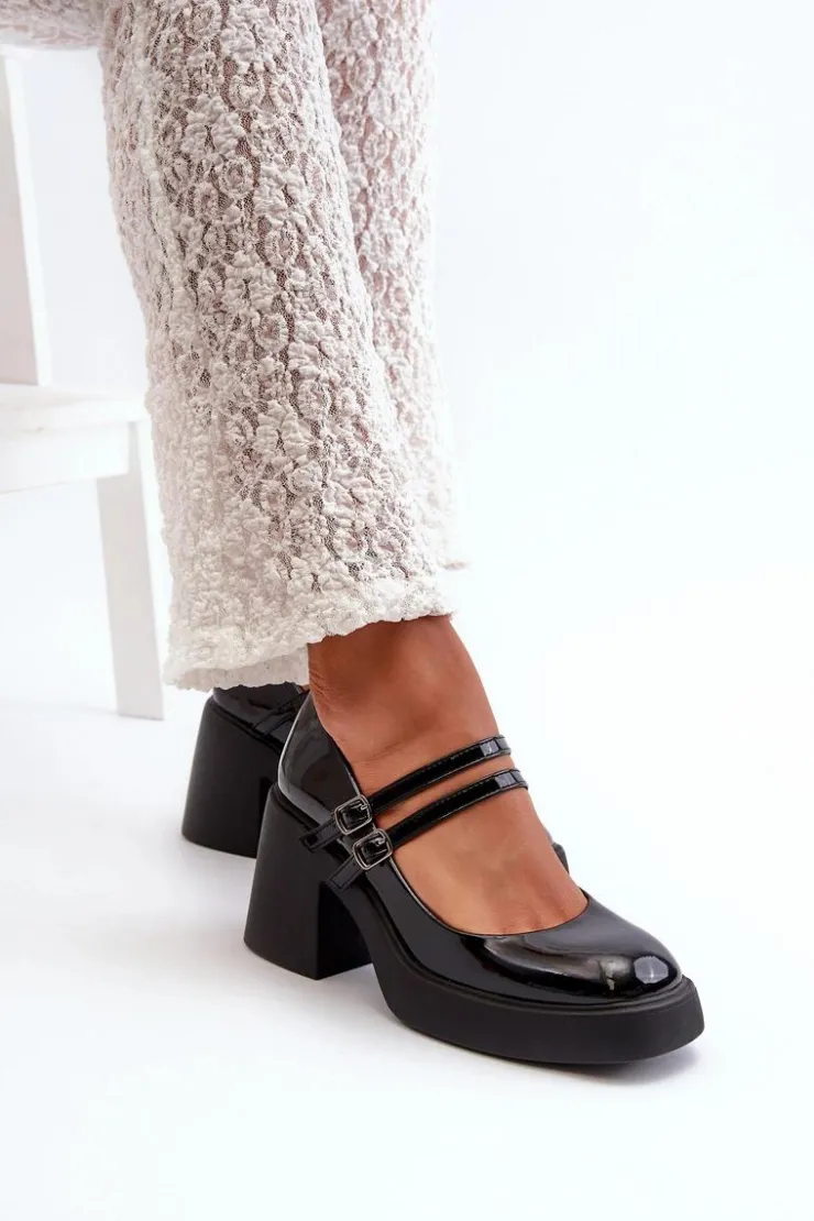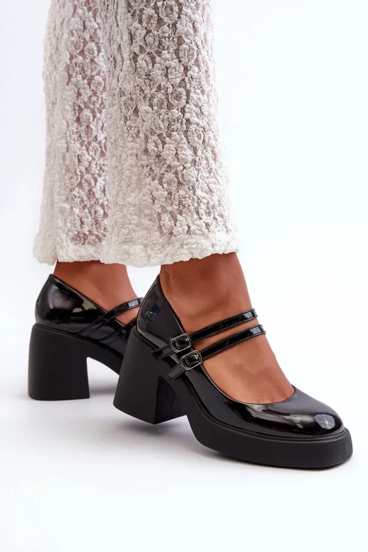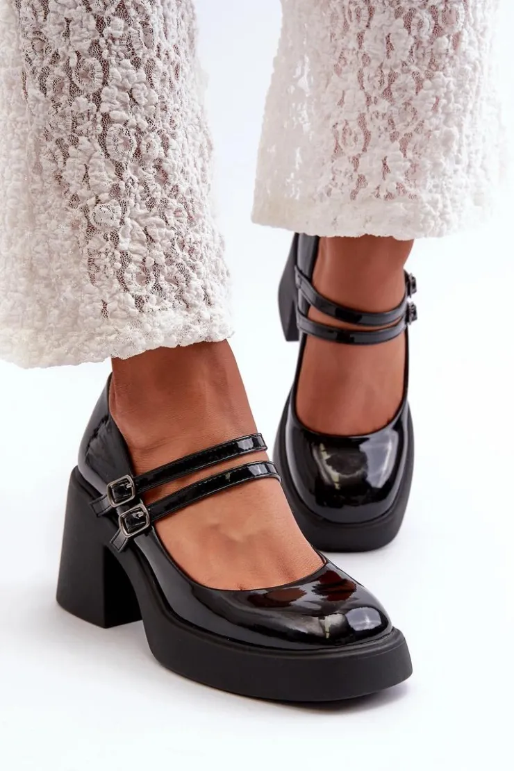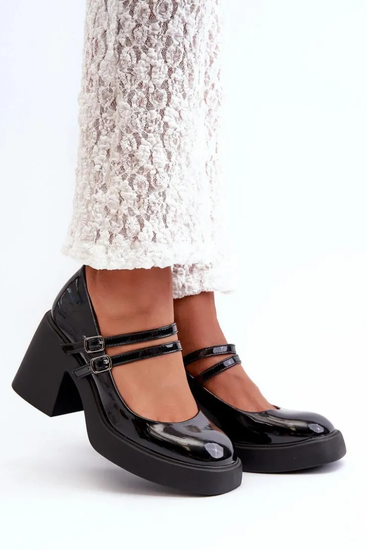 Czółenka wykonane ze skóry ekologicznej. Zapinane na dwa regulowane, cienkie, paseczki. Osadzone na masywnym, wyższym obcasie w postaci klocka. Zapiętek jest usztywniany, a nosek kwadratowy. Dodatkowo buty posiadają delikatną platformę. Ten modny fason koniecznie musi być Twój! Przy wyborze rozmiaru prosimy sugerować się tabelą rozmiarów.
