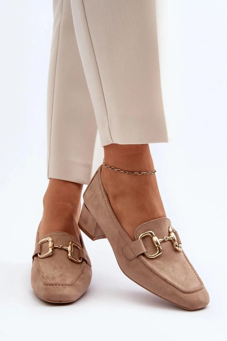 Damskie Boto Czółenka Na Niskim Obcasie Klocku Z Ozdobą Beżowe Dolvira
