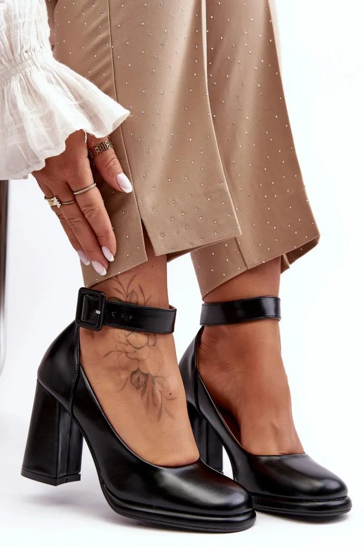 Damskie Boto Czółenka Na Słupku Z Klamrą Czarne Idovana