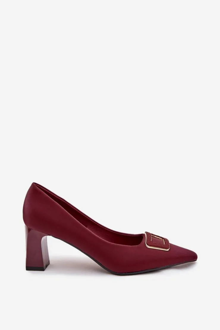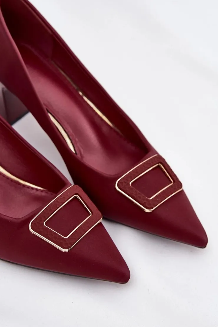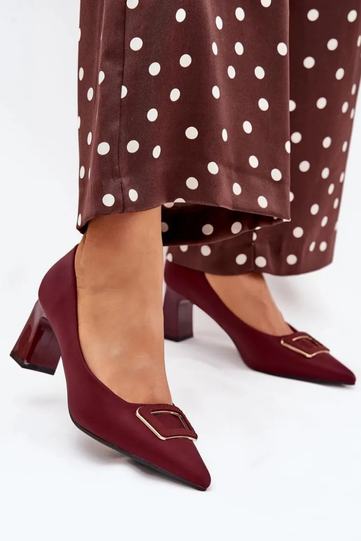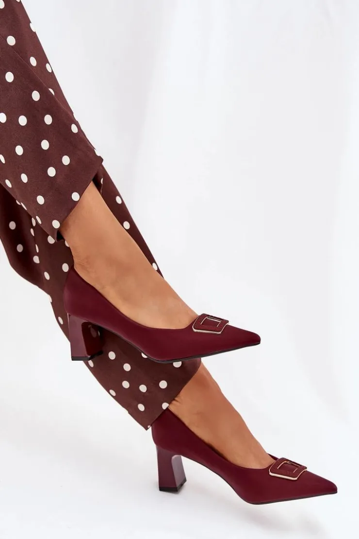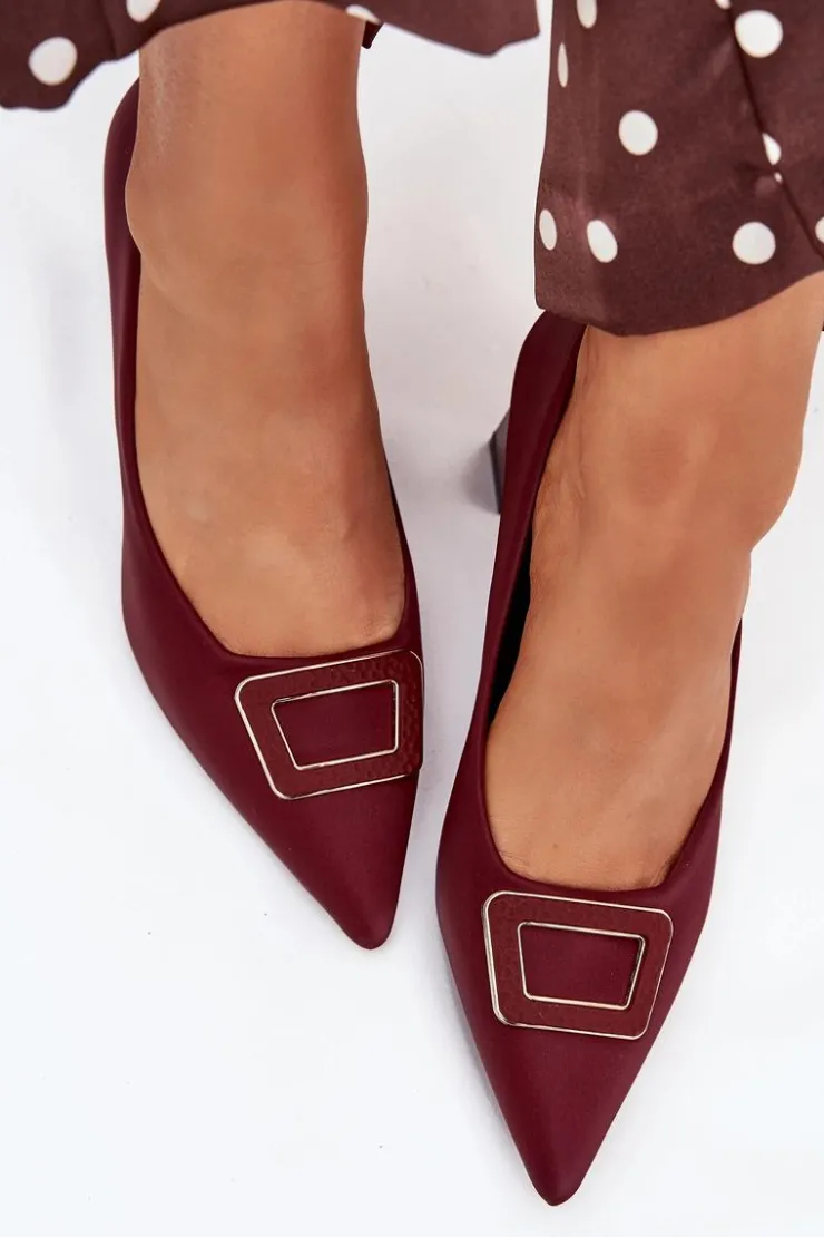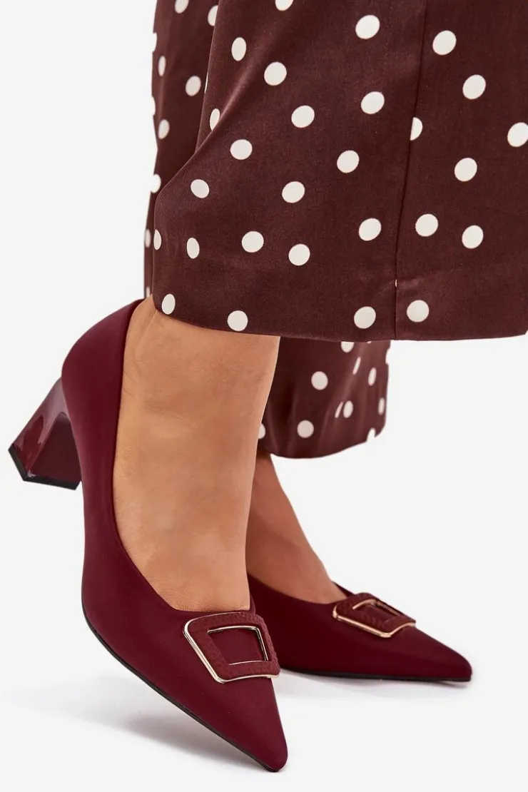 Damskie Boto Czółenka Na Słupku Z Ozdobną Klamrą Bordowe Seriva