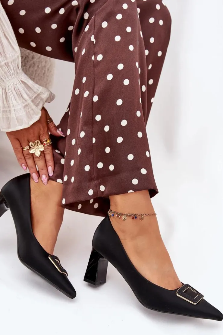 Czółenka damskie z eko skóry, osadzone na obcasie w formie słupka, to elegancka propozycja na różne okazje. Z przodu ozdobna klamra dodaje im wyjątkowego charakteru, a noski w szpic optycznie wysmuklają nogi. Idealne do sukienek, spódnic czy spodni, te czółenka łączą styl, wygodę i nowoczesny wygląd, tworząc ponadczasową klasykę w Twojej garderobie. Przy wyborze rozmiaru prosimy kierować się tabelą rozmiarów