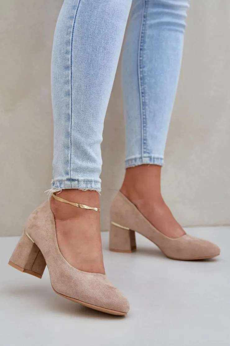 Czółenka z eko zamszu to klasyczna propozycja na każdą okazję. Zaokrąglone noski zapewniają komfort noszenia, a obcas słupek dodaje stabilności. Eko skórzana, miękka wkładka gwarantuje wygodę przez cały dzień. Te czółenka doskonale pasują do zarówno codziennych, jak i bardziej formalnych stylizacji. Przy wyborze rozmiaru prosimy sugerować się tabelą rozmiarów.