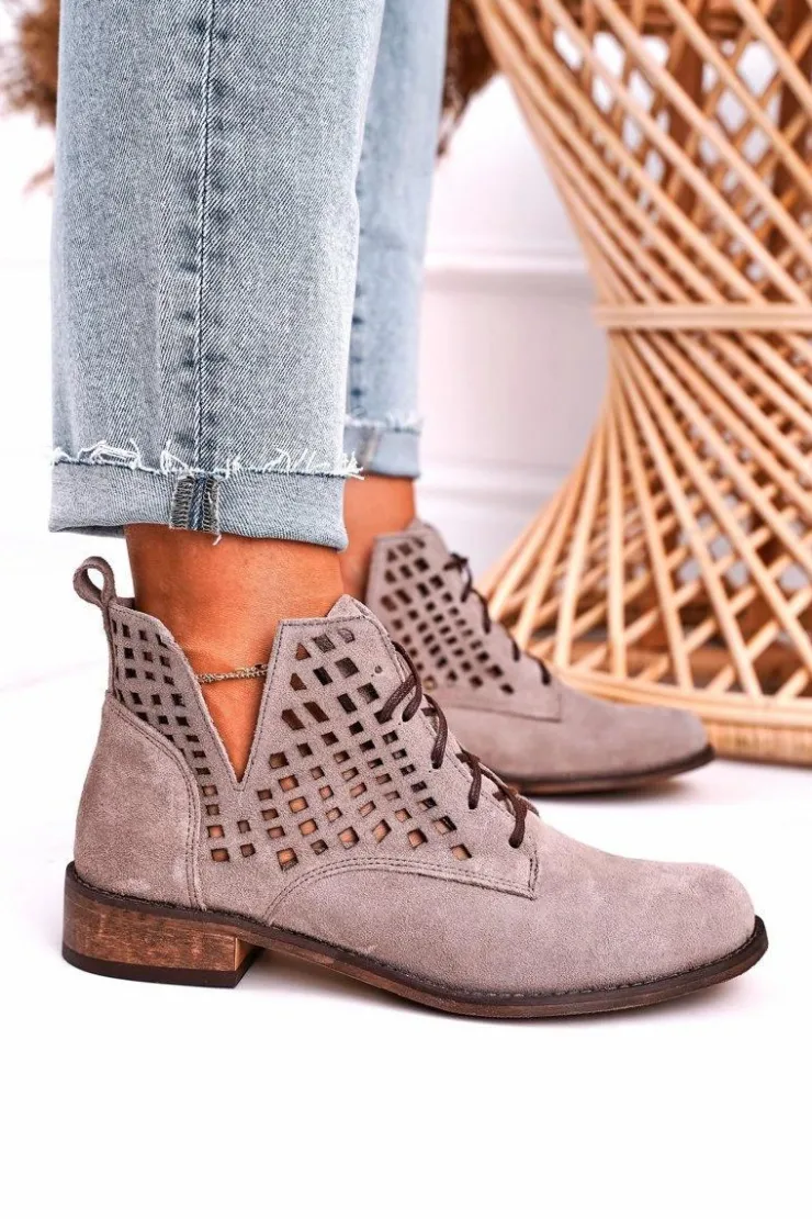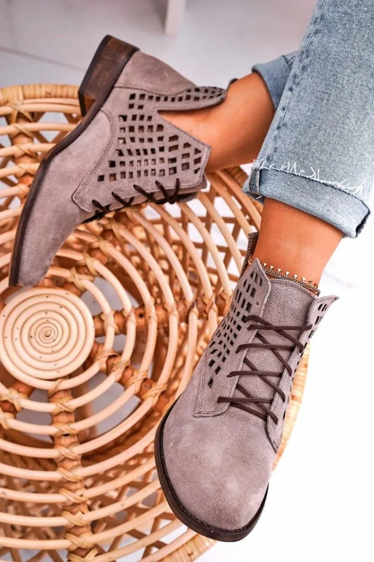 Damskie Boto Damskie Ażurowe Botki Zamszowe Cappuccino Susannah
