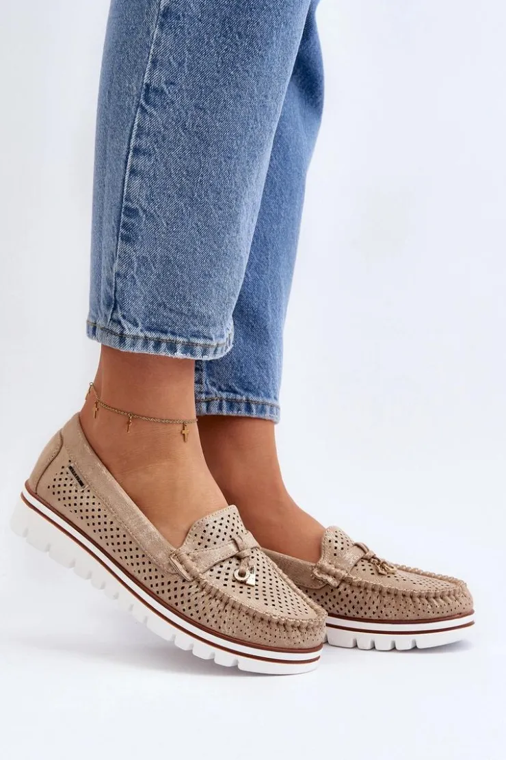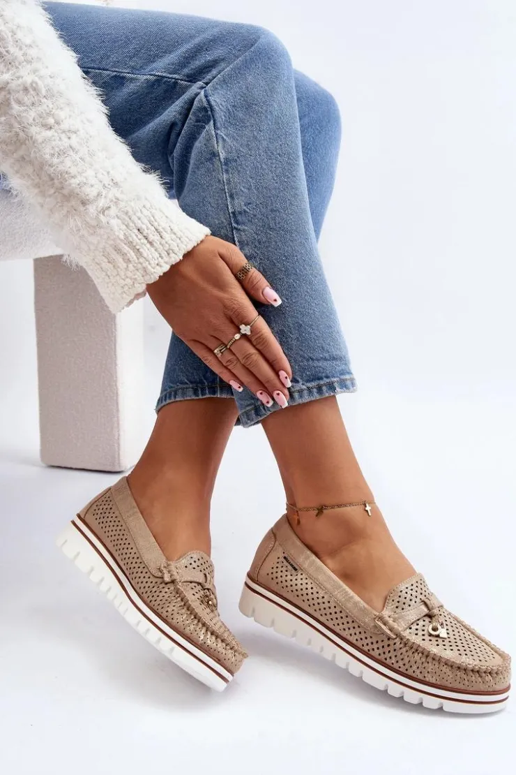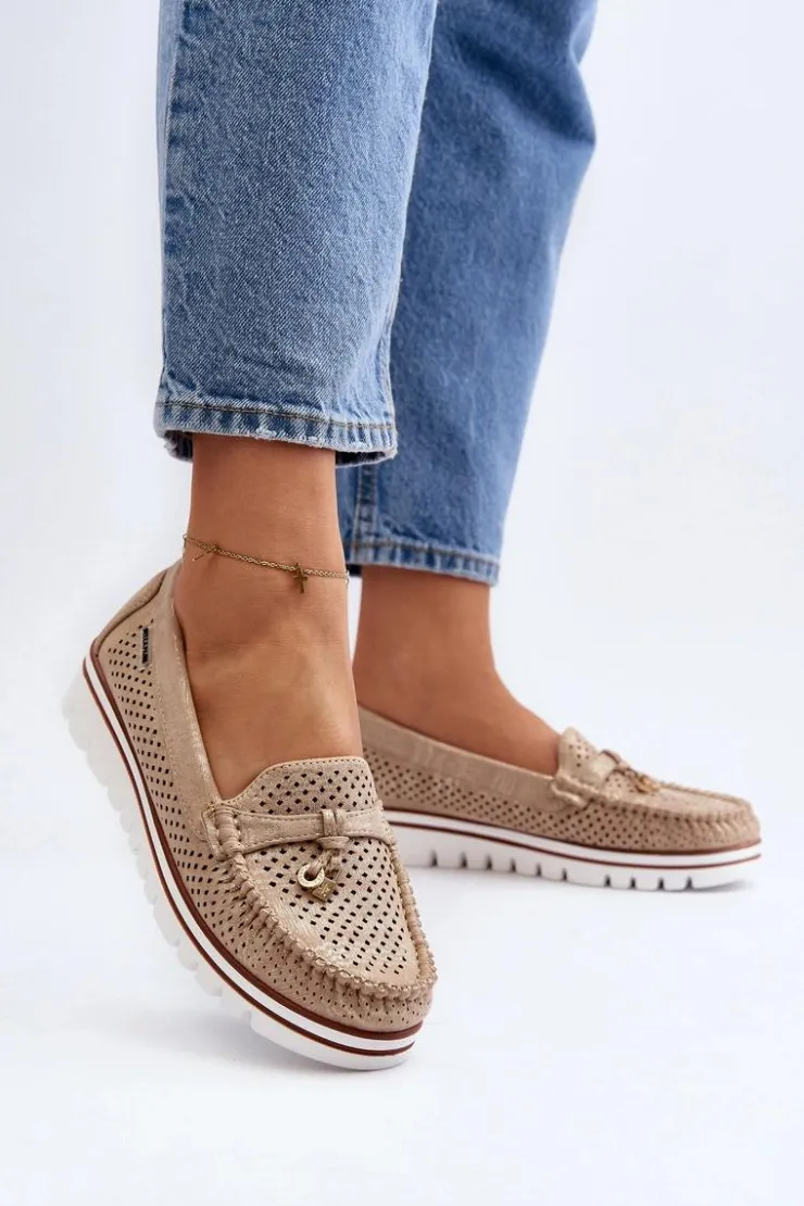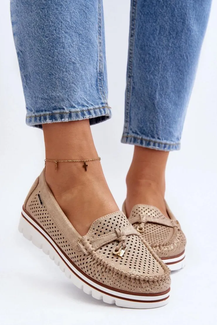 Damskie Boto Damskie Ażurowe Mokasyny Złote Twista