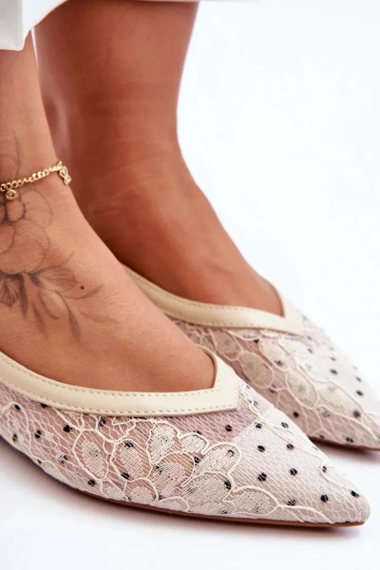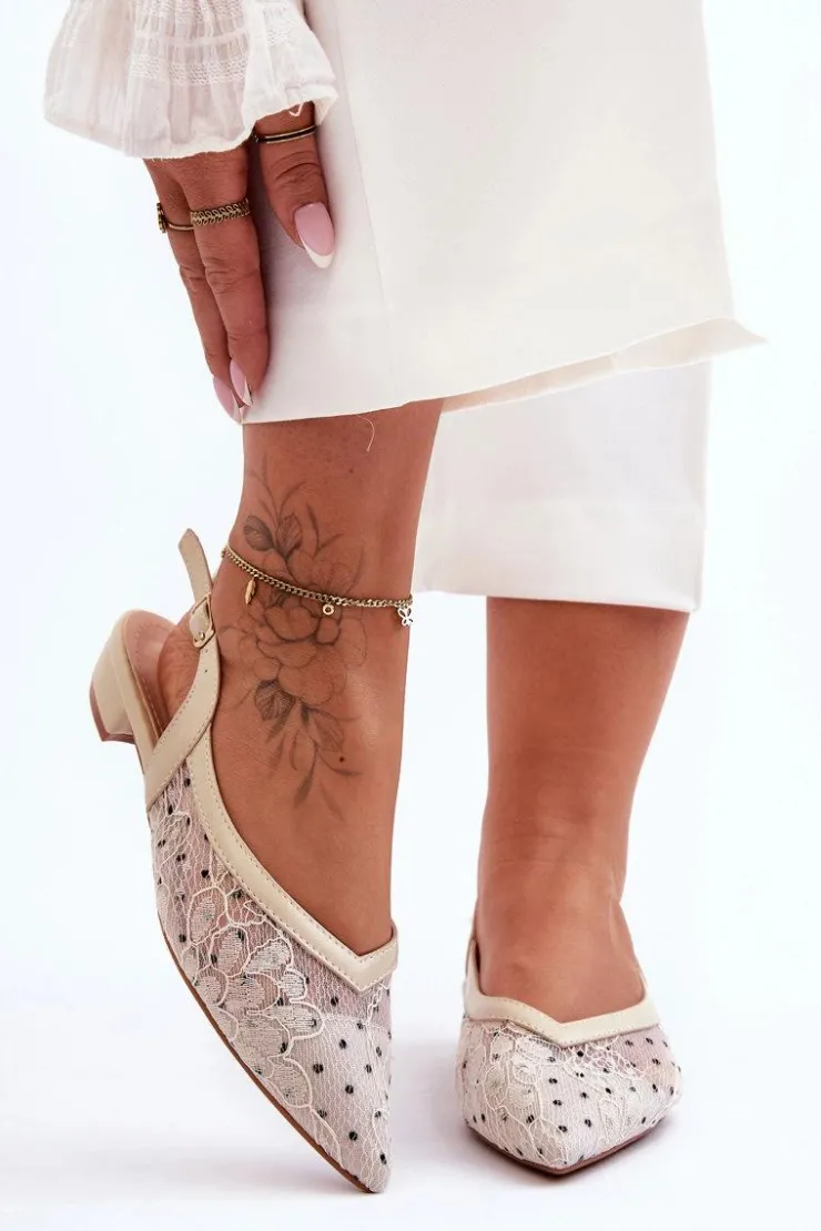 Eleganckie baleriny z odkrytą piętą i noskiem w szpic na pewno przypadną Ci do gustu! Zostały wykonane z połączenia tworzywa i eko skóry. Posiadają zapinanie na regulowany pasek ze sprzączką. Miękka, eko skórzana wkładka zapewni komfort podczas użytkowania. Baleriny posiadają płaski obcas, co sprawia, że będziesz czuć się w nich stabilnie.Podczas wyboru rozmiaru prosimy sugerować się tabelą rozmiarów.