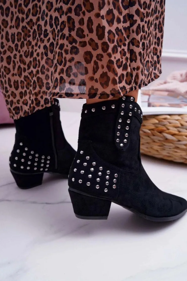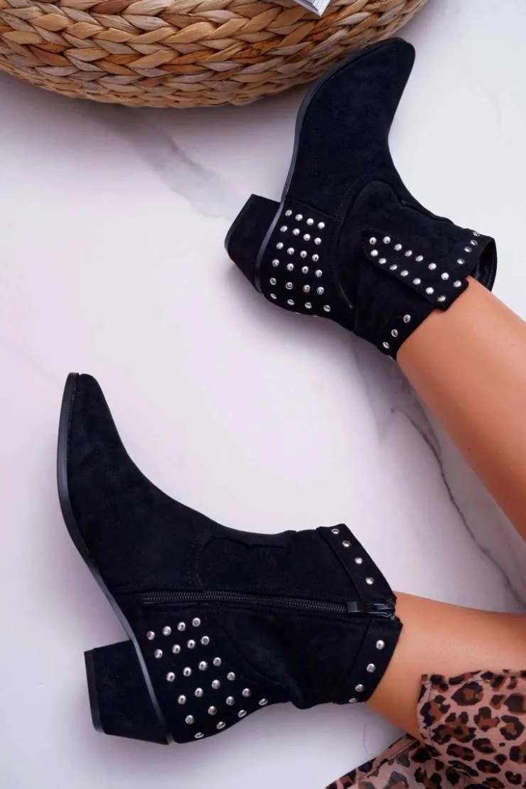 Damskie Boto Damskie Botki Kowbojki Płaski Obcas Czarne Fine