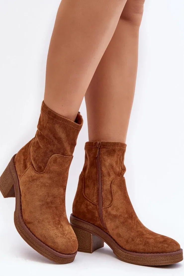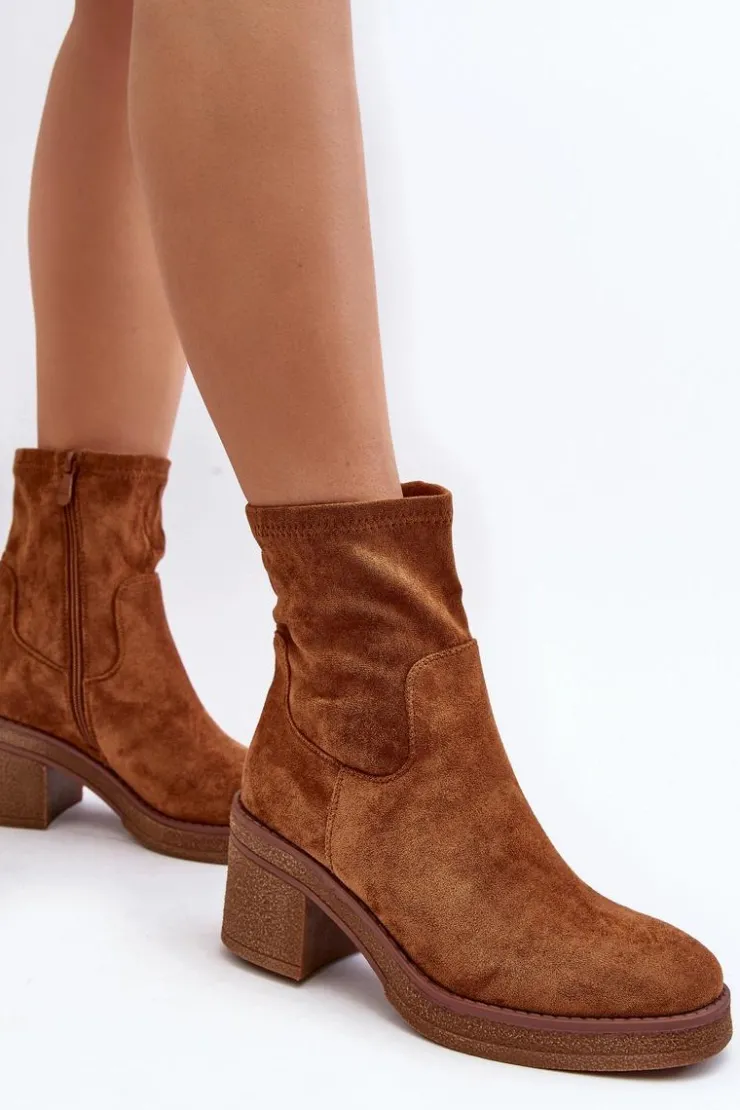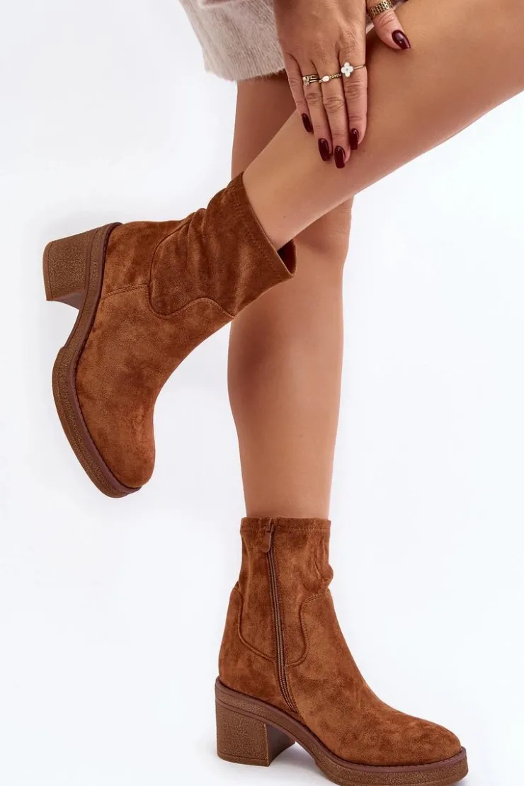 Klasyczne botki damskie, które dopasujesz do wielu jesienno-zimowych stylizacji! Wykonane z eko zamszu. Osadzone na obcasie w postaci słupka. Noski zaokrąglone. Środek częściowo ocieplony kocem obuwniczym. Koniecznie musisz je mieć! Przy wyborze rozmiaru prosimy sugerować się tabelą rozmiarów.