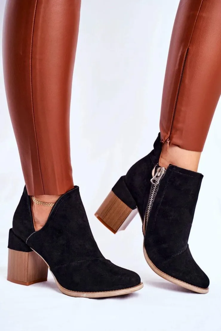 Damskie Boto Damskie Botki Na Słupku Czarne Wycięte Meliori