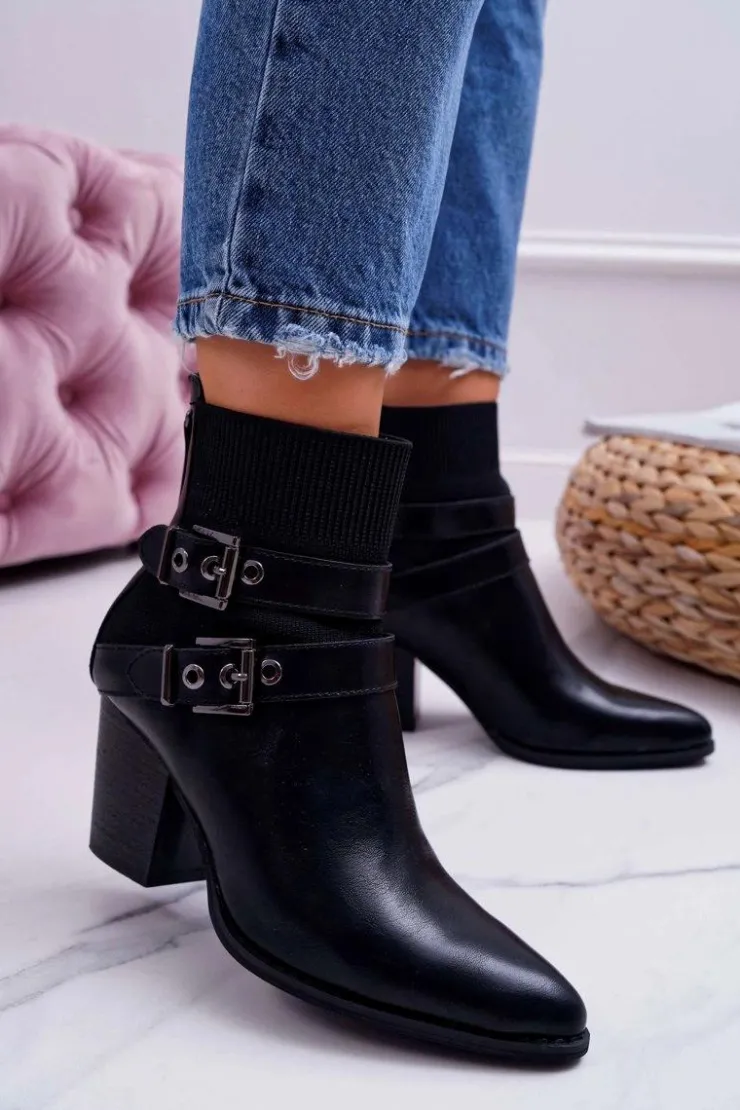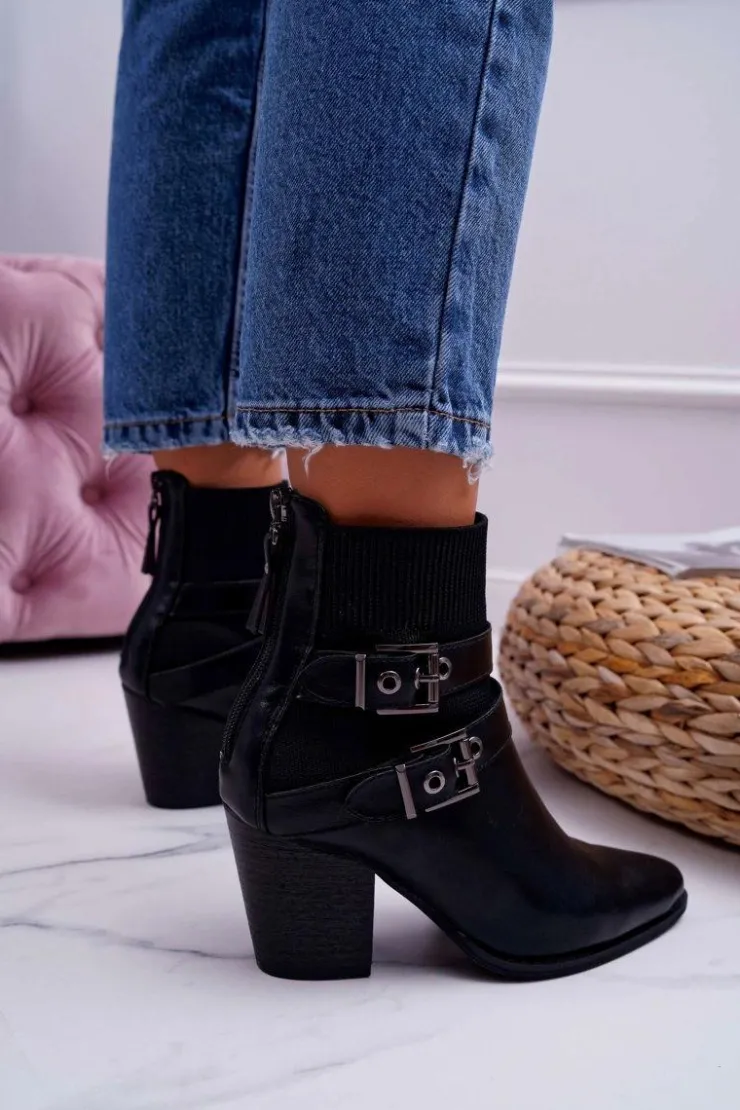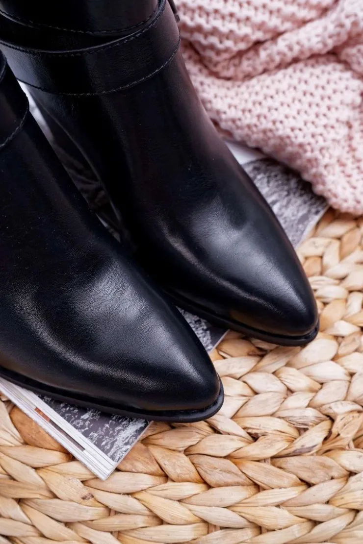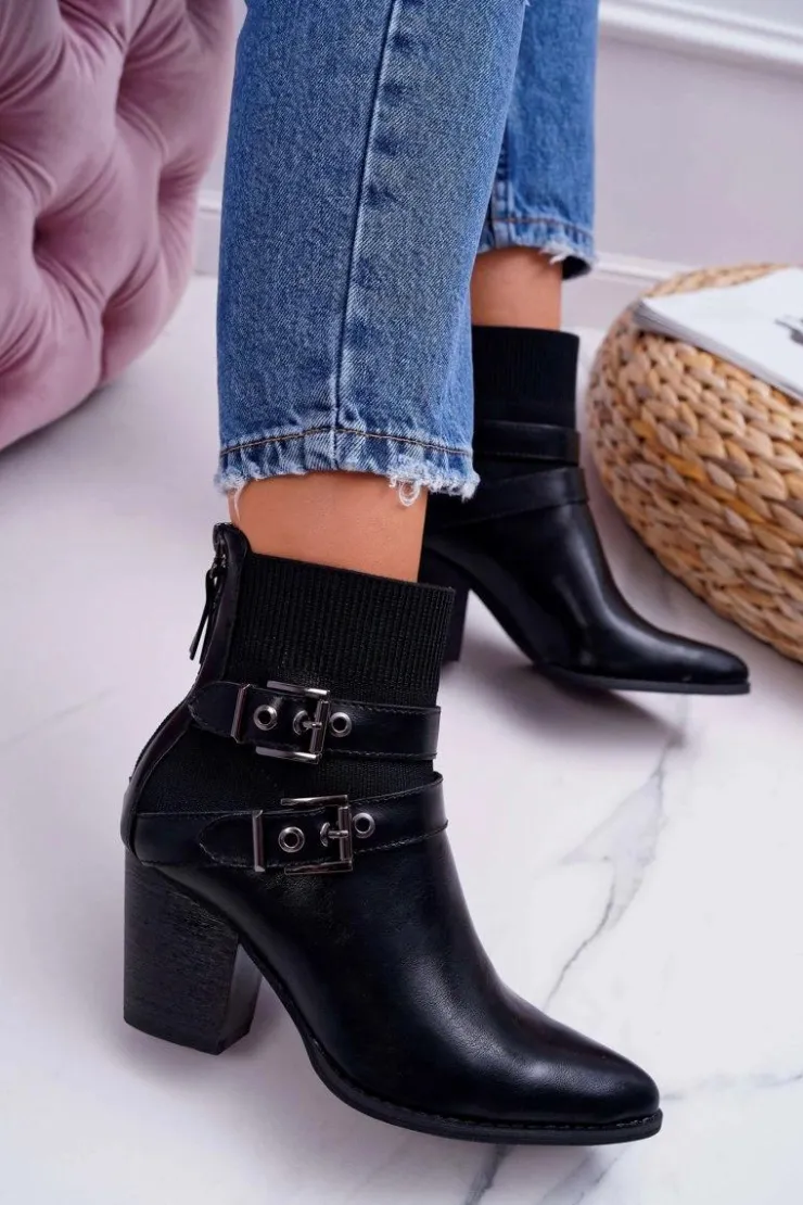 Damskie Boto Damskie Botki Na Słupku Klamry W Szpic Czarne Fello