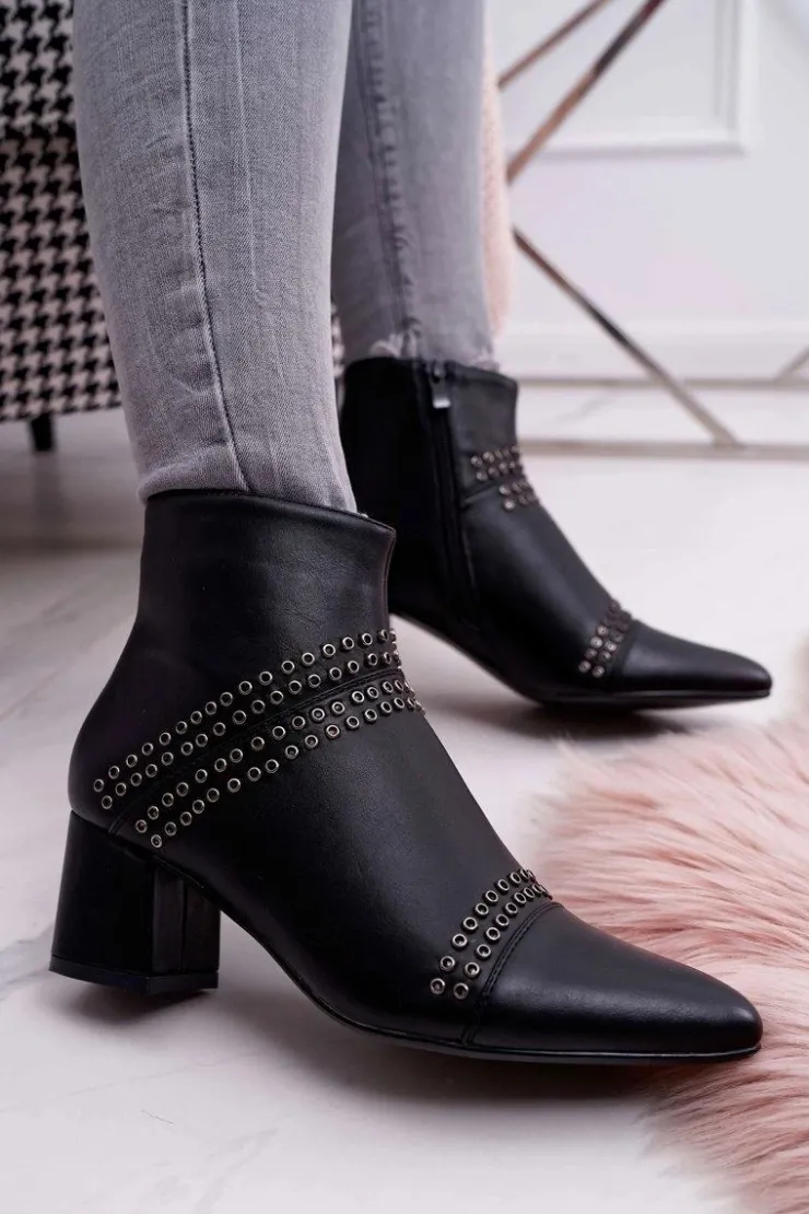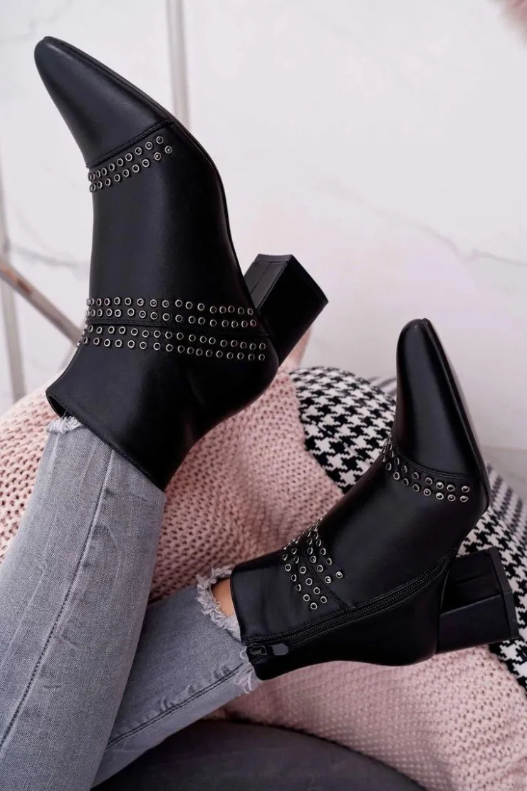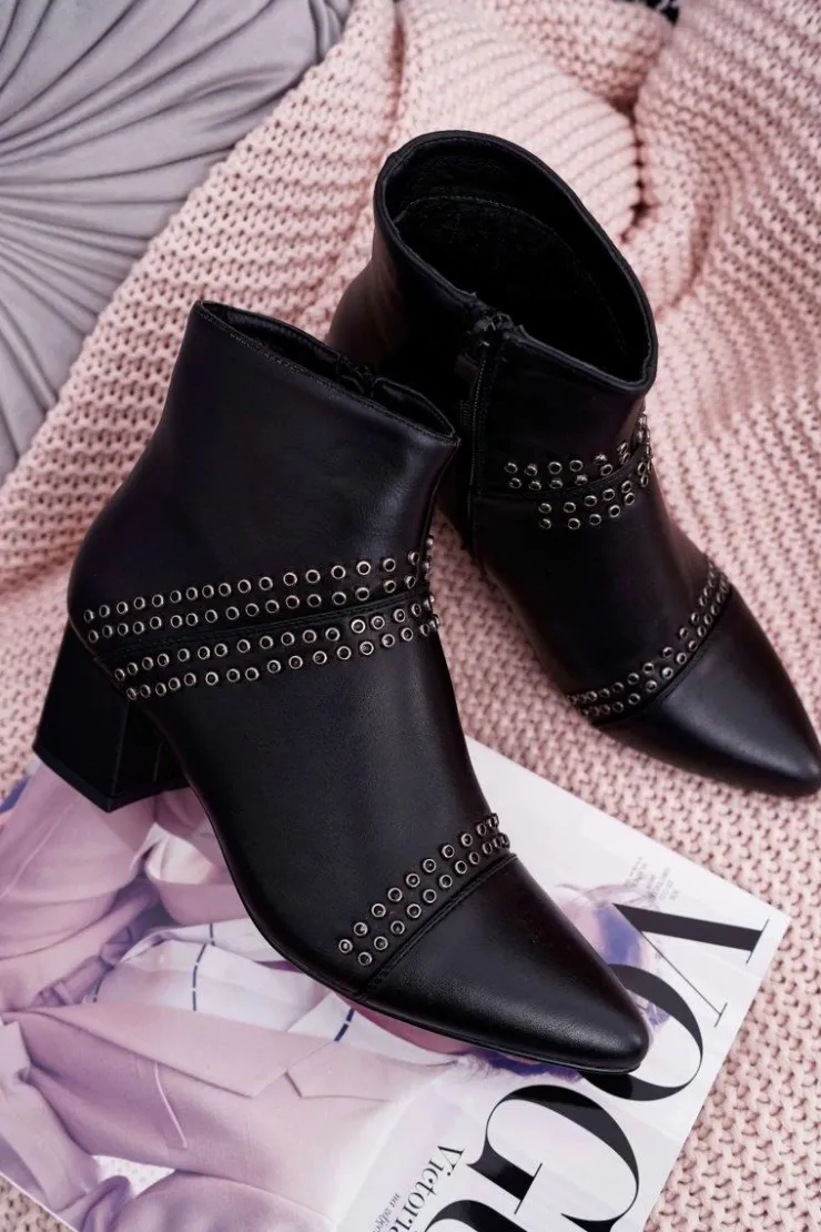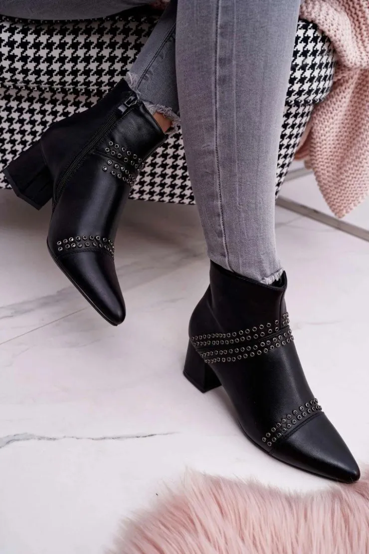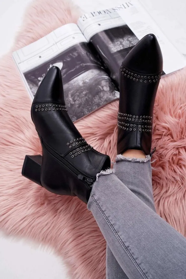 Damskie Boto Damskie Botki Na Słupku W Szpic Z Nitami Czarne Primma