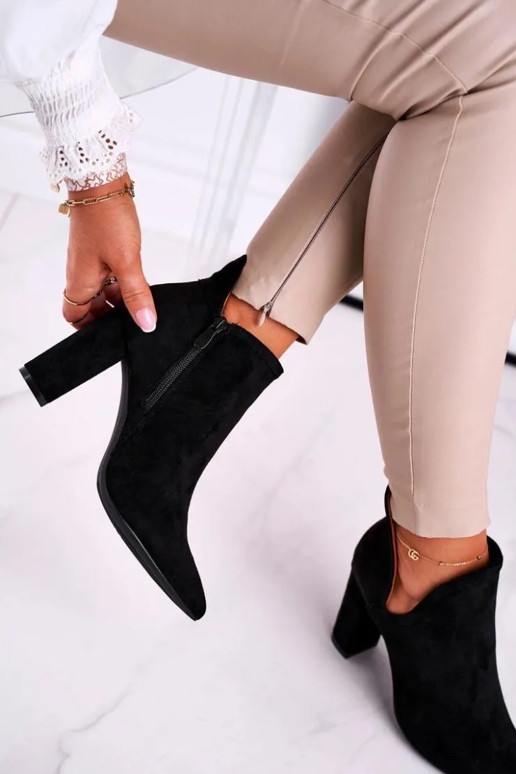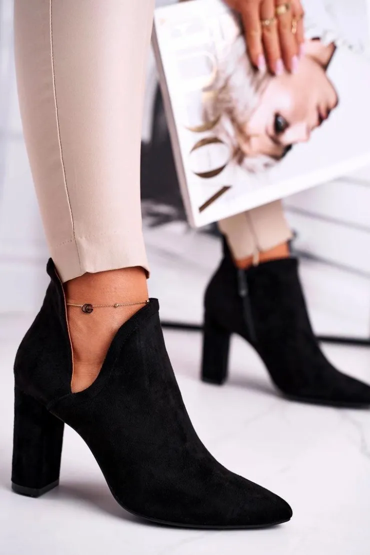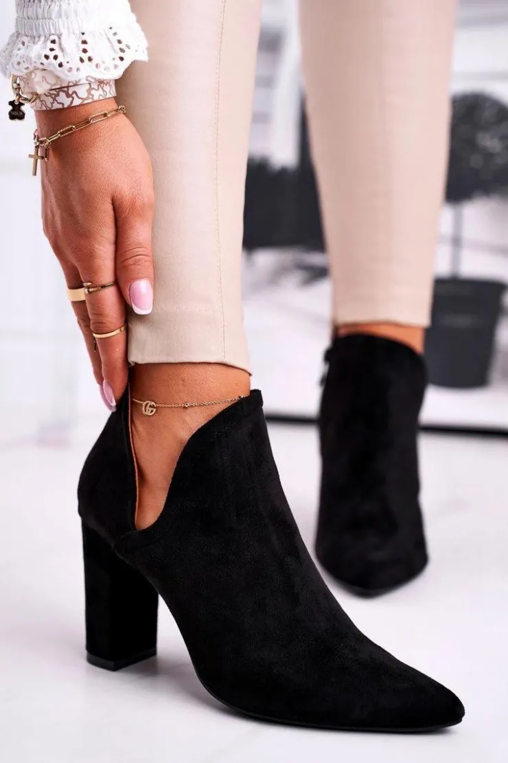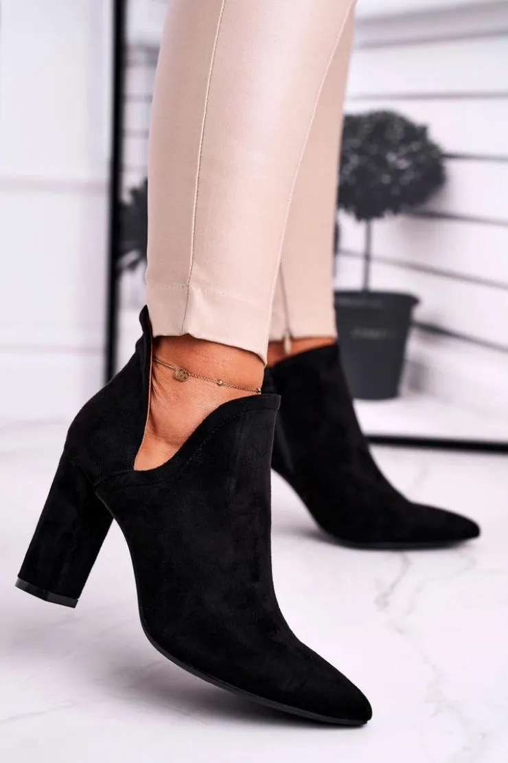 Damskie Boto Damskie Botki Na Słupku Wycięte Czarne Voom