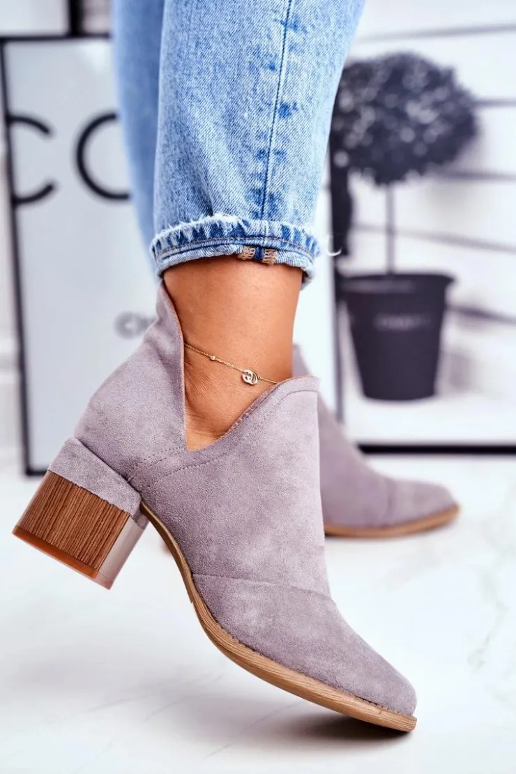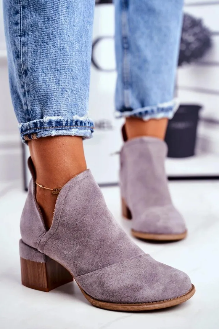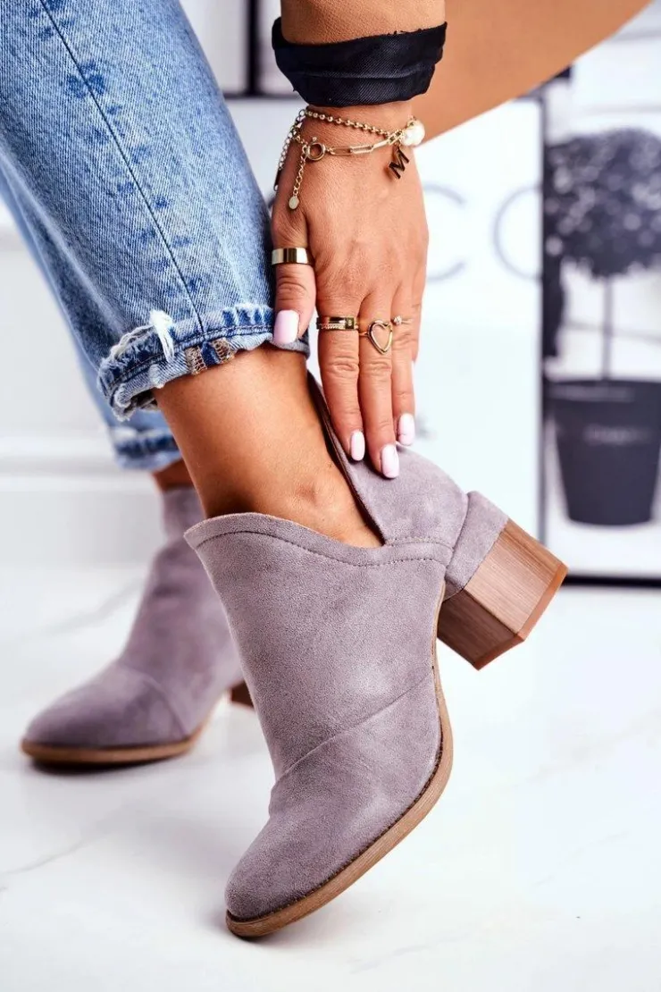 Damskie Boto Damskie Botki Na Słupku Wycięte Szare Mini Meliori