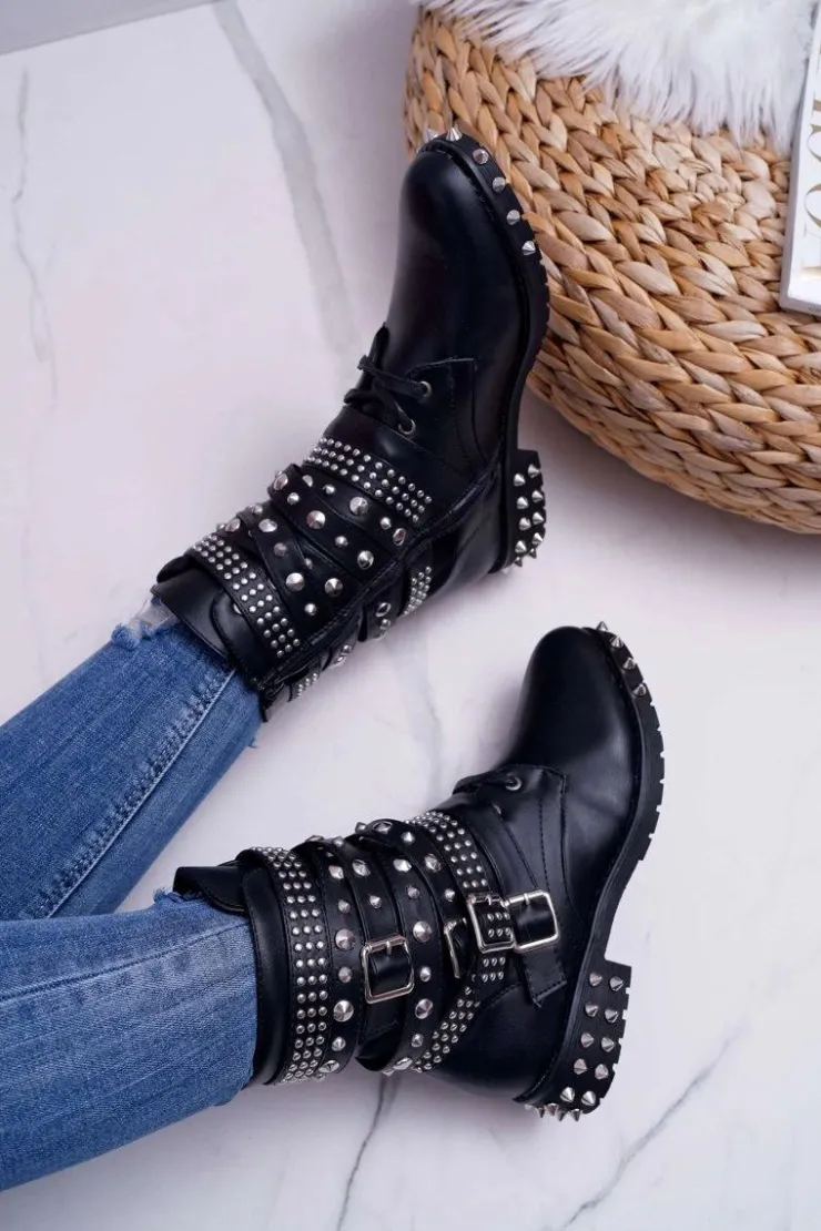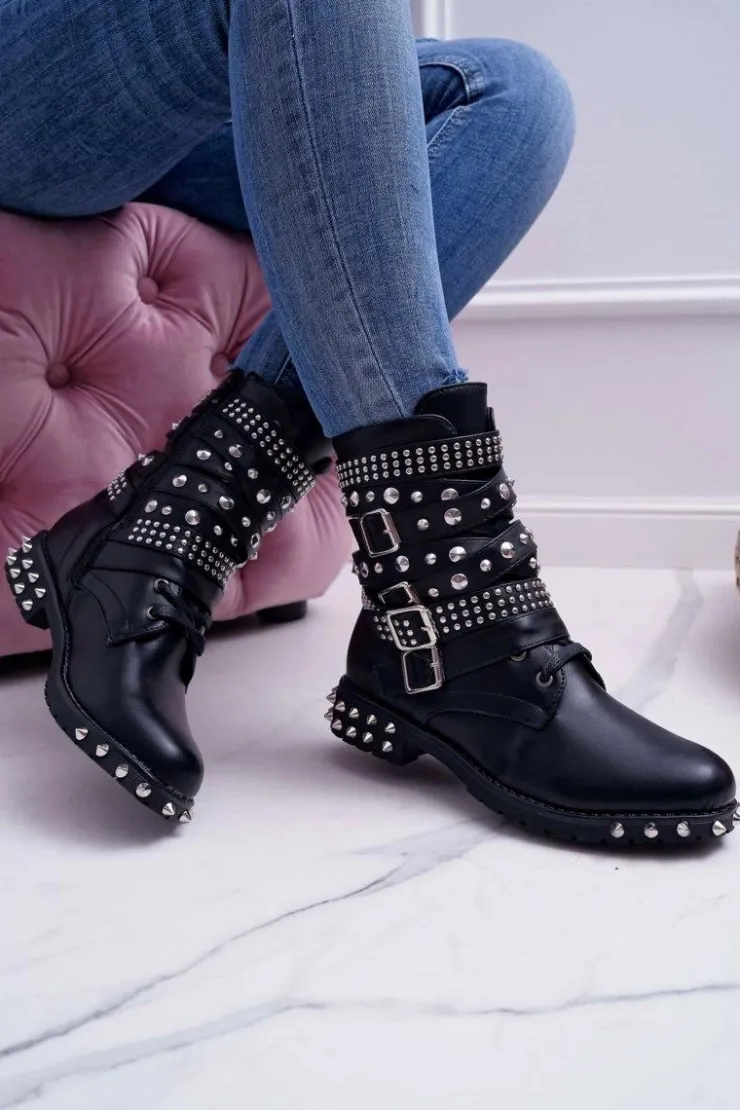 Wydawałoby się że już nic cię nie zaskoczy, a jednak! Nasza kolekcja nigdy nie przestaje zaskakiwać, tym razem przygotowaliśmy dla Was botki w rockowym stylu! Czarny kolor pozwoli ci na maksimum możliwości dobierania stylizacji. Oprócz koloru, który wpasuję się w każde trendy, podkreślą one twój mocny charakter! Postaw na mocny styl! Przy wyborze rozmiaru prosimy kierować tabelą rozmiarów.
