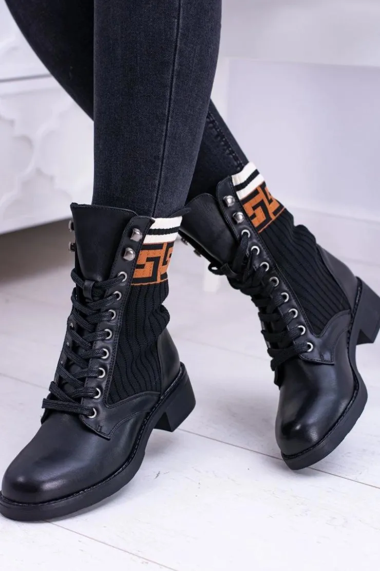 Damskie Boto Damskie Botki Skarpetkowe Czarne Herse