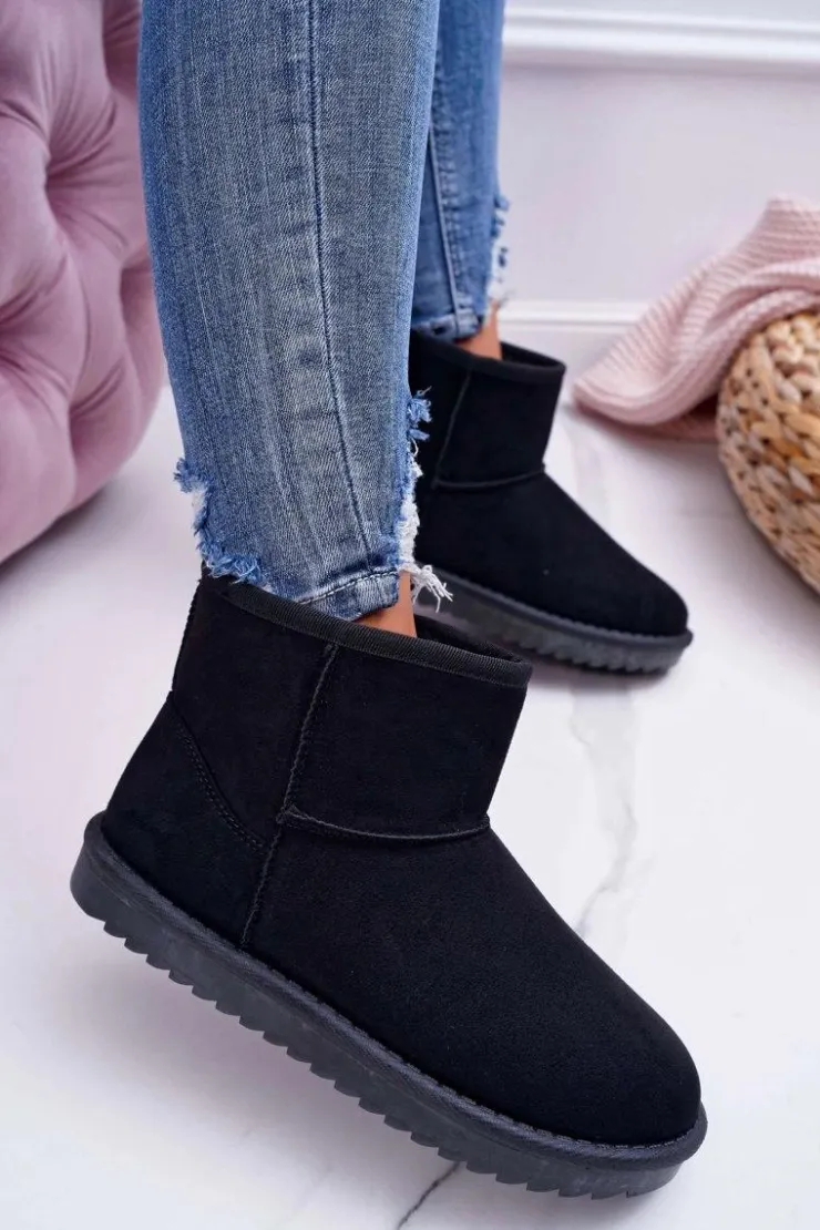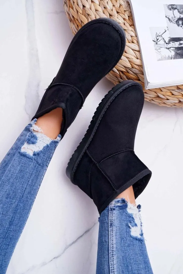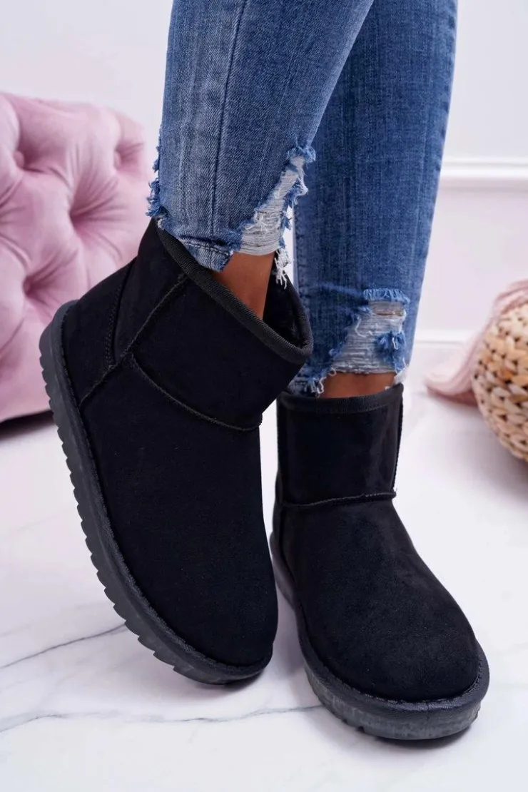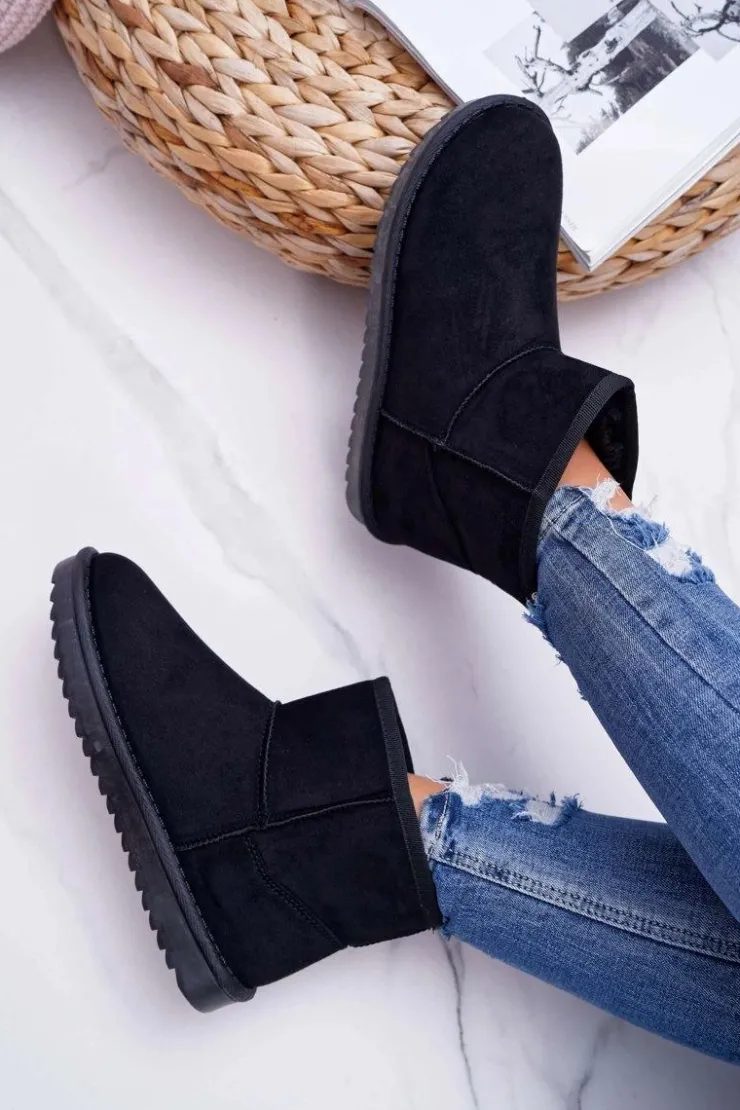 Damskie Boto Damskie Botki Śniegowce Ocieplane Czarne Puffen