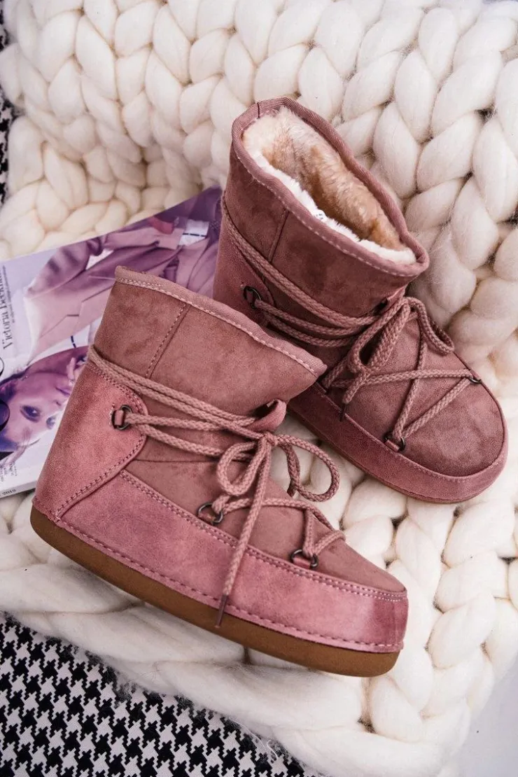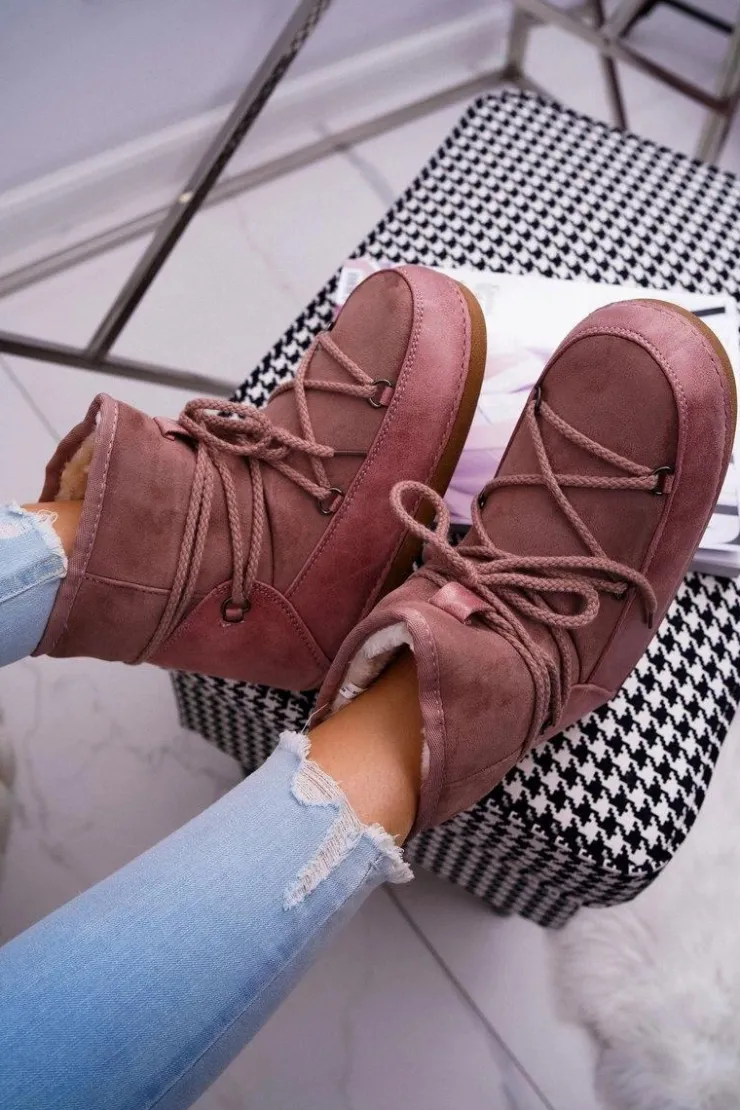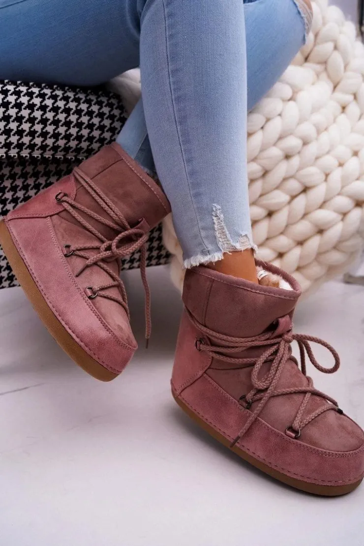 Damskie Boto Damskie Botki Śniegowce Ocieplane Futerkiem Różowe Veme