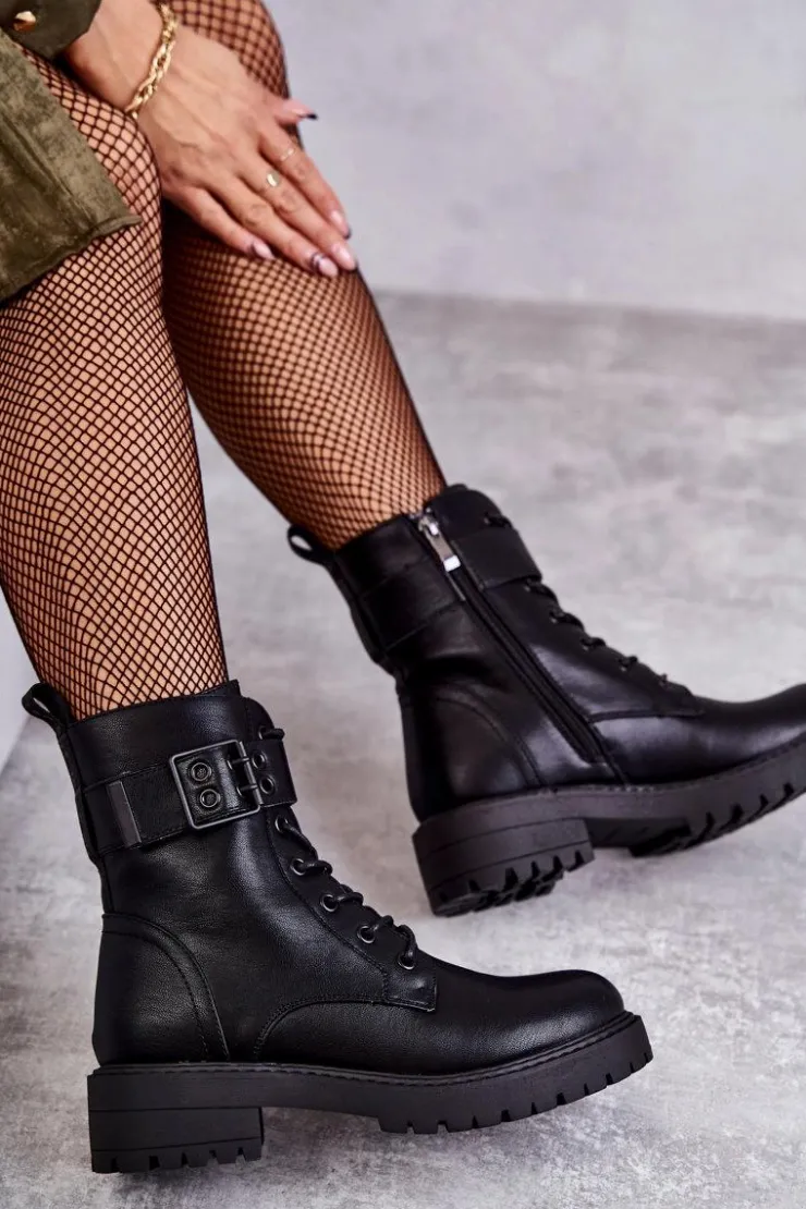 Modne botki damskie zostały wykonane z eko skóry. Posiadają suwak na boku cholewki, sznurowanie oraz klamrę z regulowanym paskiem. W środku znajduje się ocieplenie w postaci koca obuwniczego. Buty dodatkowo posiadają usztywniany zapiętek. Świetny model na jesienne, chłodne dni! Koniecznie sprawdź także pozostałe modele botków dostępne na naszej stronie! Przy wyborze rozmiaru prosimy sugerować się tabelą rozmiarów.