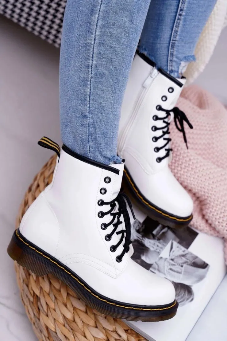 Damskie Boto Damskie Botki Trapery Glany Białe Gangsta