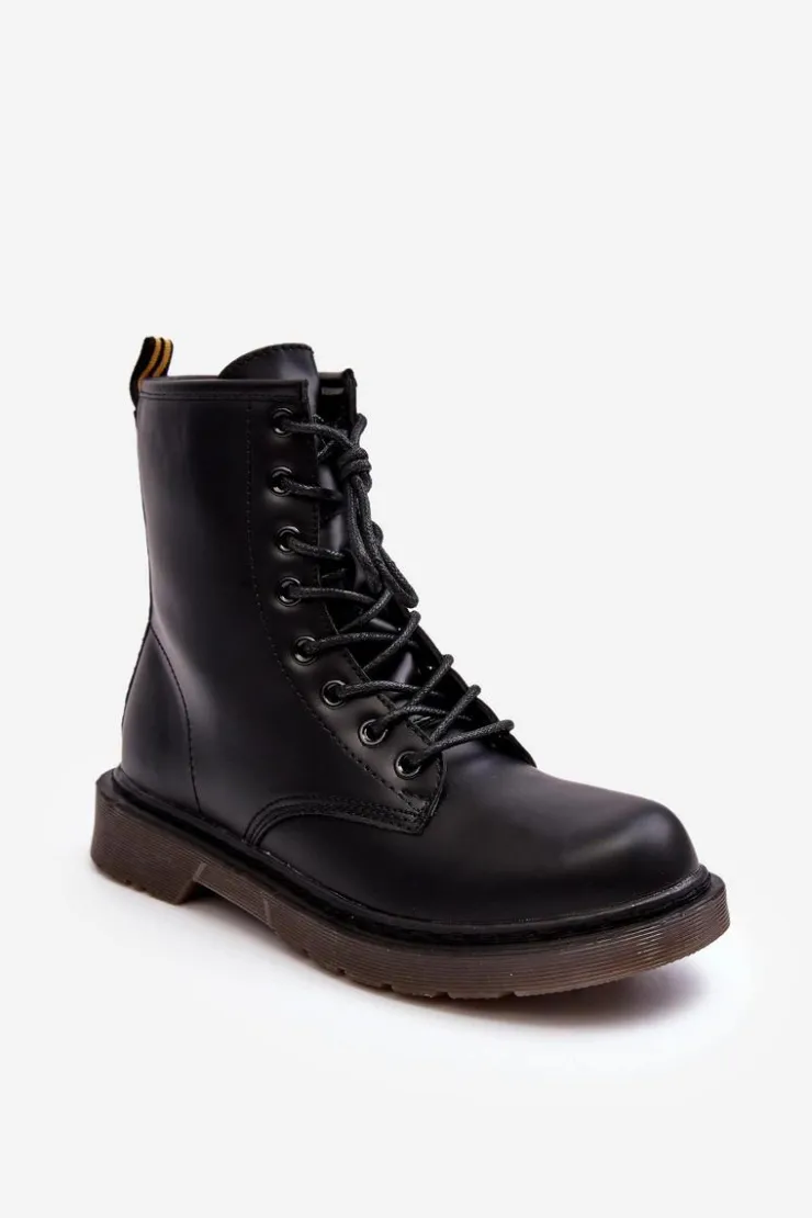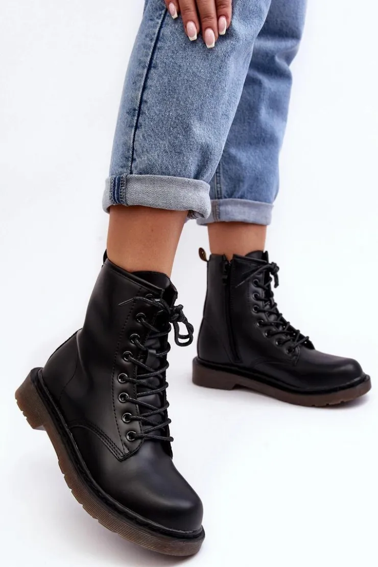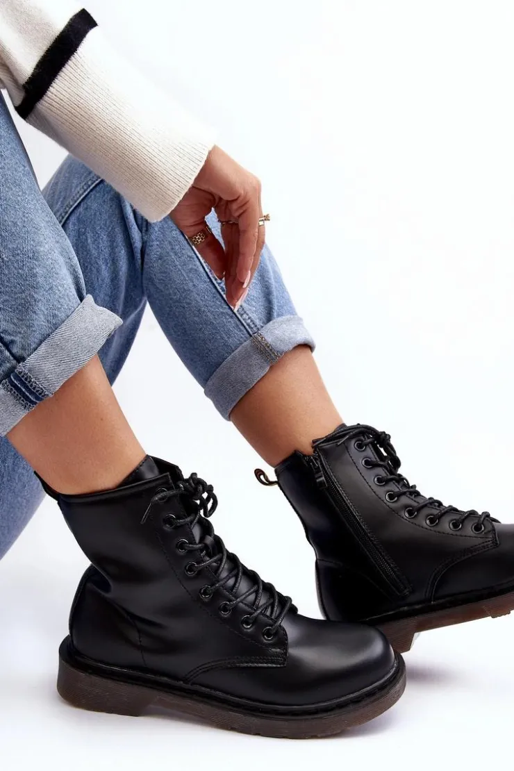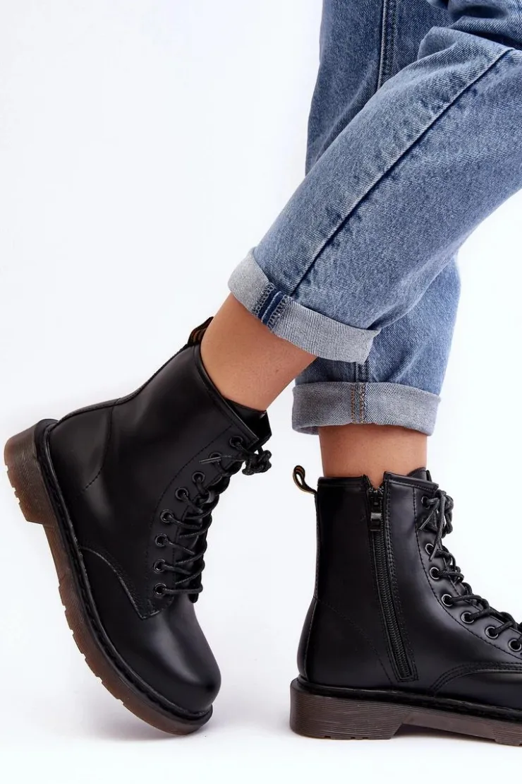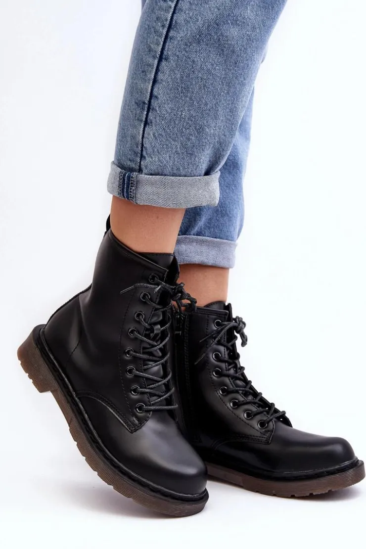 Klasyczne, damskie trapery zostały wykonane z eko skóry. Osadzone na płaskim obcasie i antypoślizgowej podeszwie. Model sznurowany z dodatkowym zapięciem na zamek. Noski zaokrąglone. Zapiętek usztywniony. Trapery nie posiadają ocieplenia. Ten klasyczny model powinien znaleźć się w Twojej szafie! Przy wyborze rozmiaru prosimy sugerować się tabelą rozmiarów.
