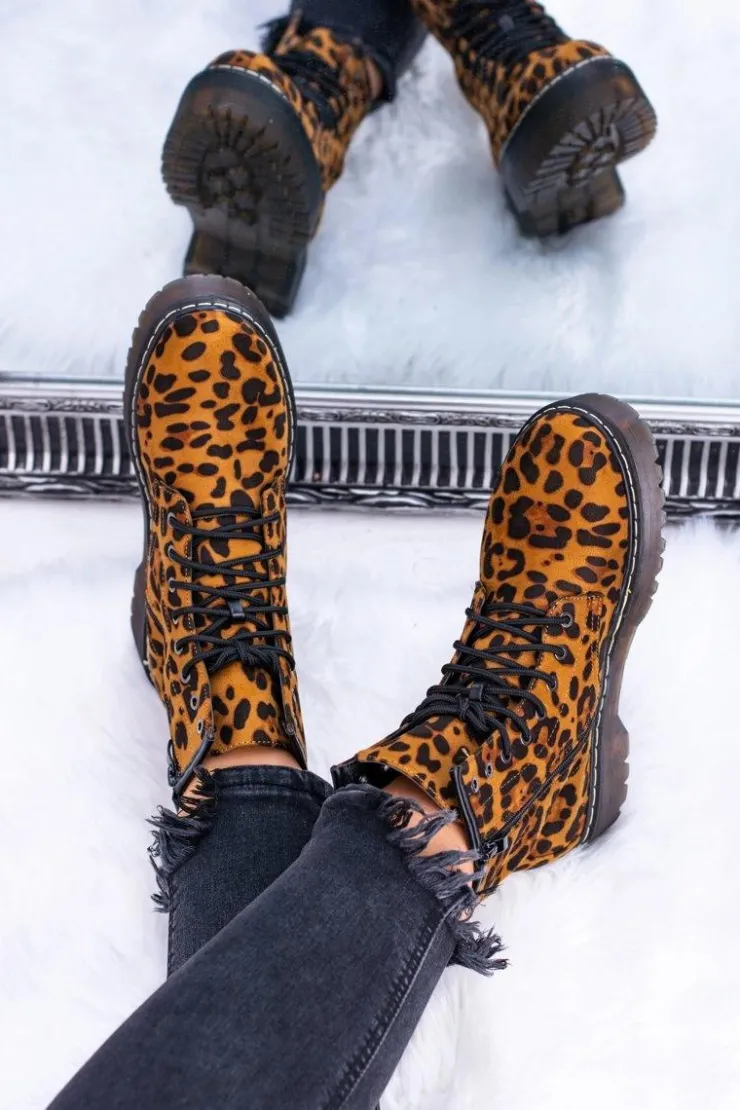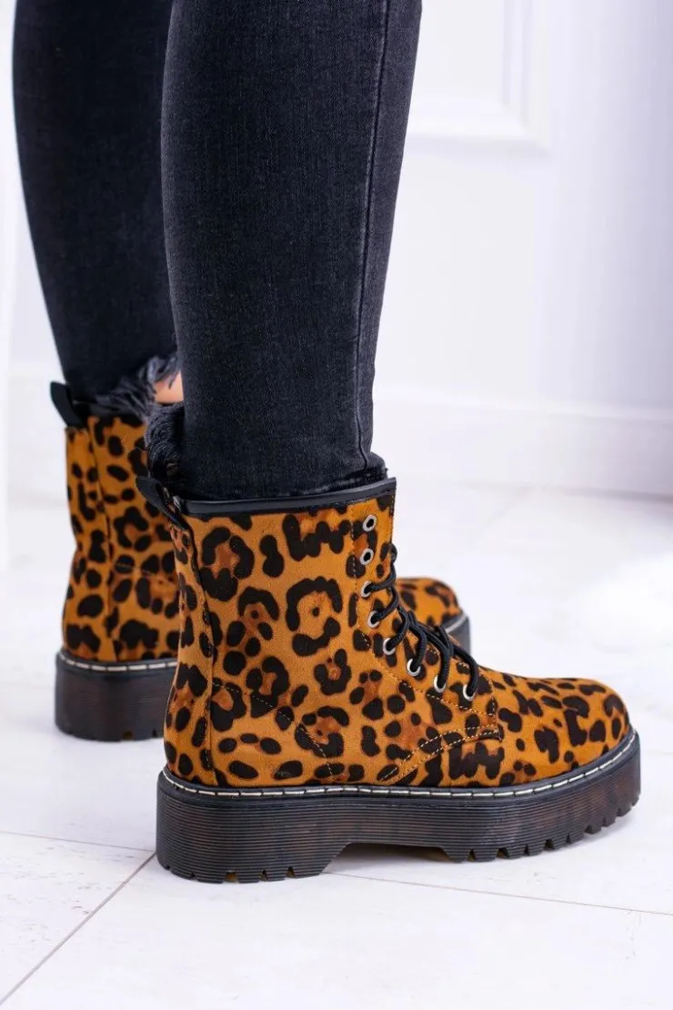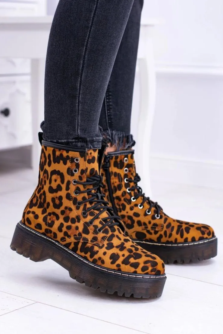 Damskie Boto Damskie Botki Wysokie Trapery W Panterkę Grande