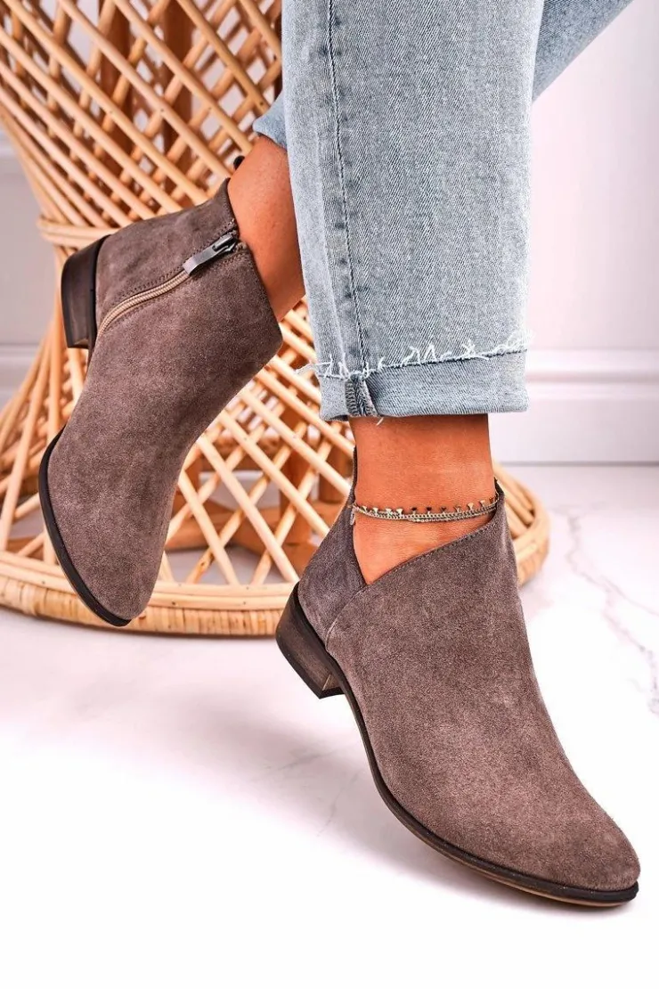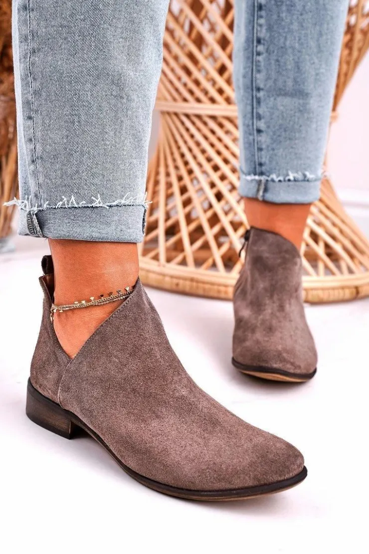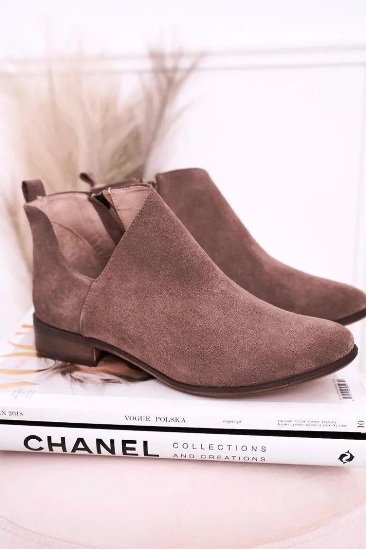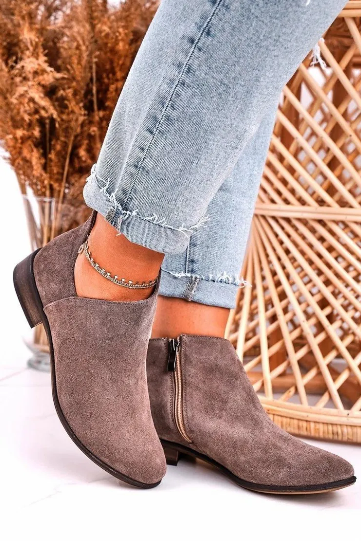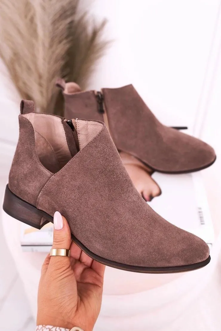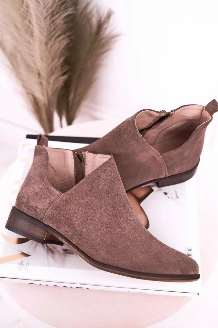 Damskie Boto Damskie Botki Z Wycięciem Zamszowe Brązowe Clarence