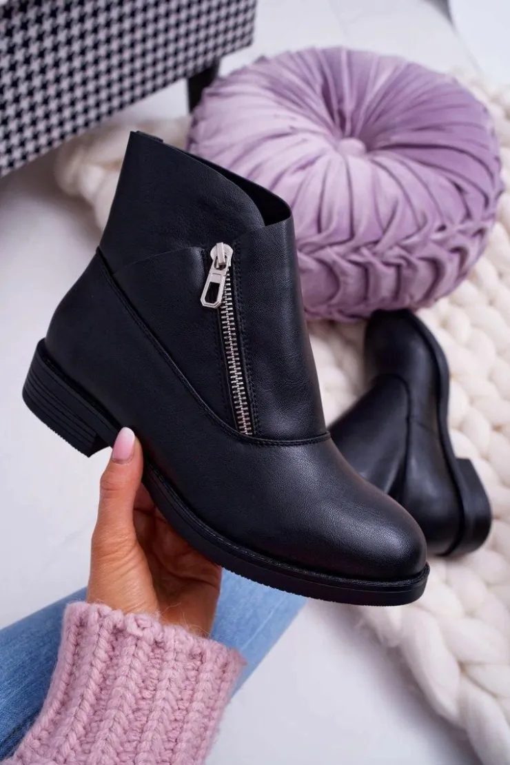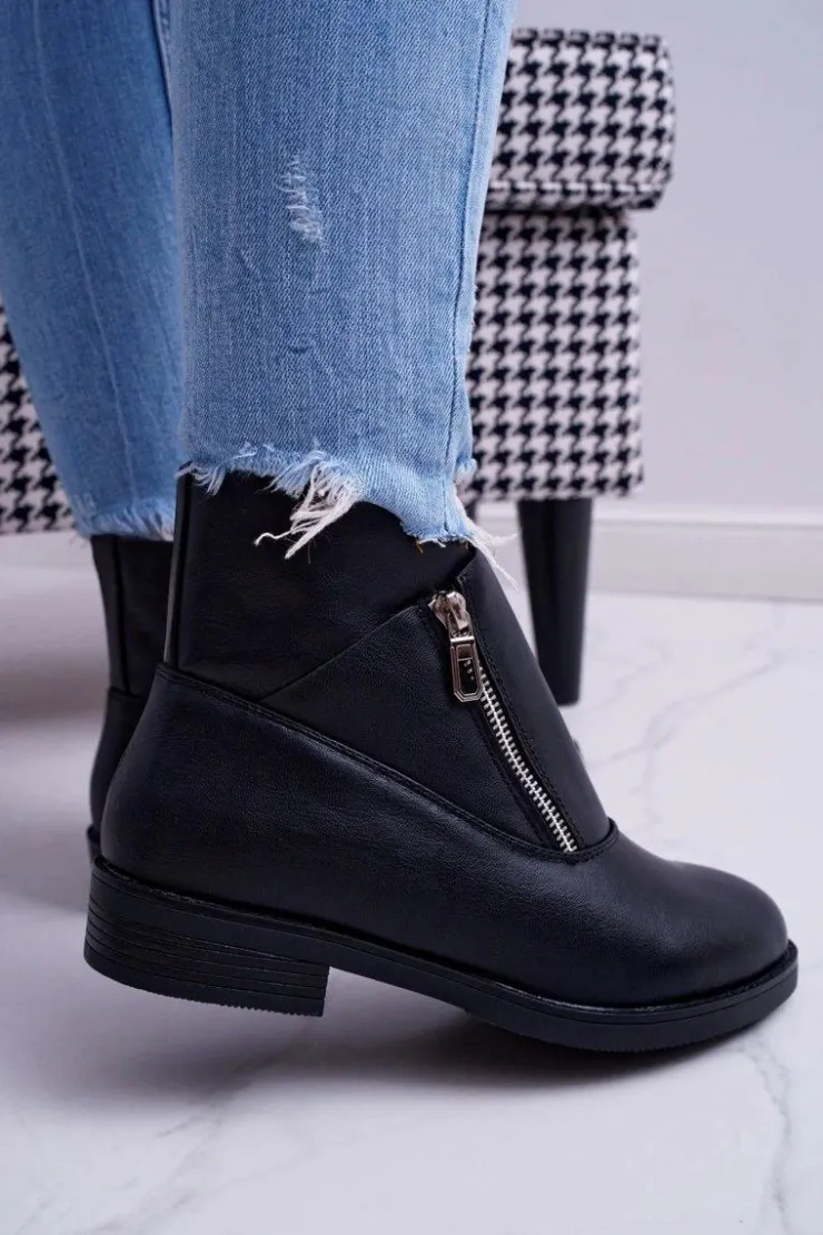 Damskie Boto Damskie Botki Z Zamkiem Czarne Juno