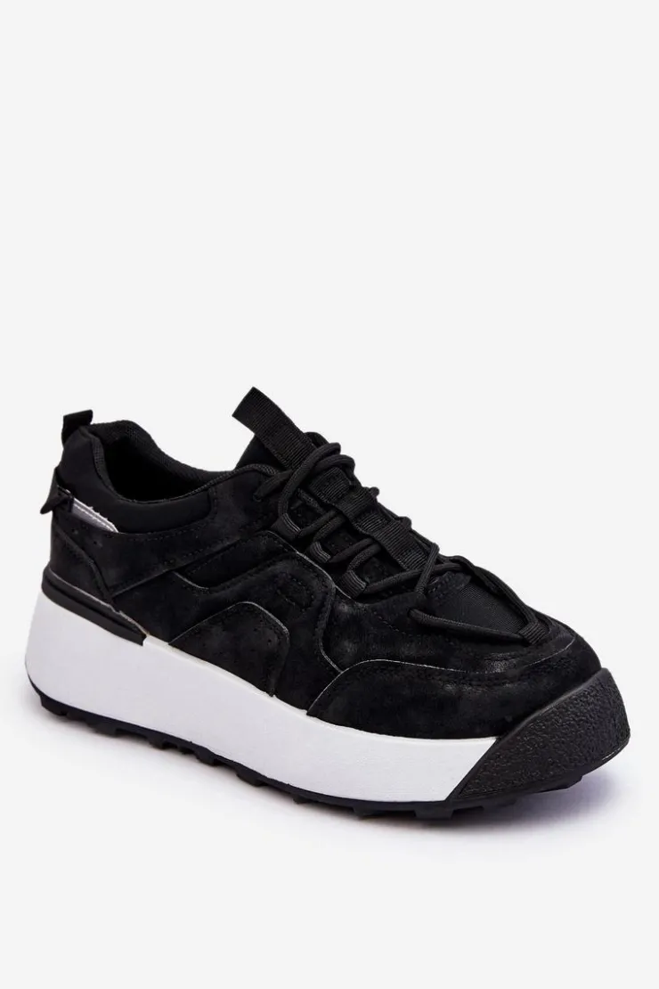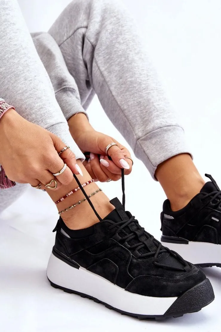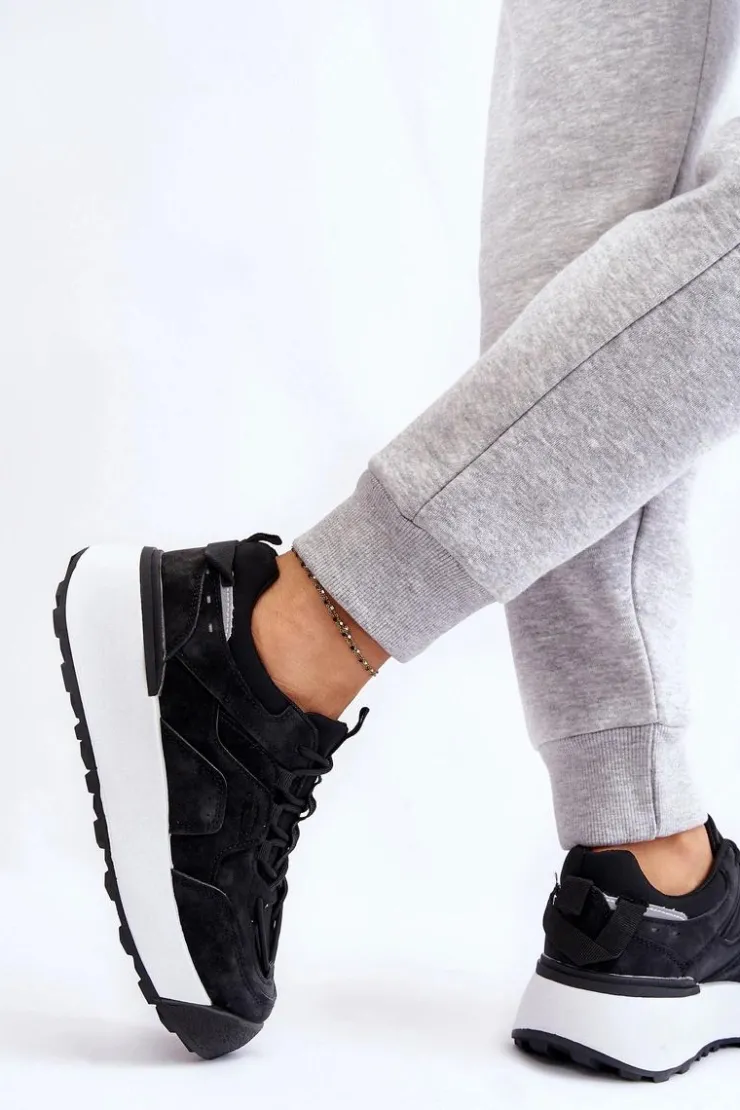 Świetne, damskie buty sportowe zostały osadzone na masywnej platformie, która delikatnie uniesie Twoją sylwetkę. Model ten posiada klasyczne sznurowanie. Dodatkowo zapiętek jest usztywniany, a z tyłu cholewki znajduje się odblaskowy element. Wkładka w tych butach jest materiałowa oraz wymienna. Przy wyborze rozmiaru prosimy kierować się tabelą rozmiarów.