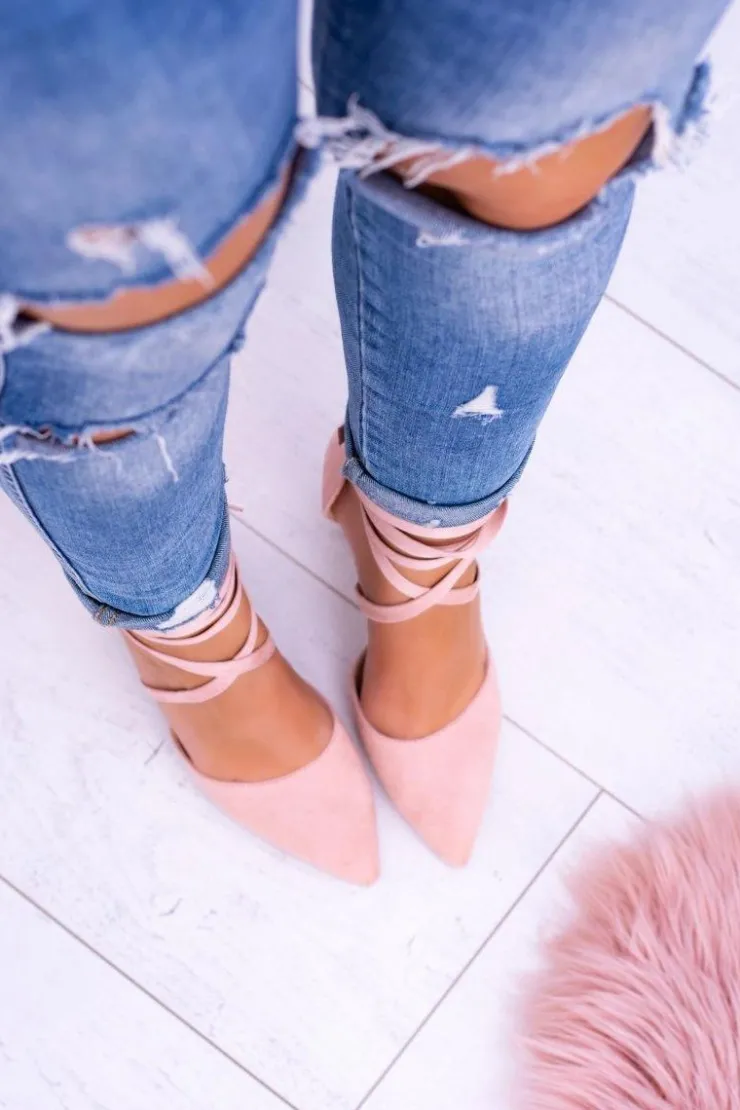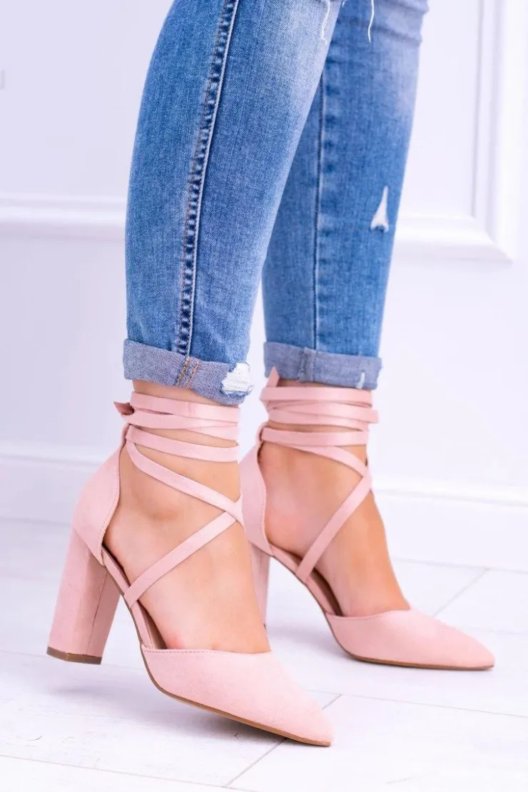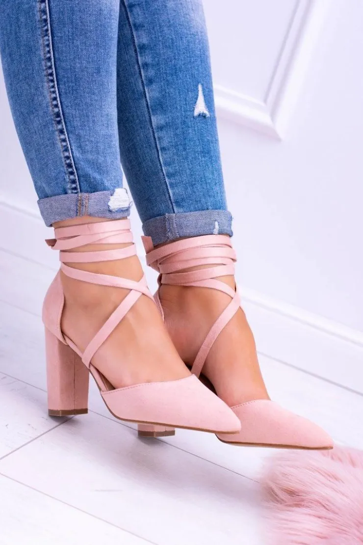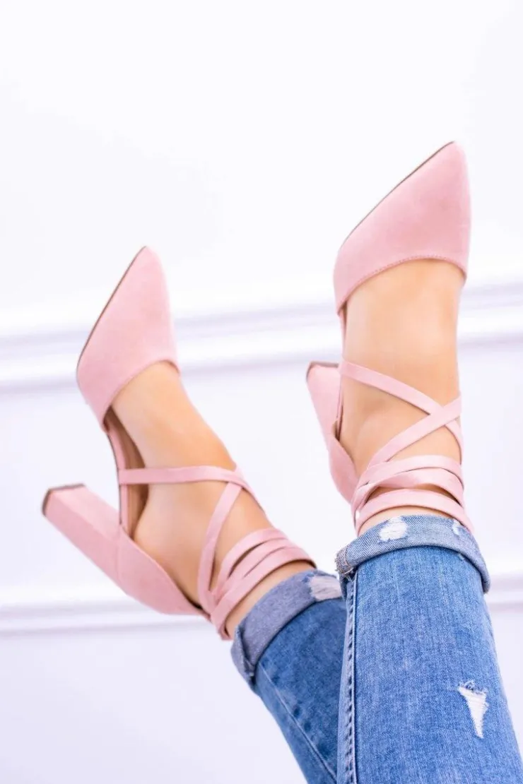 Damskie Boto Damskie Czółenka Na Słupku Wiązane Różowe Demmi