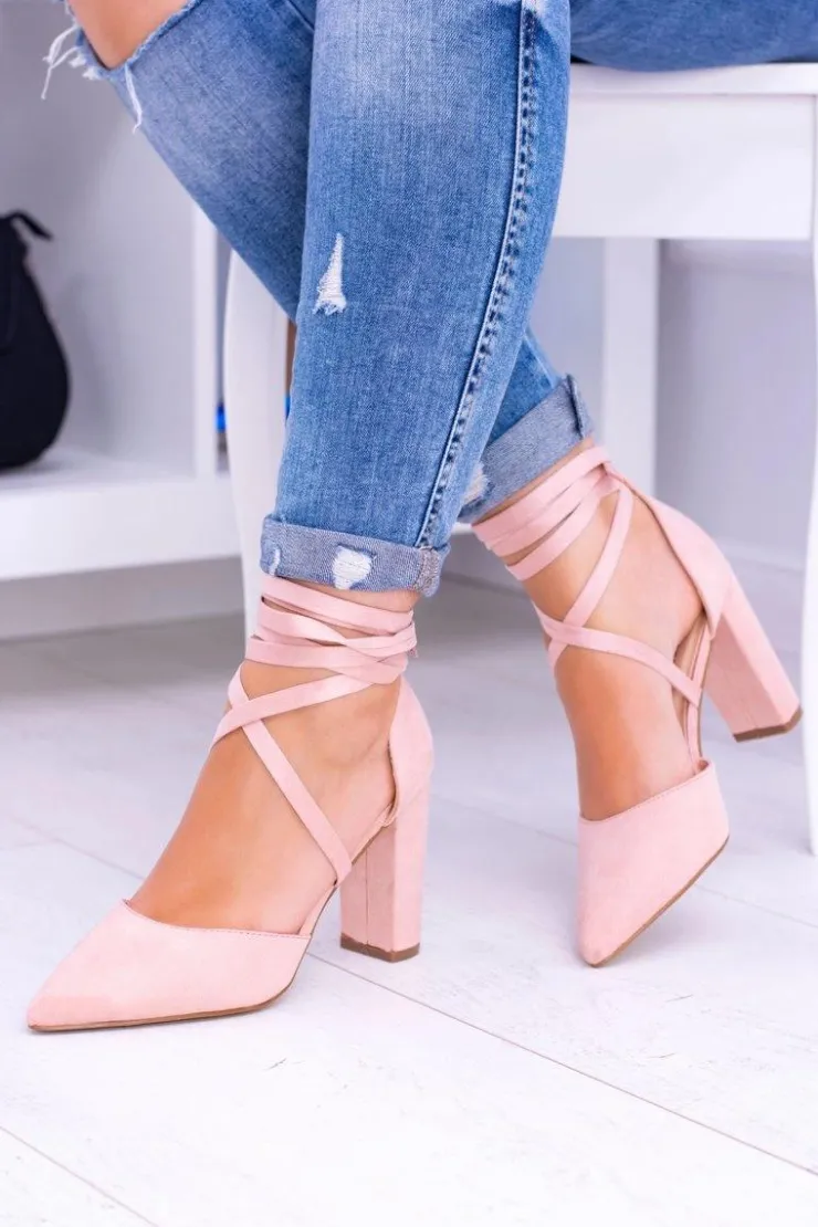 Jeśli podążasz za nowymi trendami, zapewne już wiesz że wiązane czółenka na słupku stały się już klasyką podczas wyboru letnich oraz wiosennych stylizacji. Wykonane z wysokiej jakości ekozamszu, który świetnie wkomponuje się do każdej stylizacji, codziennej jak i tej na wyjątkowe okazje. Dostępne w kilku modnych kolorach. Dopasowanie oraz niecodzienny wygląd zapewni wiązanie wokół kostki. Nosek w szpic jest podkreśleniem ich niesamowitego uroku. Takiej oferty nie można przegapić, podążaj za klasyką!