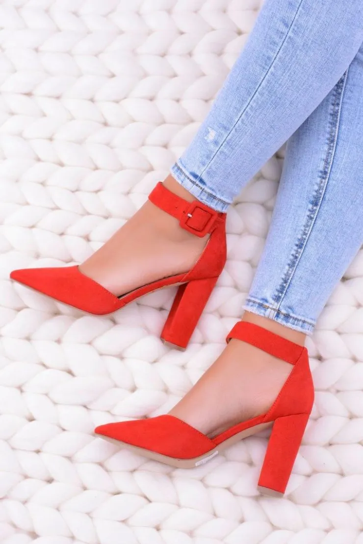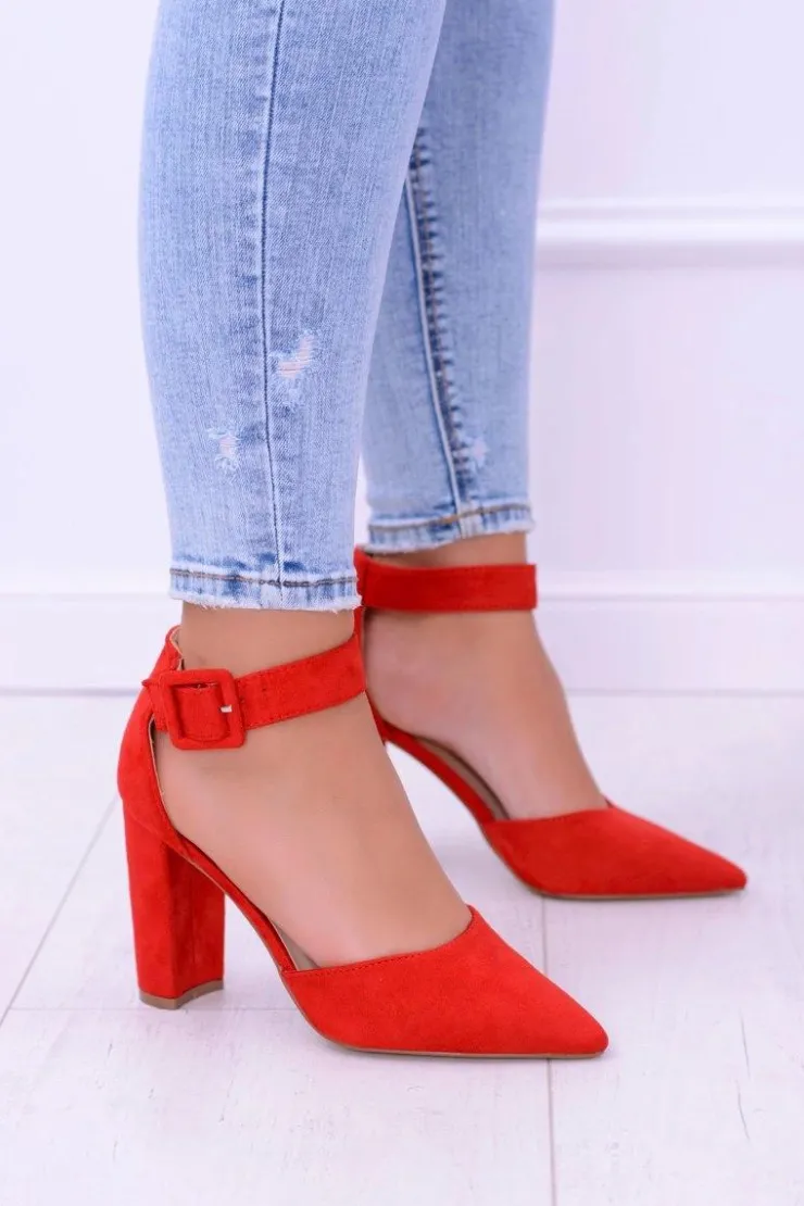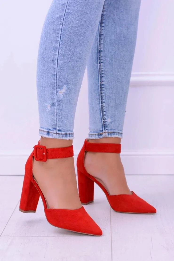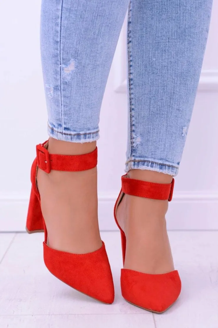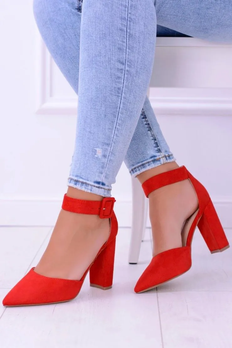 Damskie Boto Damskie Czółenka Na Słupku Zamszowe Czerwone Harinta