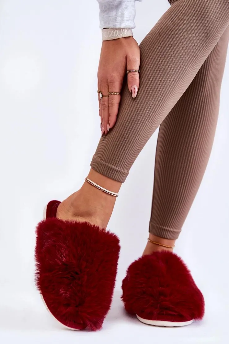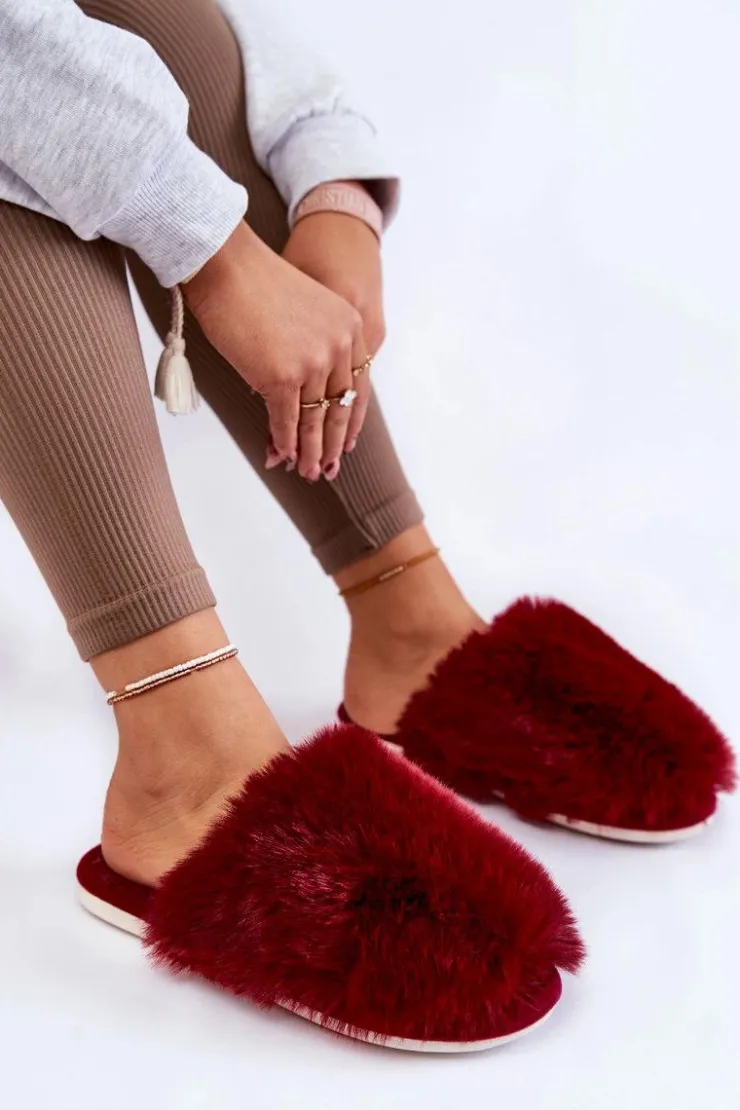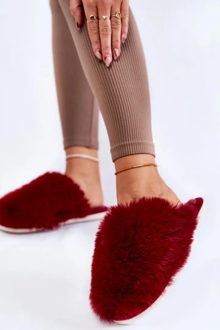 Damskie Boto Damskie Futrzane Papcie Bordowe Sheryl