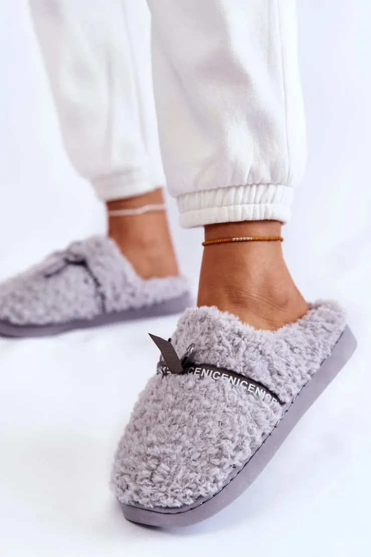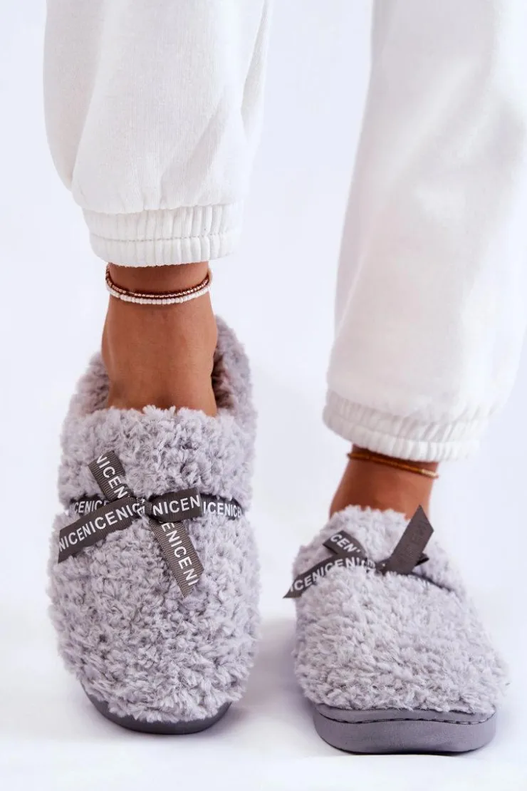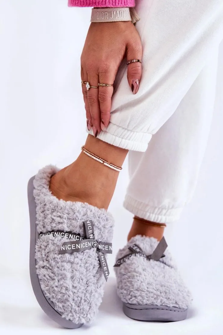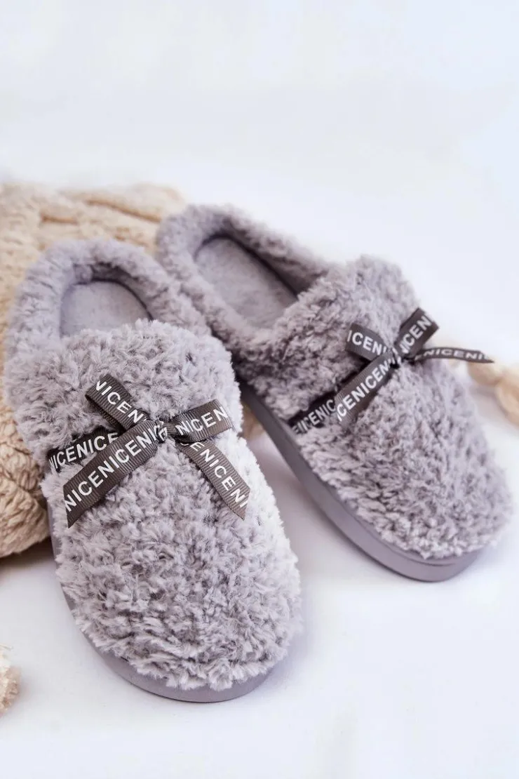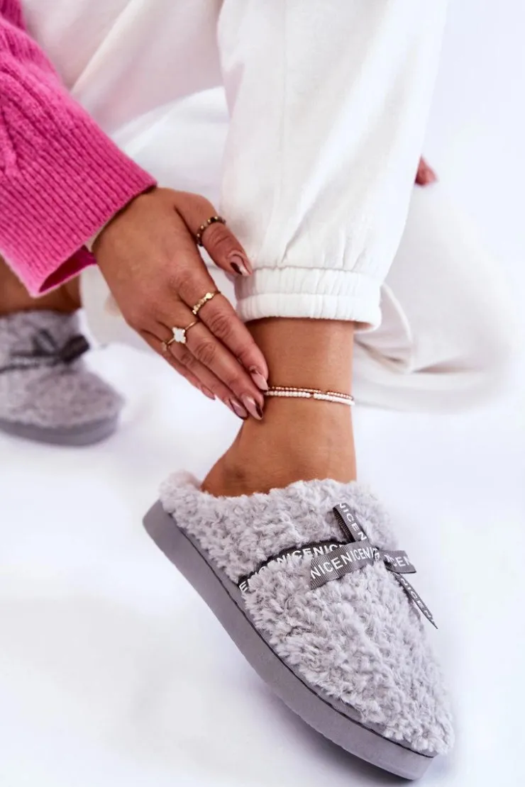 Damskie Boto Damskie Futrzane Papcie Z Kokardką Szare Ryana