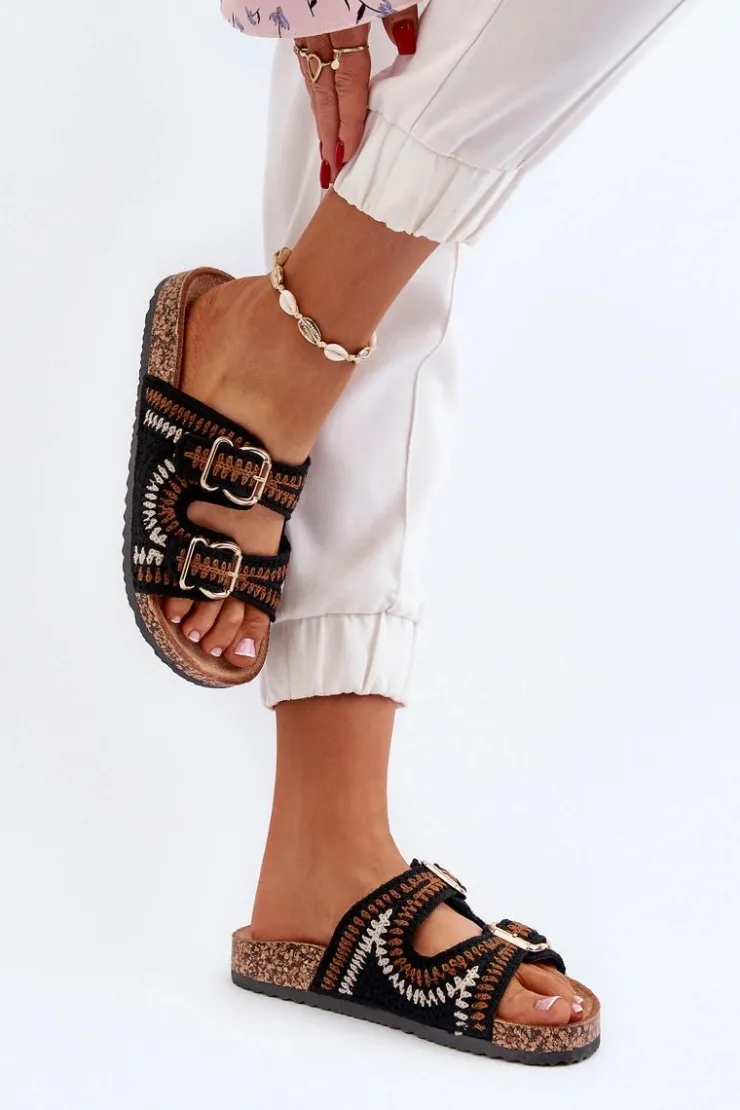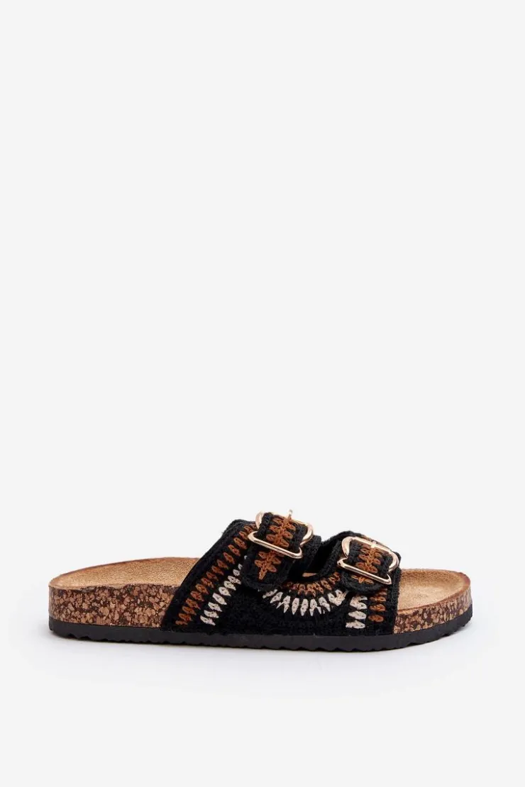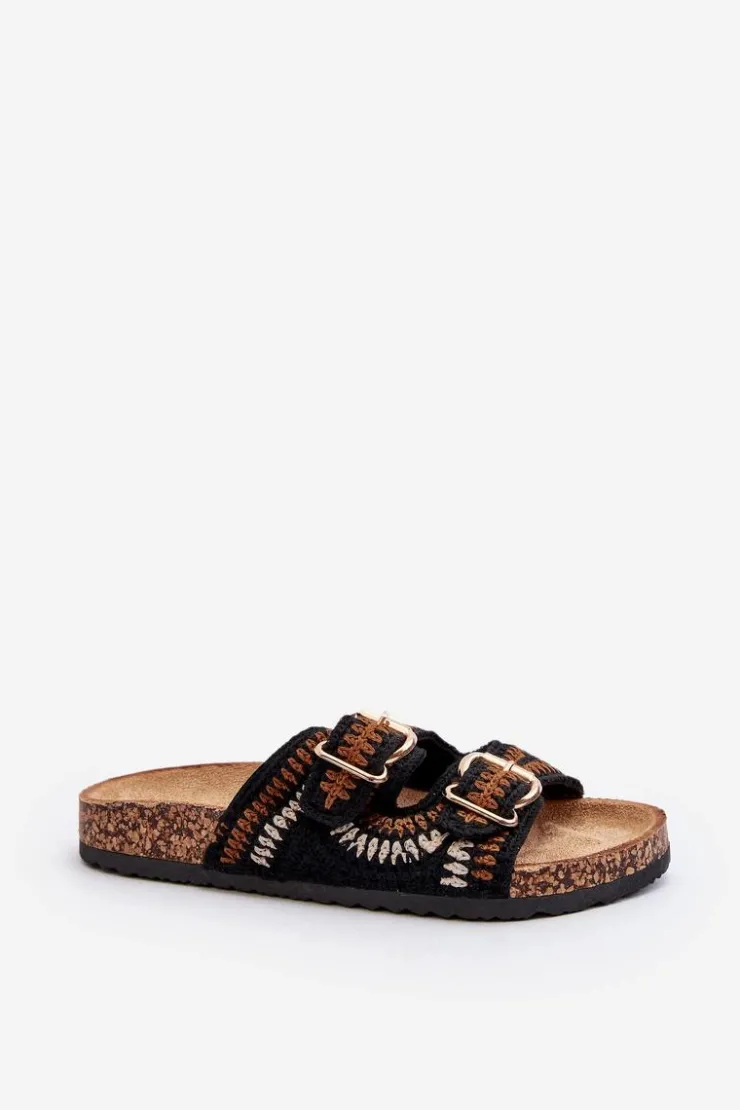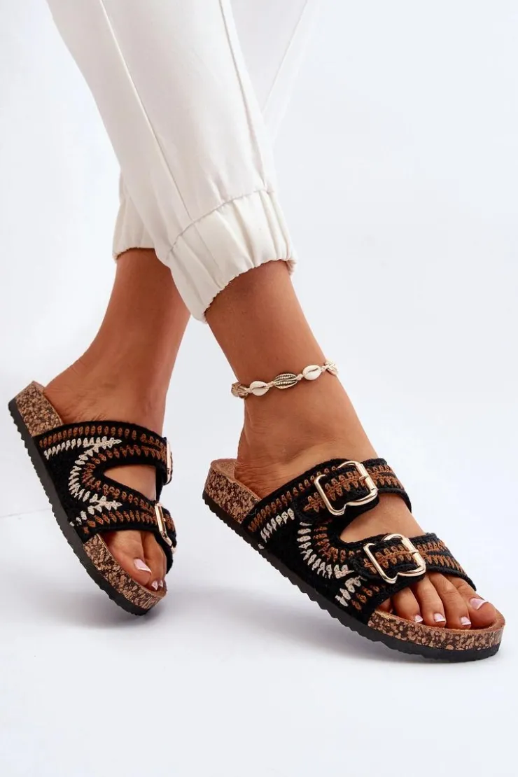 Wyjątkowe klapki damskie wykonane osadzone na korkowej podeszwie. Cholewka ozdobiona klamrami oraz plecionką. Buty posiadają profilowaną wkładkę, która zagwarantuje komfort. Ten modny fason urozmaici Twoje stylizacje! Przy wyborze rozmiaru prosimy sugerować się tabelą rozmiarów.