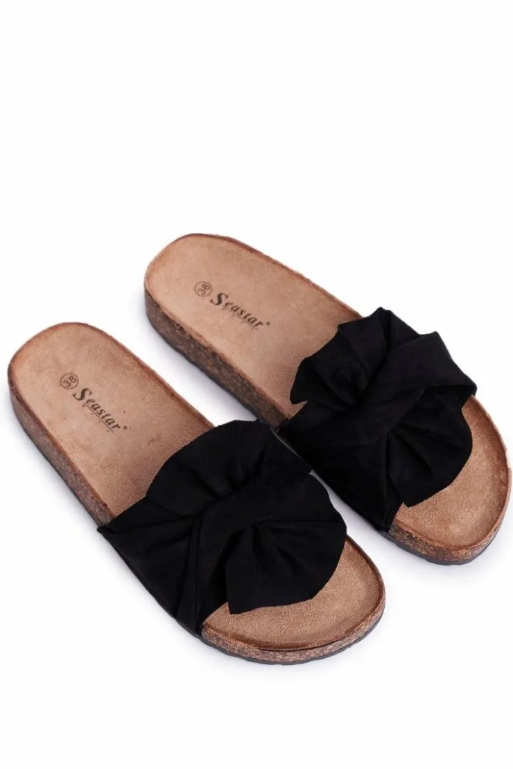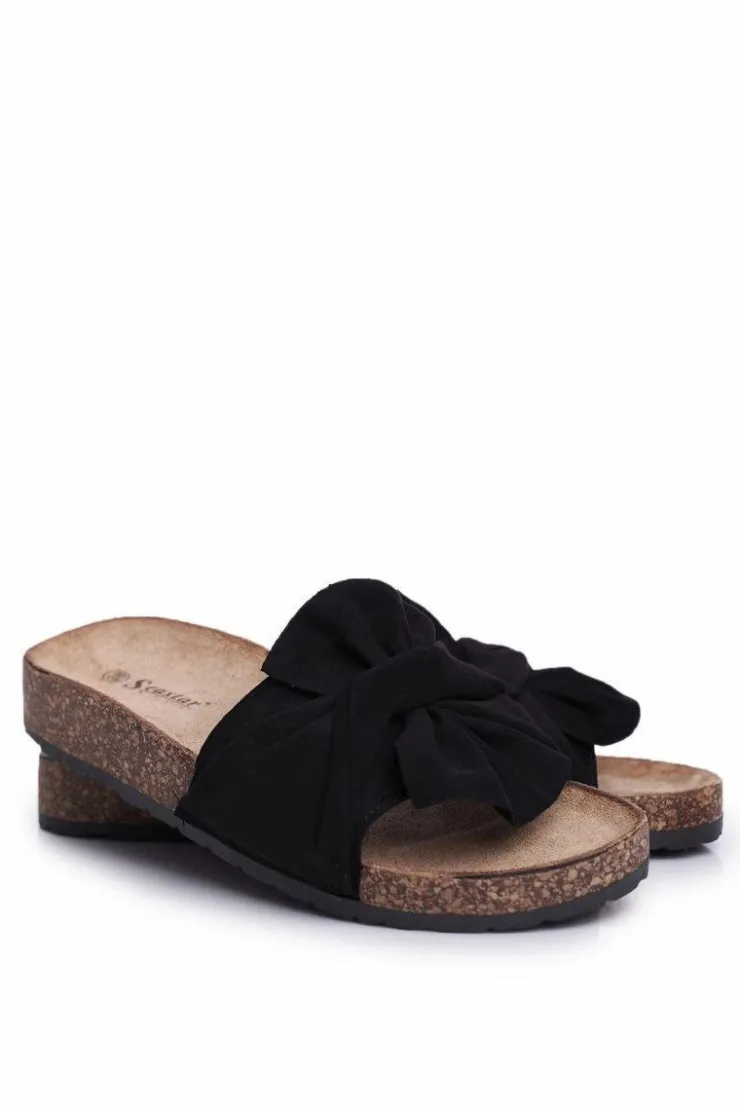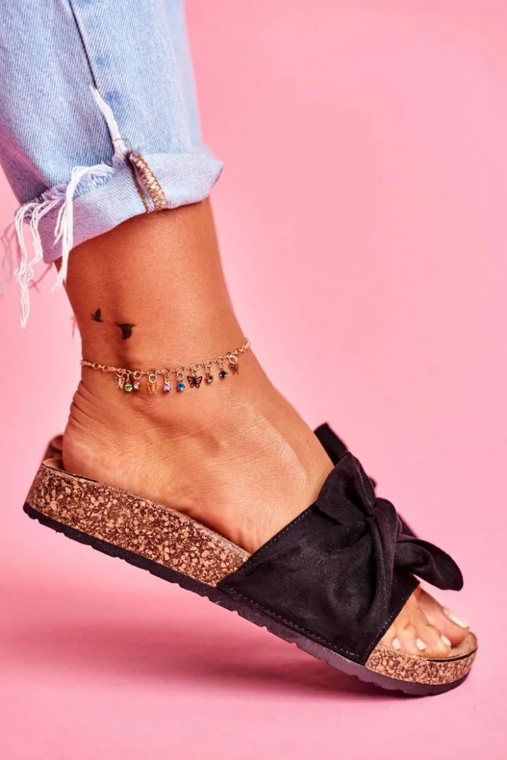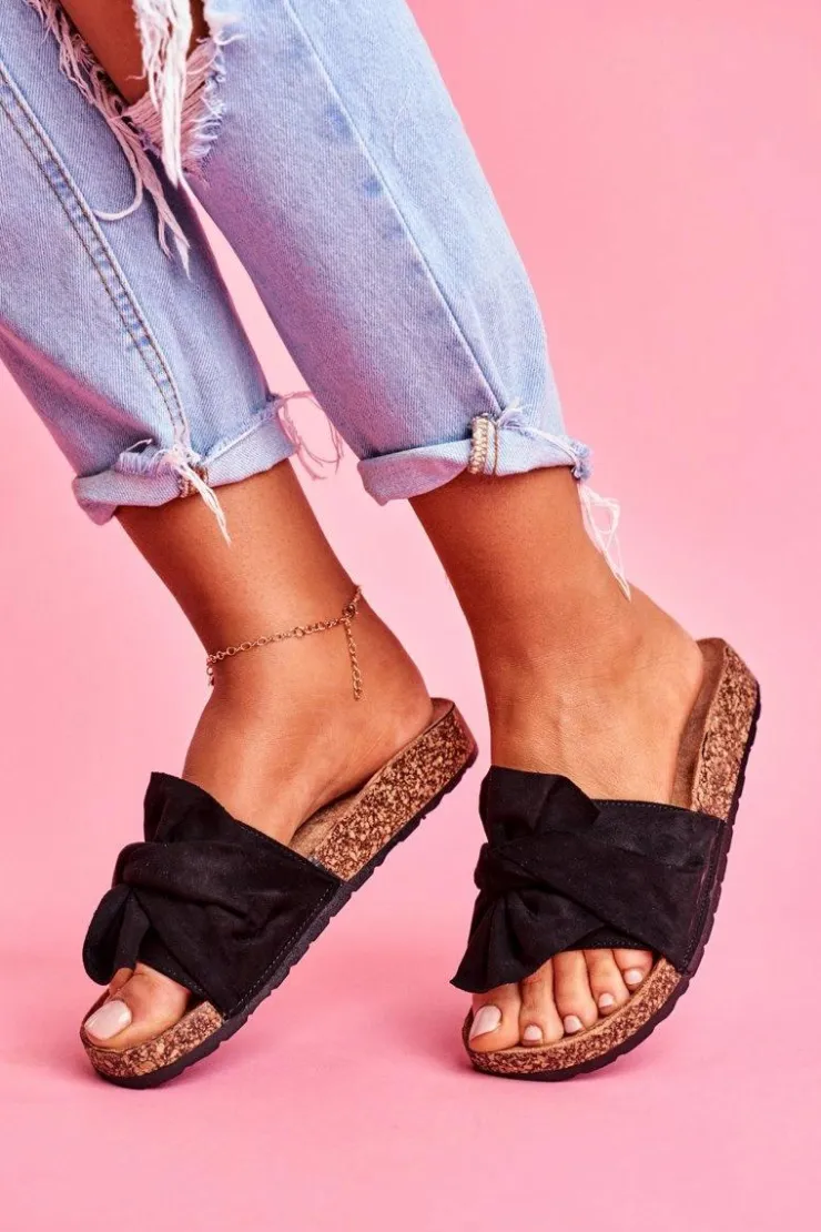 Damskie Boto Damskie Klapki Na Korku Kokardki Czarne Felis