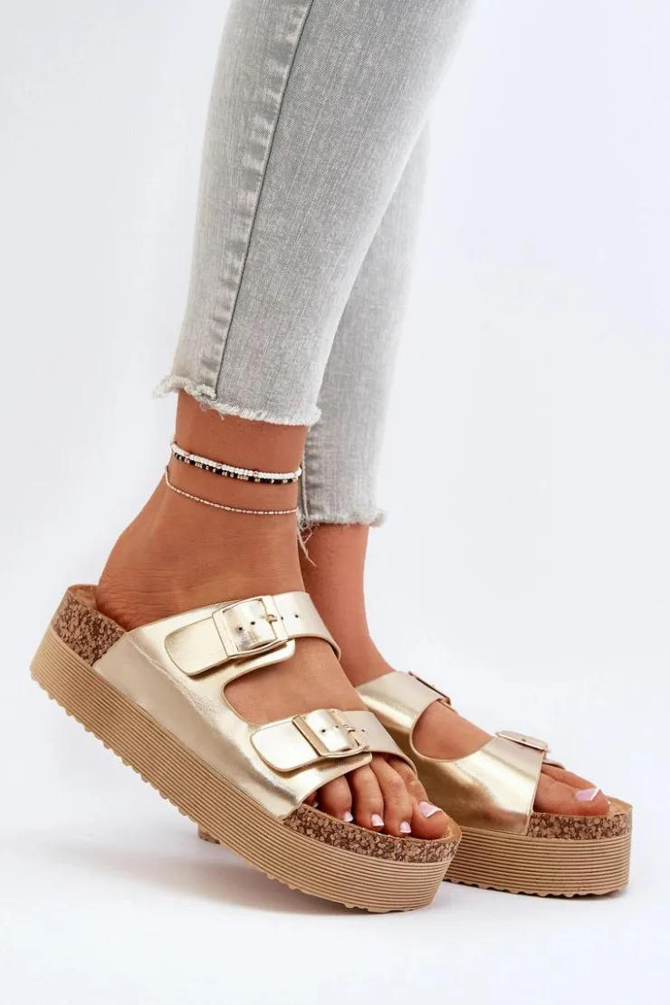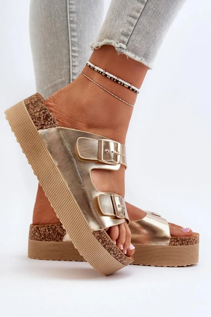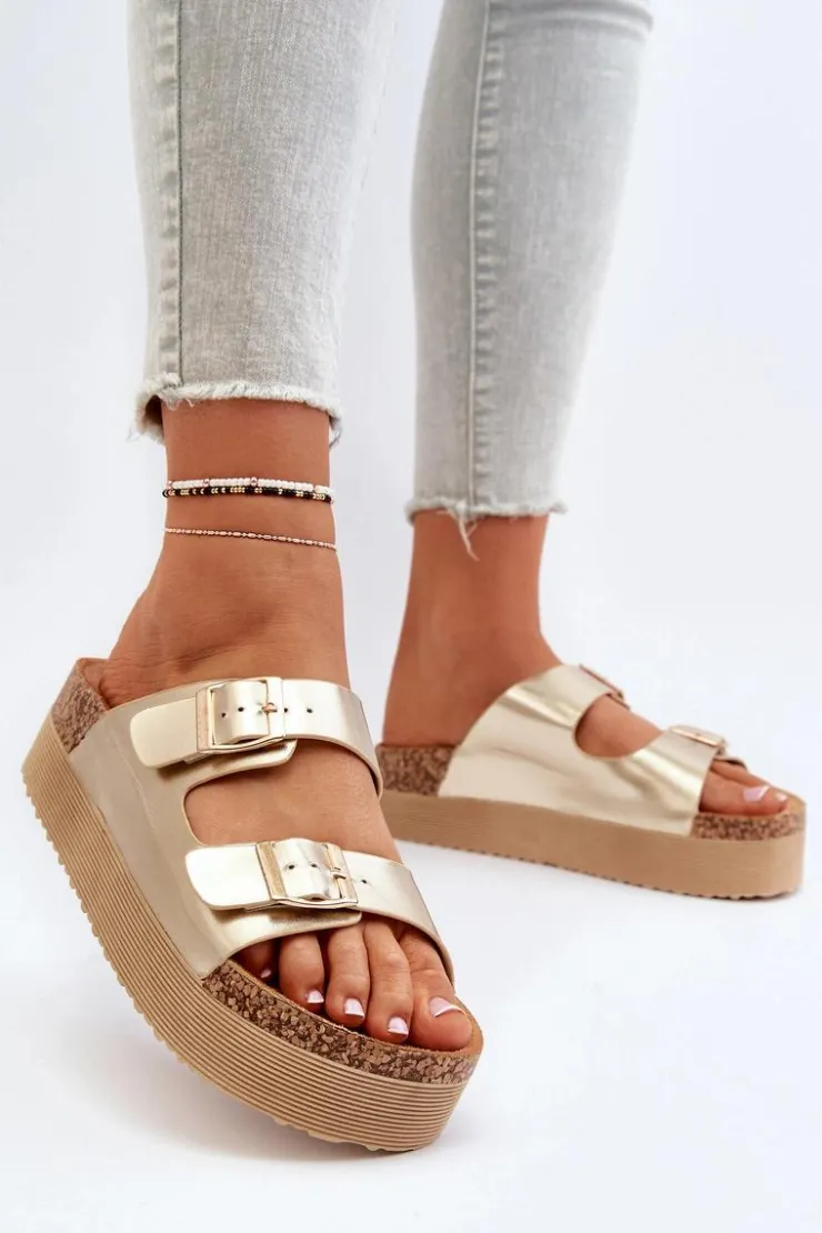 Klapki damskie osadzone na masywnej platformie. Model ten posiada dwa paski, które można regulować za pomocą sprzączek, zapewniając idealne dopasowanie. Dzięki profilowanej wkładce wykonanej z eko zamszu będą wygodne podczas noszenia nawet przez cały dzień. Doskonałe na letnie spacery i codzienne wyjścia na zakupy. Przy wyborze rozmiaru prosimy sugerować się tabelą rozmiarów.