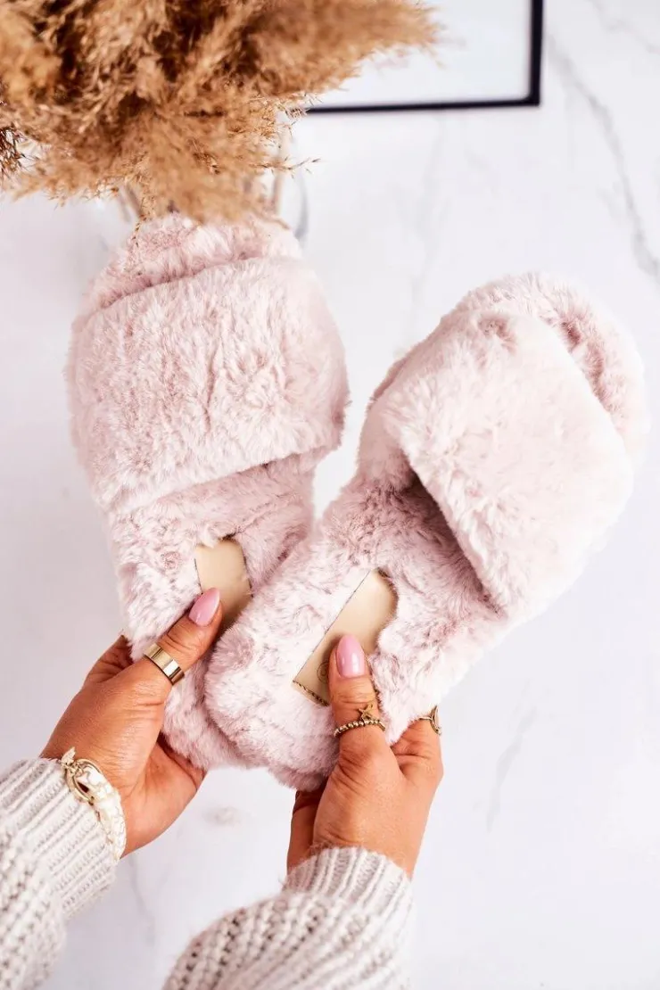 Damskie Boto Damskie Klapki Papcie Futrzane Beżowe Cold Days