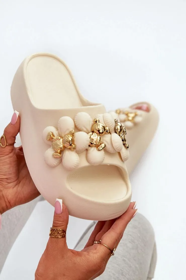 Damskie Boto Damskie Klapki Piankowe Z Ozdobami Na Grubej Podeszwie Jasnobeżowe Bremavia