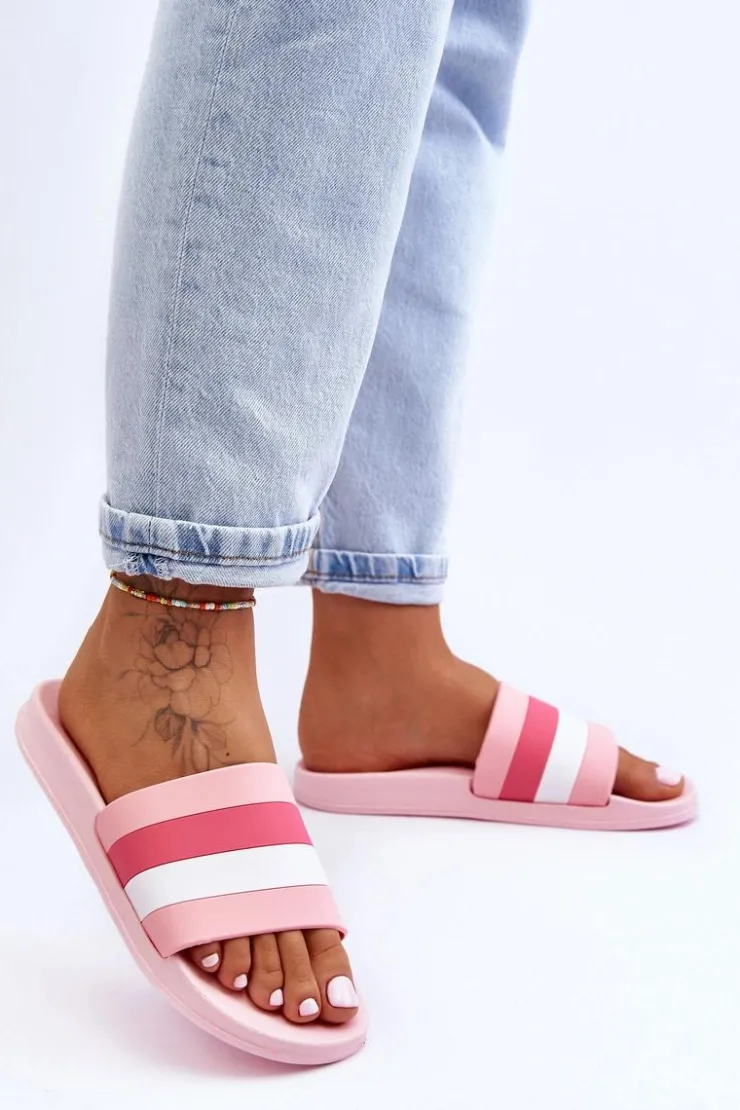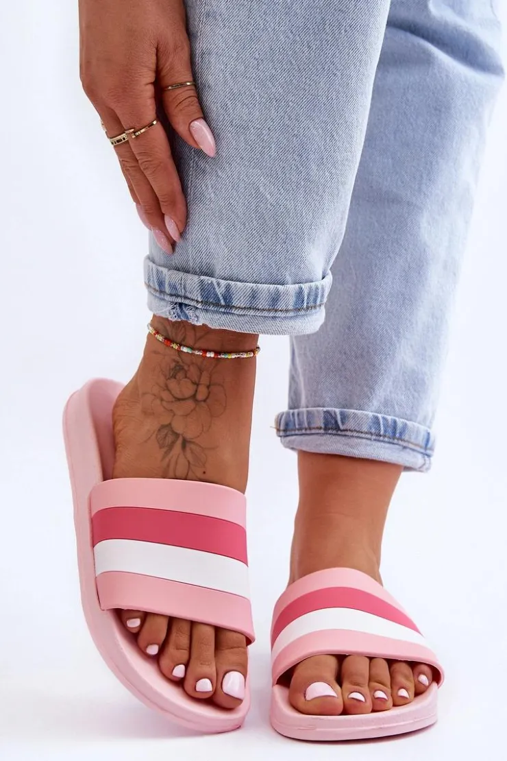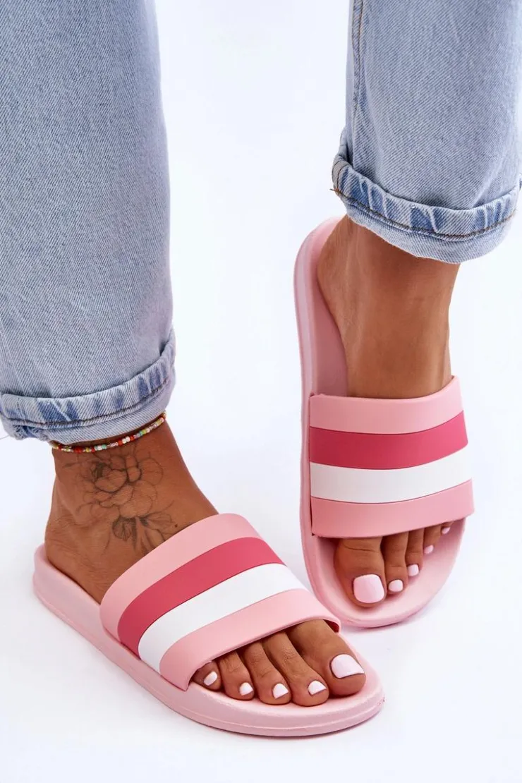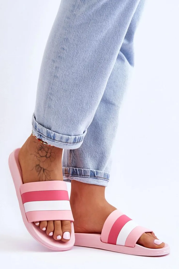 Damskie Boto Damskie Klapki W Paski Różowe Vision
