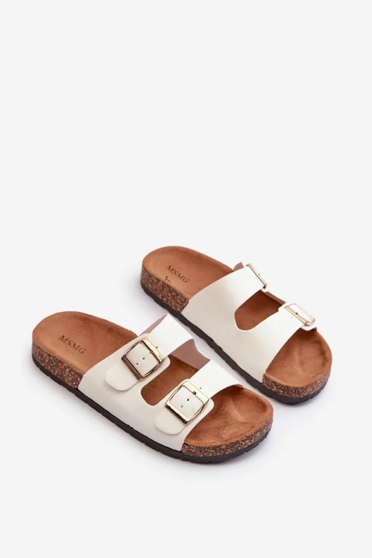 Damskie Boto Damskie Klapki Wsuwane Na Korkowej Podeszwie Białe Cortina