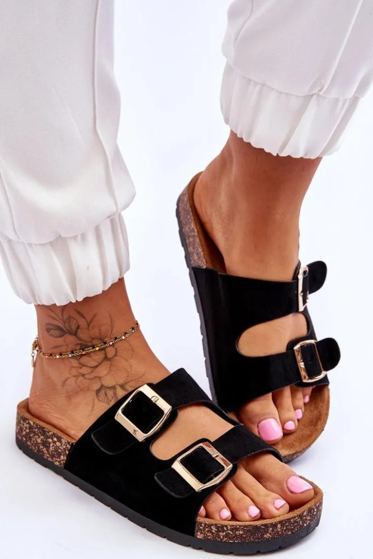 Damskie Boto Damskie Klapki Wsuwane Na Korkowej Podeszwie Czarne Cortina