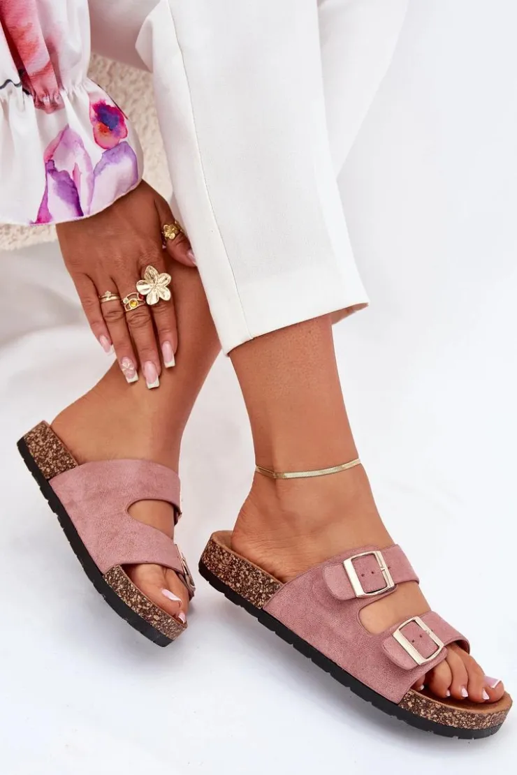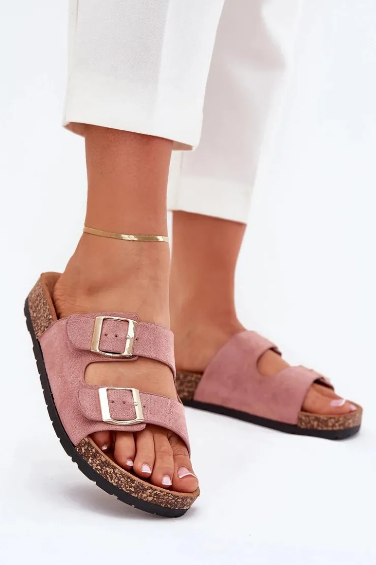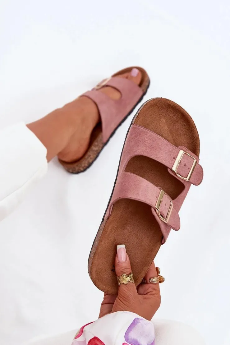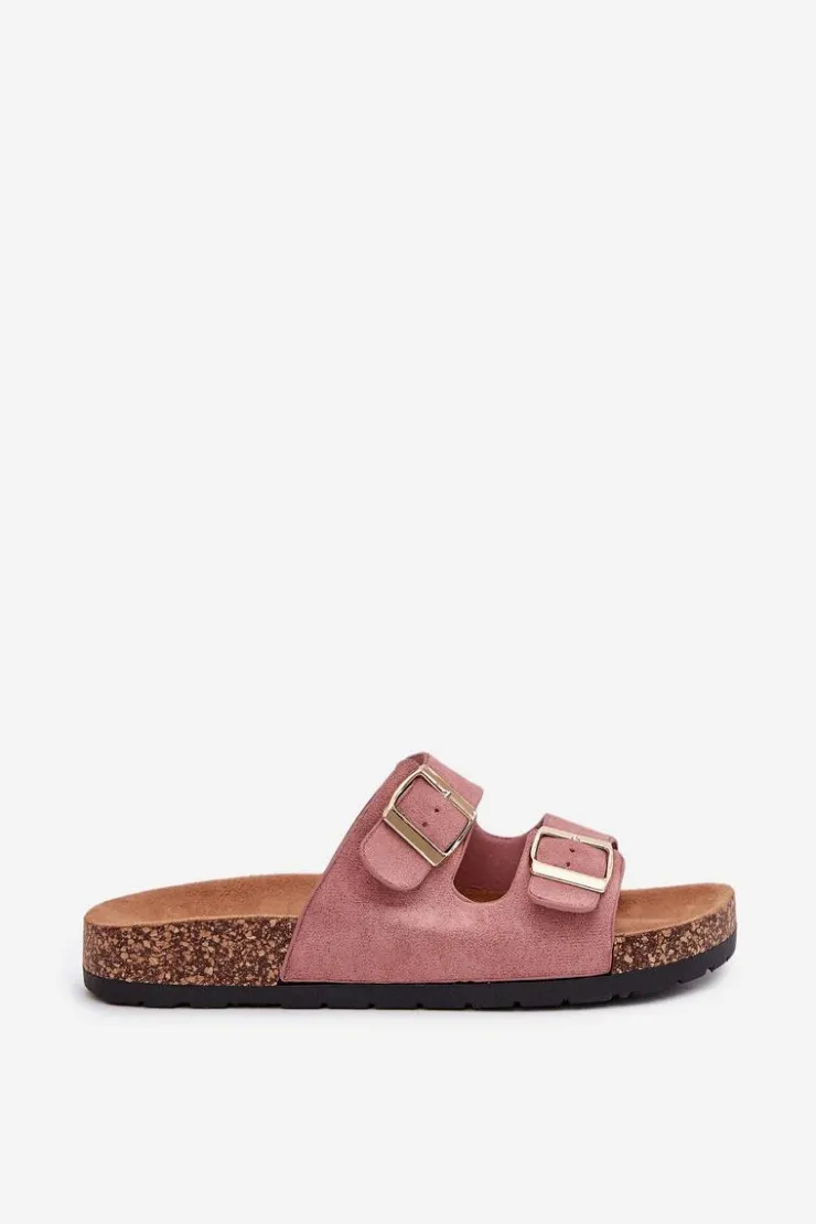Klapki te posiadają dwa szerokie paski zapinane na sprzączkę, które można regulować. Idealne na letnie spacery oraz codzienne wyjścia na zakupy. Profilowana, wykonana z eko zamszu wkładka zapewni wygodę oraz komfort. Podeszwa została wykonana z tworzywa sztucznego. Klapki te sprawiają, że Twoje stopy będą wypoczęte i zrelaksowane. Przy wyborze rozmiaru prosimy sugerować się tabelą rozmiarów.