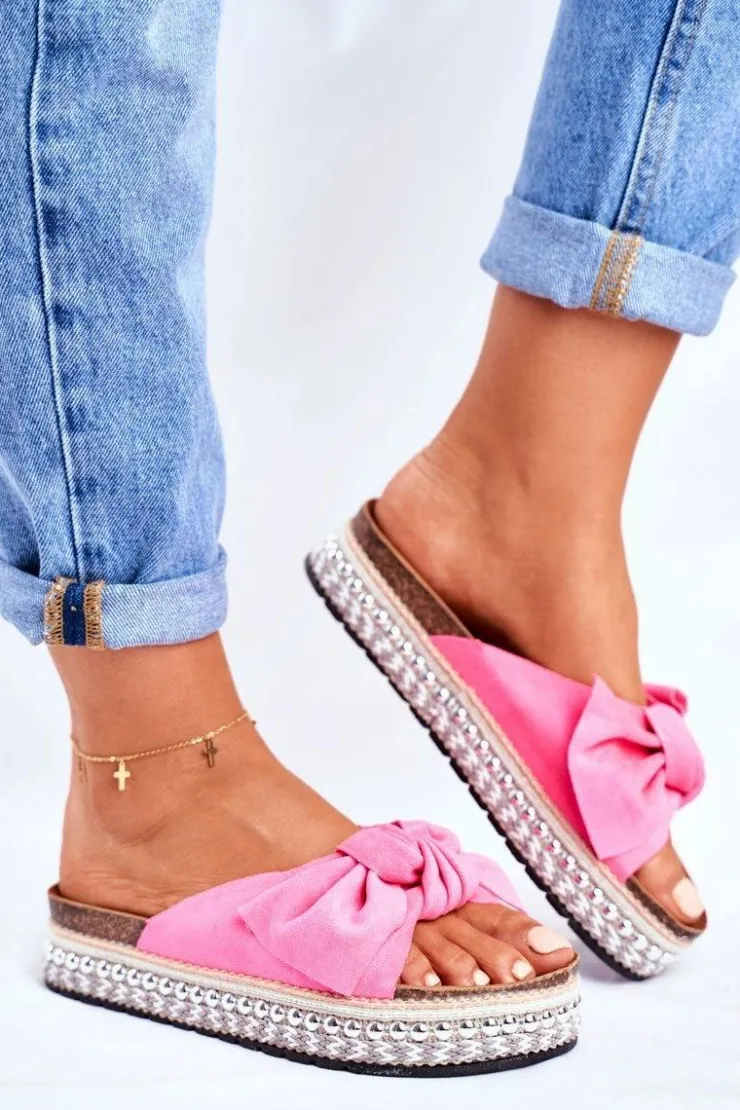 Outlet Boto Damskie Zamszowe Klapki Lewski Shoes 3226 Fuksja